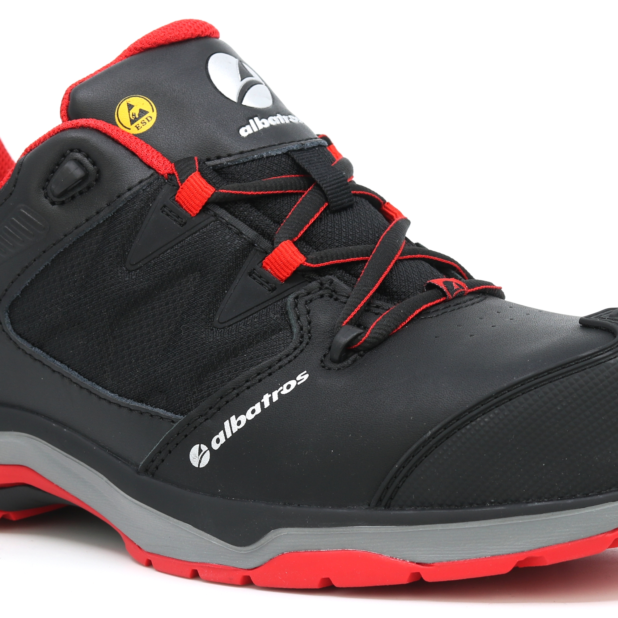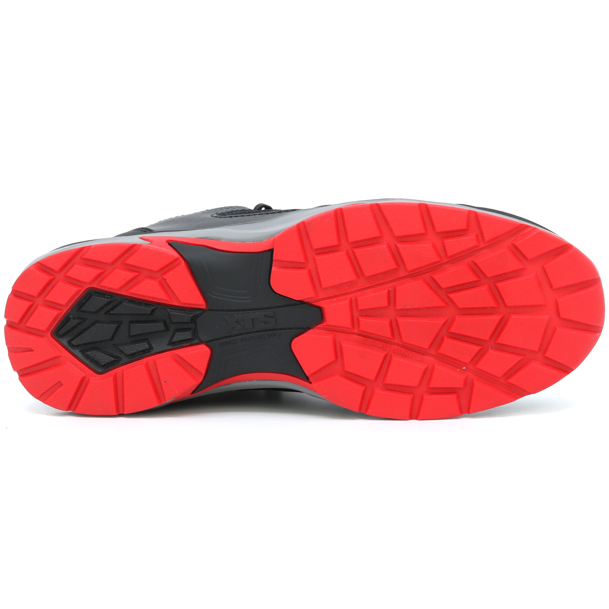 TRAIL INSPIRED - WORK READY! Outdoor. Indoor. Work. Offroad. Zuverlässiger Schutz. Ohne Kompromisse. Wo andere Schuhe aufgeben, fangen unsere XTS TRAIL Modelle gerade erst an. Die XTS TRAIL Laufsohle vereint alle Eigenschaften, die für den Arbeitsschutz, egal ob drinnen oder draußen, sowie für höchste Anforderungen im Outdoorbereich unerlässlich sind: Sie ist rutsch- und abriebfest, bis zu 300°C hitzebeständig und verfügt über ein speziell angelegtes Stollenprofil mit breiten Flexkerben sowie wasserverdrängende Eigenschaften. Zusätzlich mit ESD, einer Schutzkappe aus Fiberglas und FAP®-Durchtrittschutz ausgestattet, genügt sie hohen Sicherheitsansprüchen. Die Zwischensohle aus IMPULSE.FOAM® reagiert auf jeden deiner Schritte mit einem Energie-Impuls und sorgt für maximale Dämpfung, hervorragende Stabilität und langanhaltenden Komfort. Der ULTRATRAIL BLACK LOW ist aus Vollrindleder mit abriebfesten Textileinsätzen und sticht bereits durch sein Design in der Signalfarbe schwarz-rot hervor. Dieses Modell ist sowohl in Damen- als auch in Herrengrößen erhältlich und in den Damengrößen mit einer speziellen Passform und einem an die Bedürfnisse des weiblichen Fußes angepassten Leisten ausgestattet. Für zusätzlichen Komfort sorgt die anatomisch geformte Einlegesohle comfit®AIR und die angenehme Schaft- und Laschenpolsterung. Wohin dich dein (Arbeits-)weg auch führt: XTS TRAIL ist bedingungslos an deiner Seite!