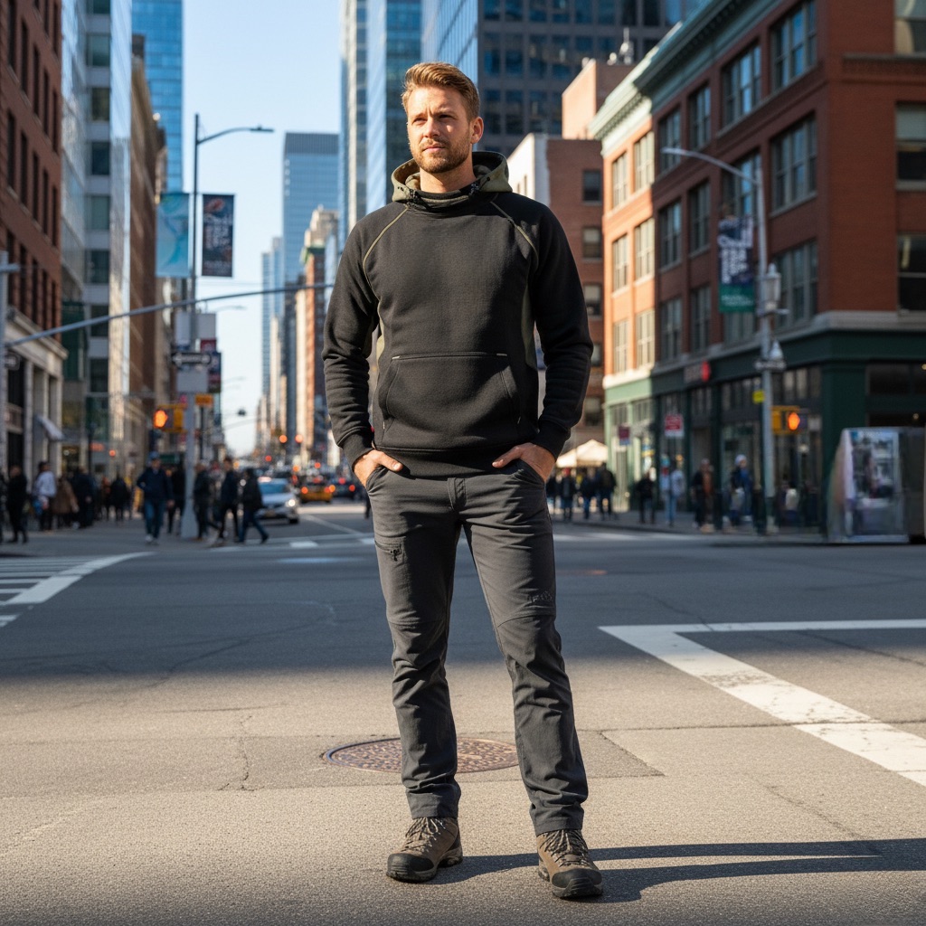 Asoto Vindel Sweden schwarz olivgrüner Herren Baumwollpullover 320 g ist die ideale Wahl für alle, die Komfort, Funktionalität und zeitlosen Stil in einem suchen. Der Pullover besteht aus hochwertigem Baumwollstoff mit einem Gewicht von 320 g/m2, was ein angenehmes Tragegefühl über den ganzen Tag hinweg garantiert – ob bei der Arbeit, in der Freizeit oder bei Outdoor-Aktivitäten. Das Material ist strapazierfähig und weich zugleich, atmungsaktiv und bietet angenehme Wärme. Die Zusammensetzung besteht aus 80 % Baumwolle und 20 % Polyester. Eine praktische Kängurutasche vorne bietet Platz für die Hände oder kleinere Gegenstände. Die Ärmelabschlüsse sind mit Daumenlöchern versehen, die den Tragekomfort erhöhen und die Handgelenke vor Kälte schützen. Die gefütterte Kapuze im Snood-Stil mit Kordelzug sorgt für zusätzlichen Wärmeschutz. Der Pullover hat einen modernen geraden Schnitt, elastische Bündchen und ein stilvolles schwarz olivgrünes Design, das sich leicht mit anderer Kleidung kombinieren lässt. Asoto Vindel Sweden ist ein vielseitiges Kleidungsstück für Stadt, Werkstatt und Natur, das Funktionalität, Komfort und Langlebigkeit perfekt vereint.