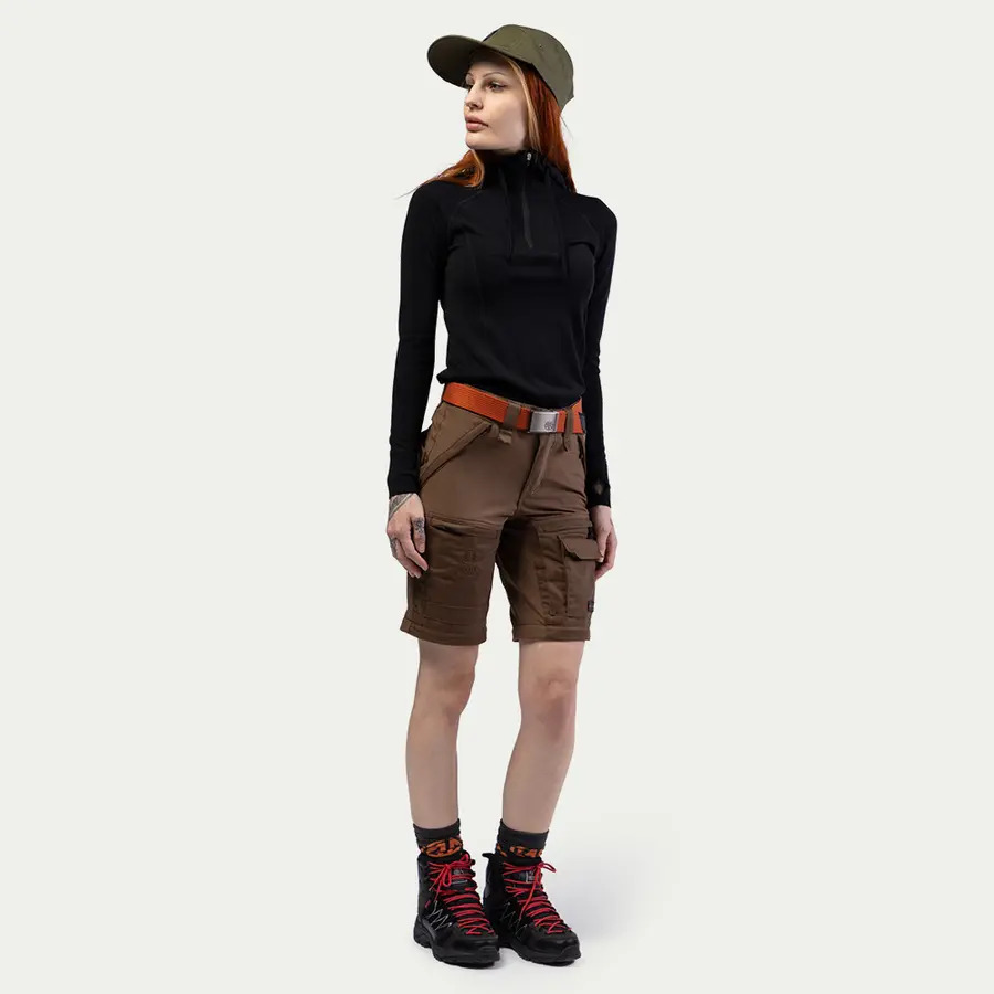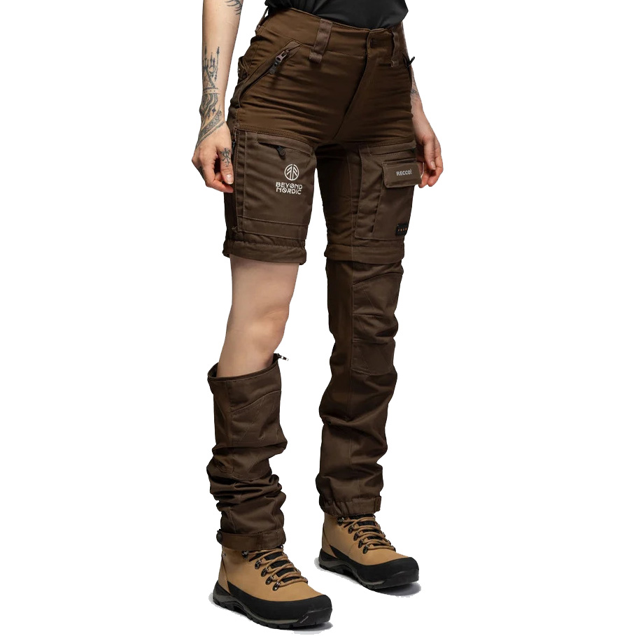 Die B002 Zip-Off Damen-Wanderhose verfügt über abnehmbare Beine und ist die meistverkaufte Allround-Wanderhose für Damen. Strapazierfähige Outdoor-Hose mit modernem Schnitt, geeignet zum Wandern, Trekking, Angeln, Jagen und für andere Outdoor-Aktivitäten wie Gartenarbeit, Hundespaziergang oder Spielen mit der Familie im Garten. Bei der Auswahl der Materialien für unsere Produkte spielen viele Faktoren eine Rolle. Der Schwerpunkt liegt auf Komfort, Haltbarkeit, Atmungsaktivität und Verhalten bei unterschiedlichen Wetterbedingungen. Die Wanderhose BN002 besteht aus Belüftungsmaterial mit hervorragender Atmungsaktivität, 65 % Polyester / 35 % Baumwolle, das mit wasserabweisendem Teflon EcoElite® (DWR-Imprägnierung ohne Fluorcarbone) ausgestattet ist. Belüftungslöcher an der Außenseite der Oberschenkel. Wasserabweisendes und belüftetes Material. Insgesamt 6 Taschen, davon 5 mit Reißverschluss. Verstellbare Beinenden in 4 Positionen. Tasche mit verlängertem Haken zum Befestigen der Hosenbeine, um die Hose am Schuh zu befestigen. Verstärkter Oberschenkelbereich für extreme Haltbarkeit. Mehrere Schlaufen zum Aufhängen von Werkzeugen. RECCO-System für Ihre Sicherheit. Die Sicherheit des Aufenthaltes in der Natur ist äußerst wichtig, weshalb wir RECCO-Technologie verwenden. In dieses Kleidungsstück ist ein reflektierender RECCO-Chip implantiert, der es professionellen Rettungsteams auf der ganzen Welt ermöglicht, im Falle eines Unfalls oder wenn Sie sich in der Natur verlaufen haben, auf dem Luft- oder Landweg zu suchen. RECCO-Reflektoren sind leicht und benötigen für ihre Funktion weder Strom noch Aktivierung. Sie sind so konzipiert, dass sie ein Leben lang halten und weder altern noch verschleißen.
