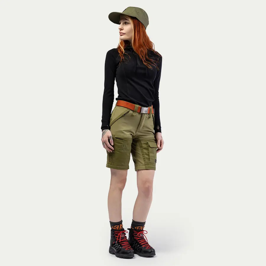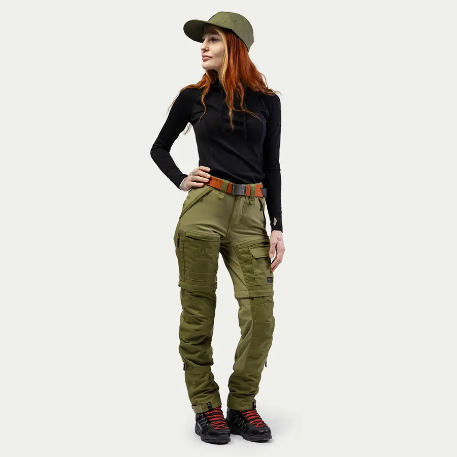 Die B002 Zip-Off Damen-Wanderhose verfügt über abnehmbare Beine und ist die meistverkaufte Allround-Wanderhose für Damen. Strapazierfähige Outdoor-Hose mit modernem Schnitt, geeignet zum Wandern, Trekking, Angeln, Jagen und für andere Outdoor-Aktivitäten wie Gartenarbeit, Hundespaziergang oder Spielen mit der Familie im Garten. Bei der Auswahl der Materialien für unsere Produkte spielen viele Faktoren eine Rolle. Der Schwerpunkt liegt auf Komfort, Haltbarkeit, Atmungsaktivität und Verhalten bei verschiedenen Wetterbedingungen. Die Wanderhose BN002 besteht aus Belüftungsmaterial mit hervorragender Atmungsaktivität, 65 % Polyester / 35 % Baumwolle, das mit wasserabweisendem Teflon EcoElite® (DWR-Imprägnierung ohne Fluorcarbone) ausgestattet ist. Belüftungslöcher an der Außenseite der Oberschenkel. Wasserabweisendes und belüftetes Material. Insgesamt 6 Taschen, davon 5 mit Reißverschluss. In 4 Positionen verstellbare Beinenden. Tasche mit verlängertem Haken zum Befestigen der Hosenbeine, um die Hose am Schuh zu befestigen. Verstärkter Oberschenkelbereich für extreme Haltbarkeit. Mehrere Schlaufen zum Aufhängen von Werkzeugen. RECCO-System für Ihre Sicherheit. Die Sicherheit des Aufenthaltes in der Natur ist äußerst wichtig, weshalb wir RECCO-Technologie verwenden. In dieses Kleidungsstück ist ein reflektierender RECCO-Chip implantiert, der es professionellen Rettungsteams auf der ganzen Welt ermöglicht, im Falle eines Unfalls oder wenn Sie sich in der Wildnis verirren, auf dem Luft- oder Landweg zu suchen. RECCO-Reflektoren sind leicht und benötigen für ihre Funktion weder Strom noch Aktivierung. Sie sind so konzipiert, dass sie ein Leben lang halten und weder altern noch verschleißen.