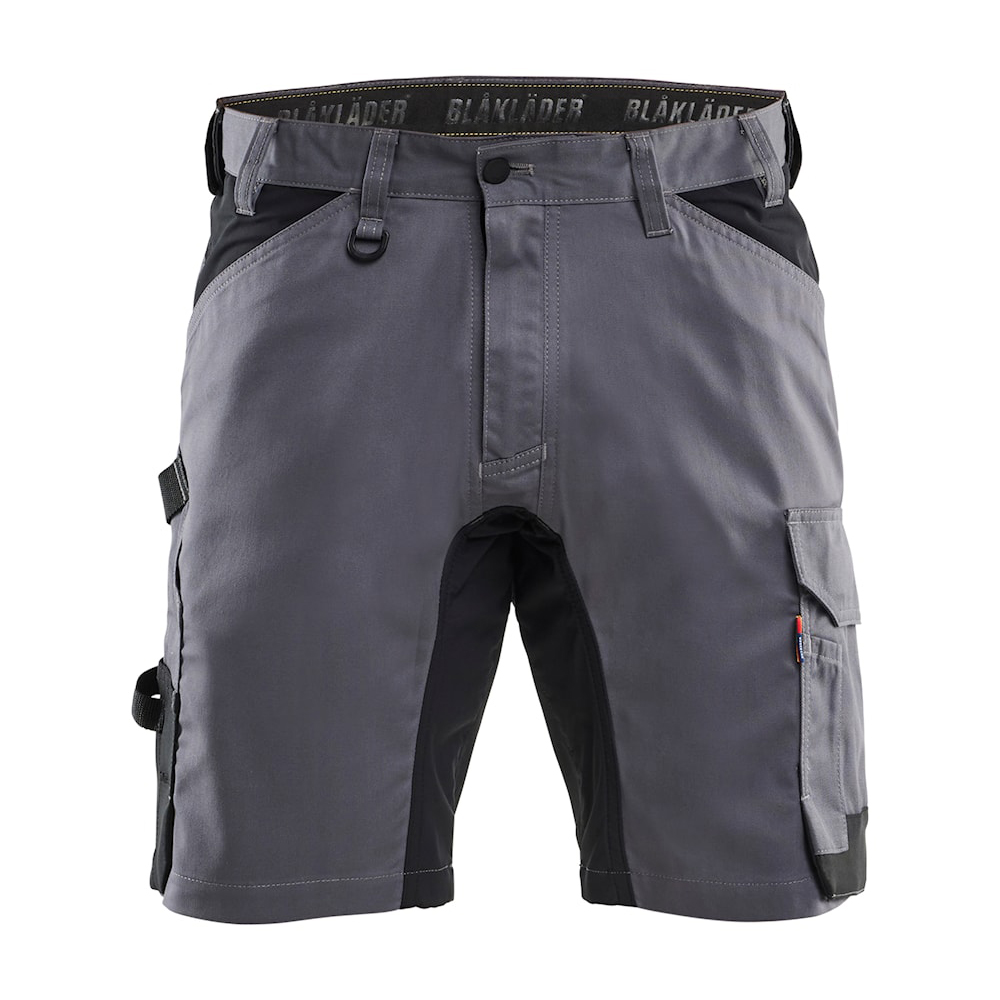 Leichte und bequeme Handwerker-Shorts, die zweifach elastisches Material mit flexiblen Vier-Wege-Stretch-Einsätzen kombinieren und so maximale Bewegungsfreiheit bieten. Praktische, verstärkte Taschen sorgen für zusätzliche Langlebigkeit, darunter eine Zollstocktasche und ein Hammerhalter auf beiden Seiten. Metallknöpfe, ein Kunststoffreißverschluss und breite Gürtelschlaufen gewährleisten hohen Tragekomfort und Haltbarkeit. Dank der speziell konstruierten Nähte, auf die wir eine lebenslange Garantie gewähren, müssen Sie sich keine Sorgen über vorzeitigen Verschleiß machen. Reflektierende Details an den Beinen erhöhen die Sichtbarkeit. Die Materialmischung aus Polyester, Baumwolle und Elastolefin (245 g/m2) sorgt für eine perfekte Balance zwischen Strapazierfähigkeit und Flexibilität.
