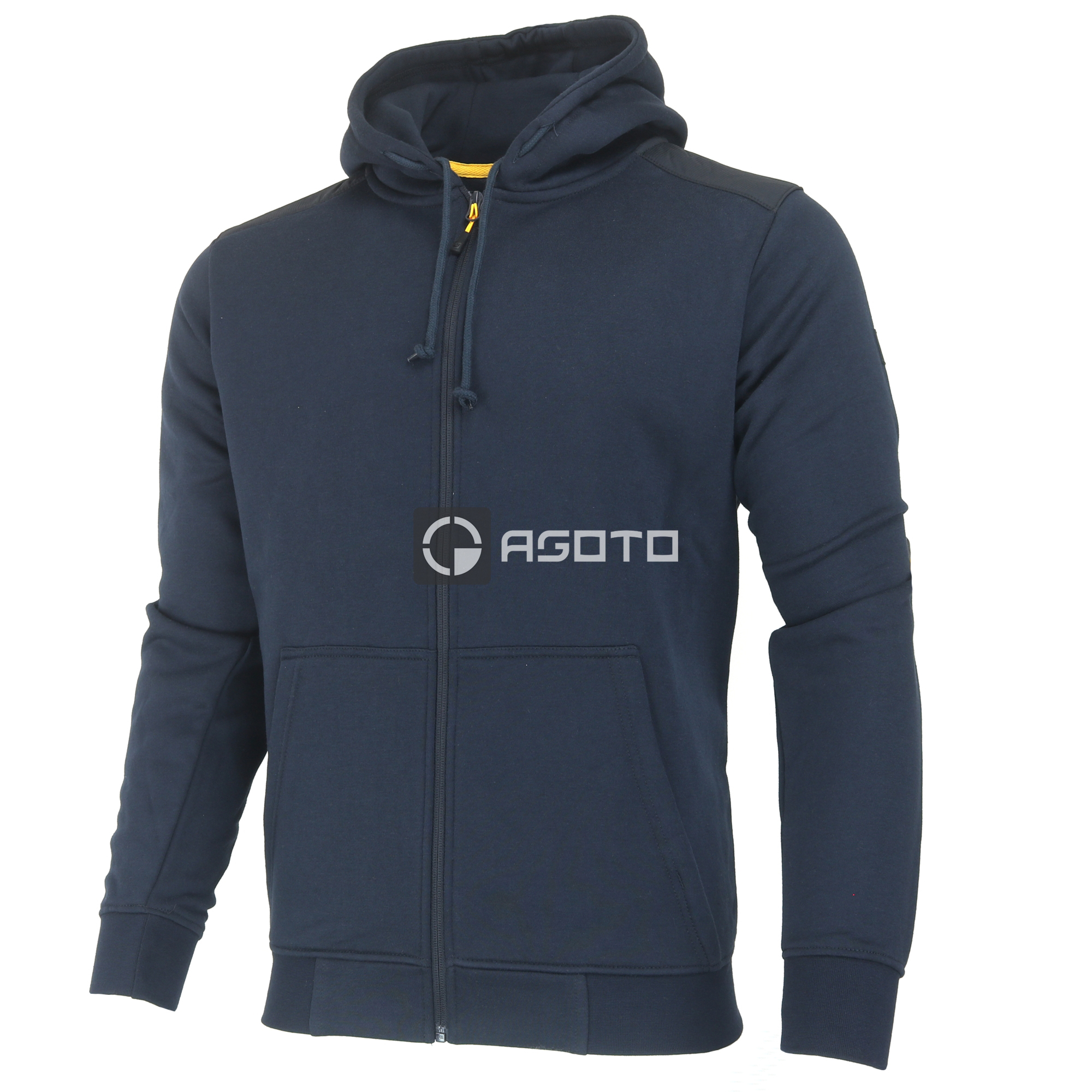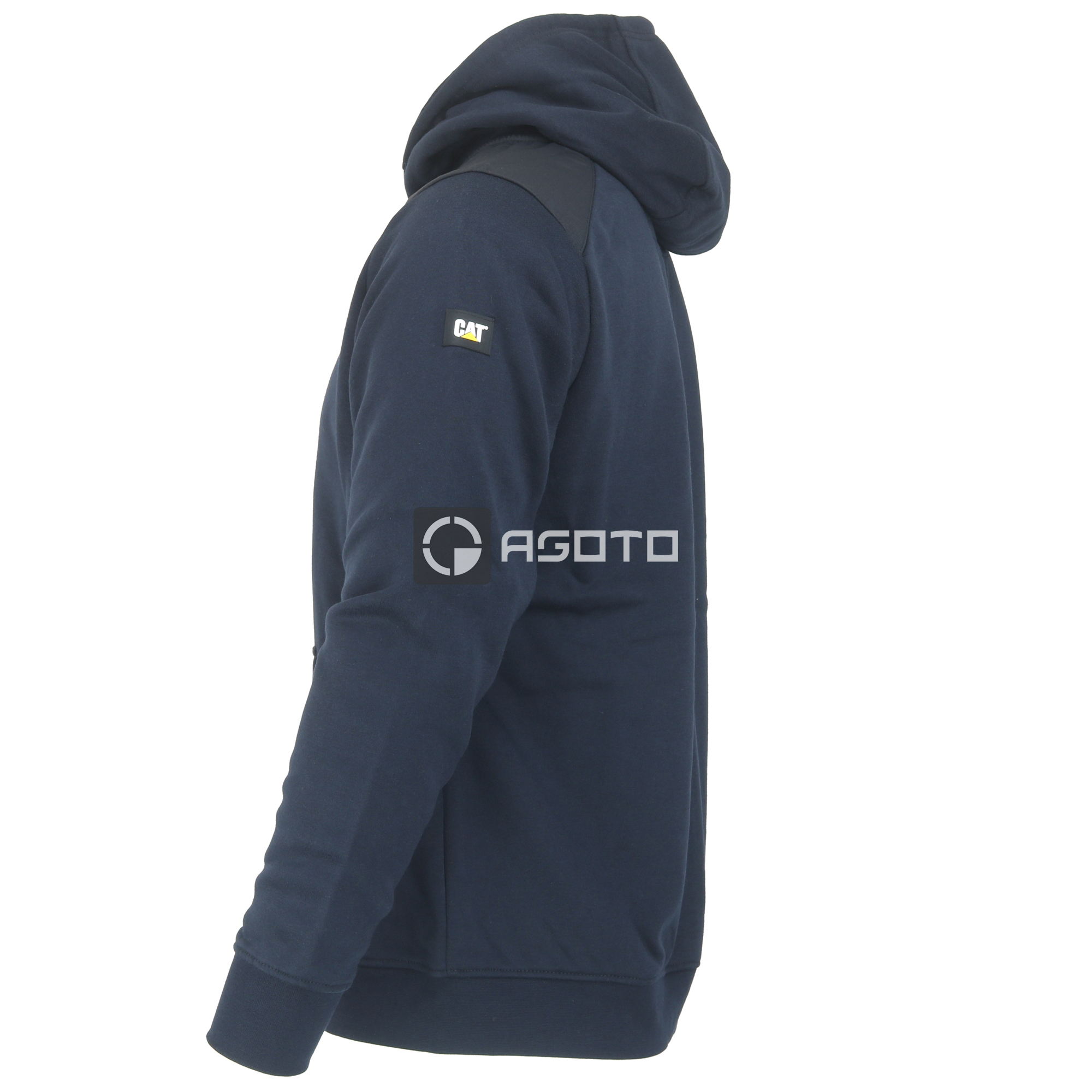Modernes Kapuzen-Sweatshirt mit Reißverschluss zum einfachen Anziehen. Innen hoher Baumwoll- und Fleeceanteil. Verstärkte Schultern + CAT-Logo auf dem linken Ärmel. Material: 70% Baumwolle, 30% Polyesterfleece. Schwarze Farbe. Gewicht: 300g / m2