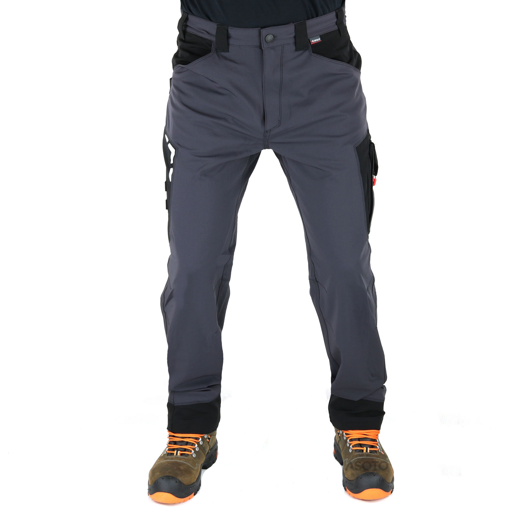 Softshell pracovní kalhoty Cofra Hagfors mají široké přední kapsy, dvojitou zadní kapsou s uzavřenou chlopní, látku s vysokou elasticitou, smyčku na kladivo, ergonomický design kolen a nohou, levá boční kapsa s dvojitým otvorem se zapínáním na zip, pravá boční kapsa se zapínáním na druk. Materiál: 94% nylon, 6% elastan, 250 g/m