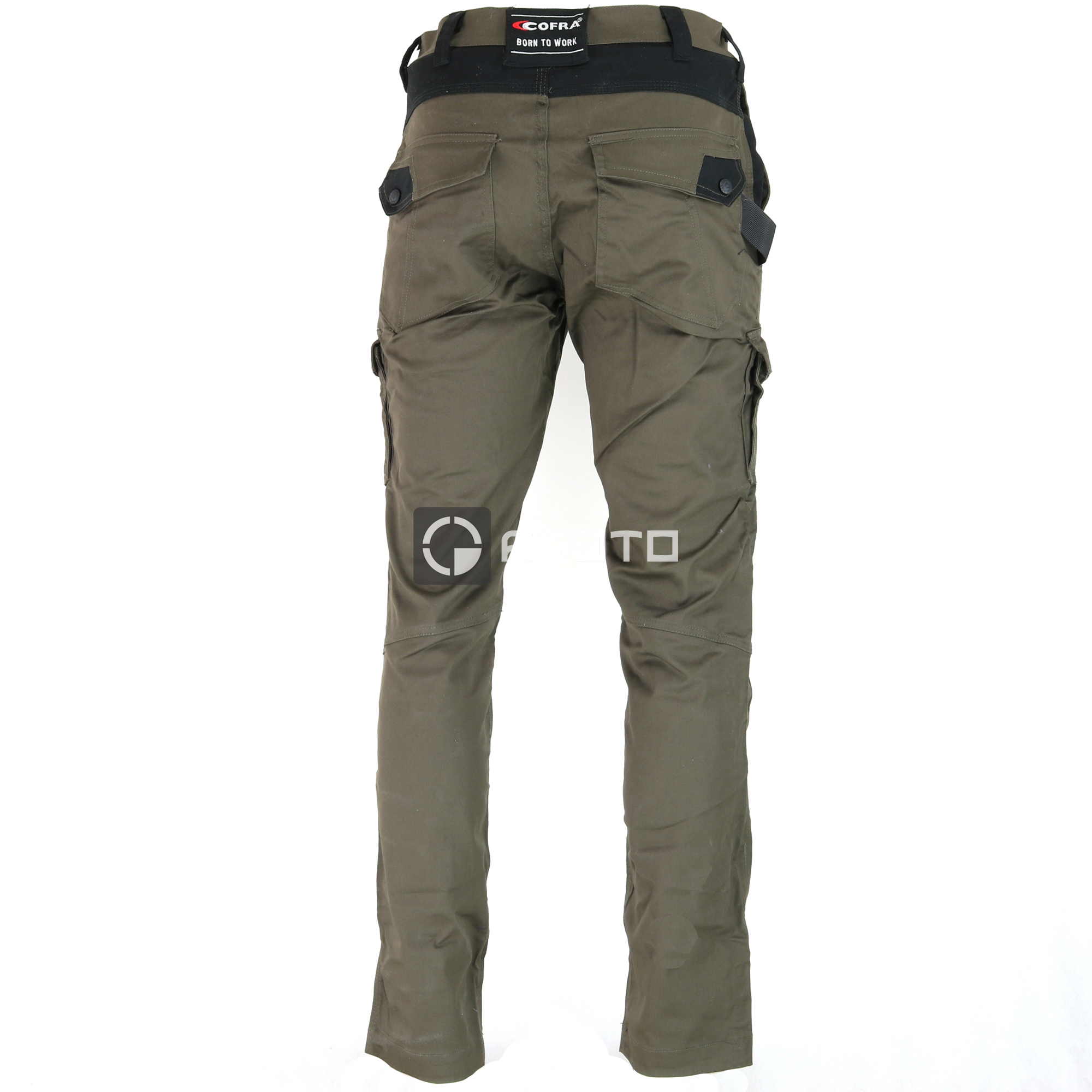Cofra Jember Stretch-Arbeitshose hat breite Fronttaschen, doppelte Gesäßtasche mit geschlossener Patte, Stoff mit hoher Elastizität, Hammerschlaufe, ergonomisches Design von Knien und Beinen, linke Seitentasche mit doppelter Öffnung mit Reißverschluss, rechte Seitentasche mit Verschluss auf Patent . Material: 60% Baumwolle, 37% Polyester, 3% Elasthan, 245g/m2