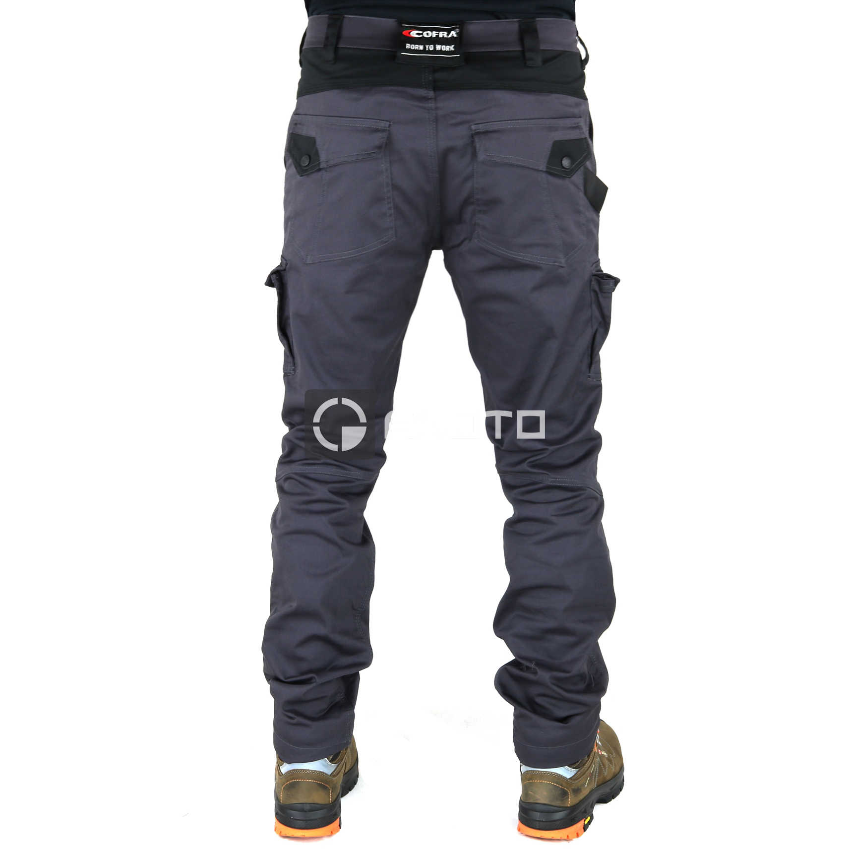 Cofra Jember Stretch-Arbeitshose hat breite Fronttaschen, doppelte Gesäßtasche mit geschlossener Patte, Stoff mit hoher Elastizität, Hammerschlaufe, ergonomisches Design von Knien und Beinen, linke Seitentasche mit doppelter Öffnung mit Reißverschluss, rechte Seitentasche mit Verschluss auf Patent . Material: 60% Baumwolle, 37% Polyester, 3% Elasthan, 245g/m2