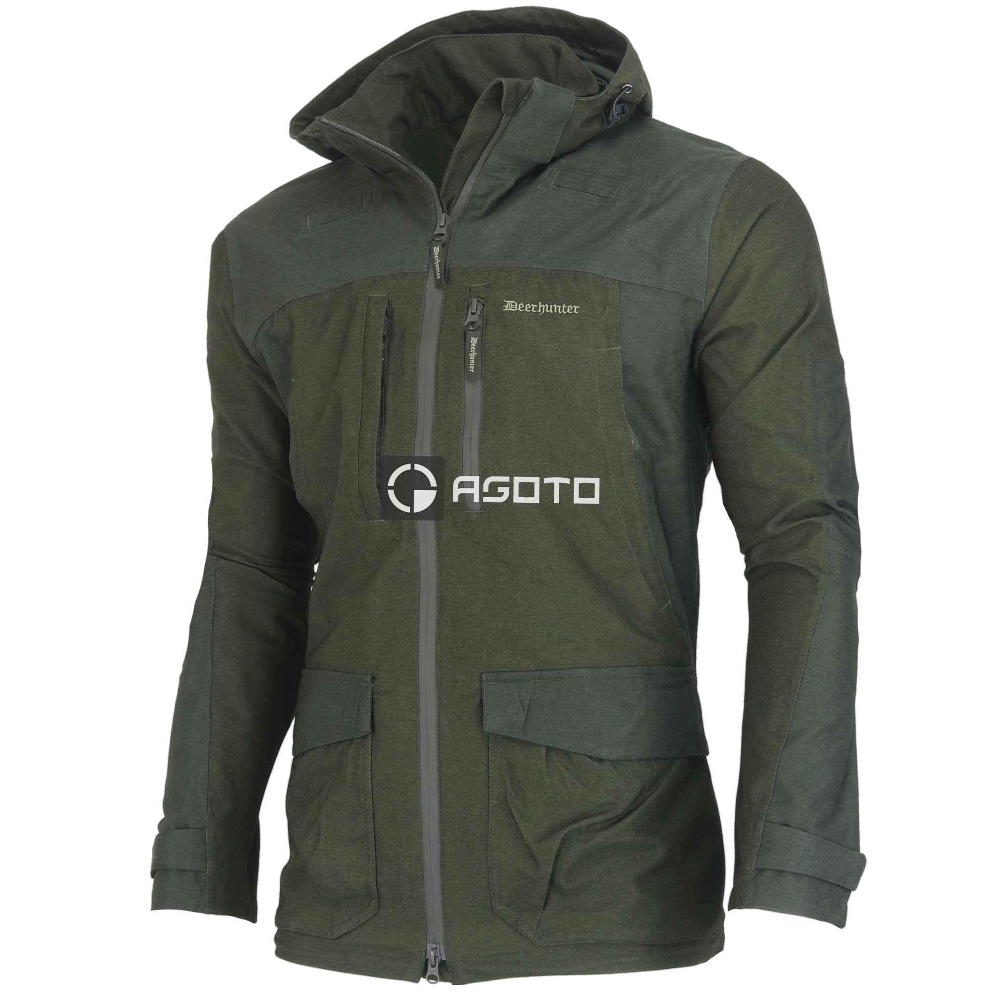Die Deerhunter Denmark Chasse Herren-Outdoor- und Jagdjacke in Oliv ist dank ihres vielseitigen und funktionalen Designs eine ideale Wahl für Jagd- und Outdoor-Aktivitäten. Die Jacke ist leicht, flexibel und wasserdicht mit einer Wassersäule von 5000 mm, wodurch sie sowohl Regen als auch Wind standhält. Vorgeformte Ellbogen und ein Zwei-Wege-Reißverschluss in der Mitte sorgen für Bewegungsfreiheit, während eine abnehmbare Kapuze und ein Kordelzug am Saum eine individuelle Anpassung nach Bedarf ermöglichen. Die Jacke bietet eine Reihe praktischer Taschen, darunter Brust- und Handauflagetaschen mit sicheren Reißverschlüssen, zwei große Pattentaschen vorne und eine Jagdtasche hinten mit Zugriff von beiden Seiten. Alle Nähte sind versiegelt, was die Wasserdichtigkeit erhöht, und das atmungsaktive Material sorgt für Komfort bei aktiven Bewegungen. Diese Jacke ist so konzipiert, dass sie rauen Bedingungen standhält und gleichzeitig Komfort und Schutz bietet.