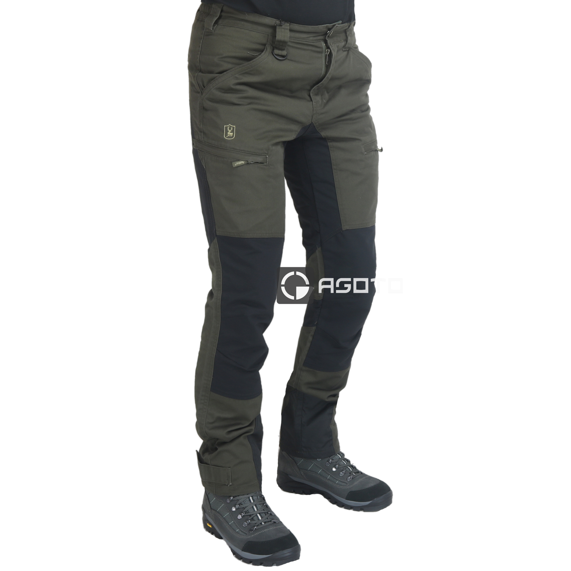 Deerhunter kommt mit einem neuen Modell zu seiner erfolgreichsten Hose. Die Modellreihe Rogaland wird jetzt durch die Hose Rogaland Stretch ergänzt. Die Hose ist für alle Aktivitäten von Jagd bis Outdoor und Camping gedacht. Elastischer Bund, zwei Fronttaschen, zwei Oberschenkeltaschen mit verdecktem Reißverschluss, Gesäßtasche mit verdecktem Reißverschluss, vorgeformte Knie, 4-Wege-Stretchmaterial für mehr Bewegungsfreiheit und eine tolle Passform. Verstärkung am unteren Teil des Beins, an den Knöcheln mit Riemen und Klettverschluss verstellbar. 65 % Polyester / 35 % Baumwolle