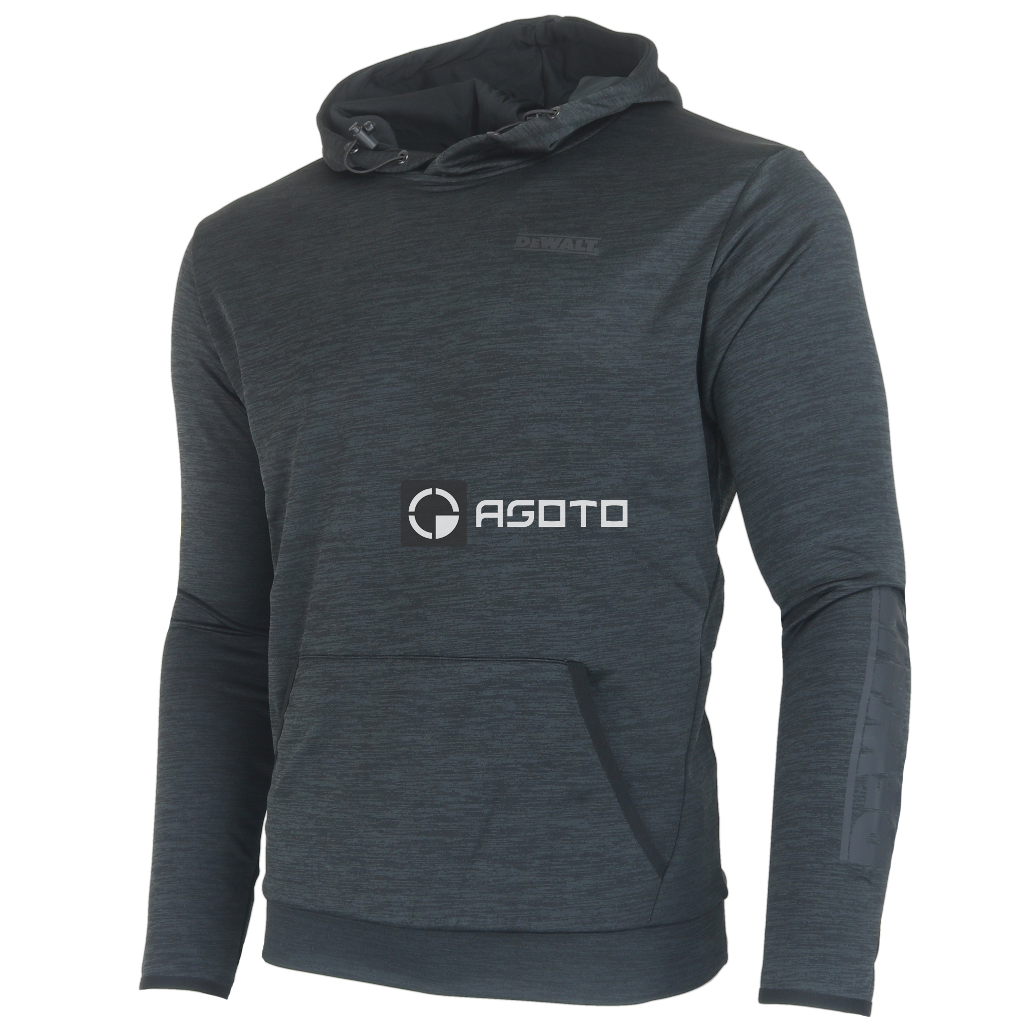 Schwarz melierter funktioneller Kapuzenpullover mit Fronttasche und 3-Panel-Kapuze. Leichter Stoff aus 100 % Polyester. Druck auf Brust und Ärmel mit gebundenem Bündchen. Das Sweatshirt eignet sich hervorragend zum Arbeiten unterwegs, engt nicht ein und ist atmungsaktiv.