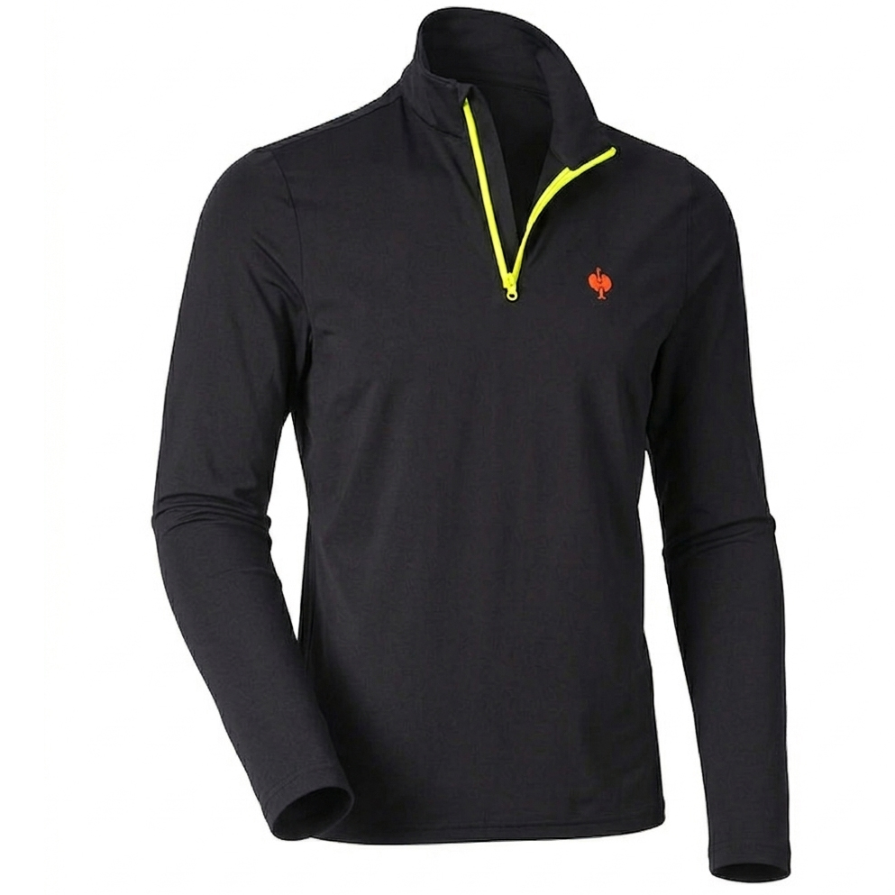 Das funktionelle Langarmshirt in schwarzer Ausführung ist die ideale Wahl für Arbeit und Outdoor-Aktivitäten bei heißen und sonnigen Bedingungen, bei denen Schutz, Komfort und Bewegungsfreiheit entscheidend sind. Das besonders leichte und elastische Material passt sich optimal dem Körper an und sorgt für maximale Flexibilität bei jeder Bewegung. Hochwertige Funktionsfasern leiten Feuchtigkeit zuverlässig von der Haut ab, trocknen schnell und gewährleisten eine hervorragende Atmungsaktivität, sodass auch bei intensiver körperlicher Belastung ein angenehmes Tragegefühl erhalten bleibt. Das Material wirkt angenehm kühlend und ist besonders bei Arbeiten in direkter Sonneneinstrahlung von Vorteil. Der integrierte UV-Schutz 50+ schützt zuverlässig vor schädlicher Sonneneinstrahlung vom Kragen bis zu den Ärmeln. Ein praktischer Stehkragen mit Reißverschluss und Kinnschutz erhöht den Tragekomfort und ermöglicht eine individuelle Belüftung. Der körpernahe Slim-Fit-Schnitt unterstreicht den sportlichen Charakter und das moderne Design. Die Materialzusammensetzung aus 90 % Polyester und 10 % Elasthan mit einem Gewicht von ca. 135 g/m2 sorgt für eine optimale Balance zwischen Leichtigkeit, Strapazierfähigkeit und Komfort. Die schwarze Farbe verleiht dem Shirt einen zeitlosen und vielseitigen Look, der sich sowohl für die Arbeit als auch für die Freizeit eignet.