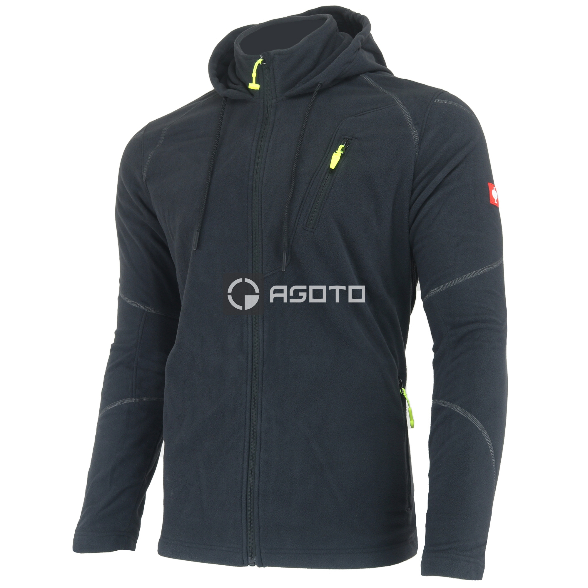 Engelbert Strauss leichte, warme und atmungsaktive Mikrofleece-Kapuzenjacke. 2 Einschubtaschen mit Reißverschluss, 2 große Innentaschen. Material 100 % Polyester