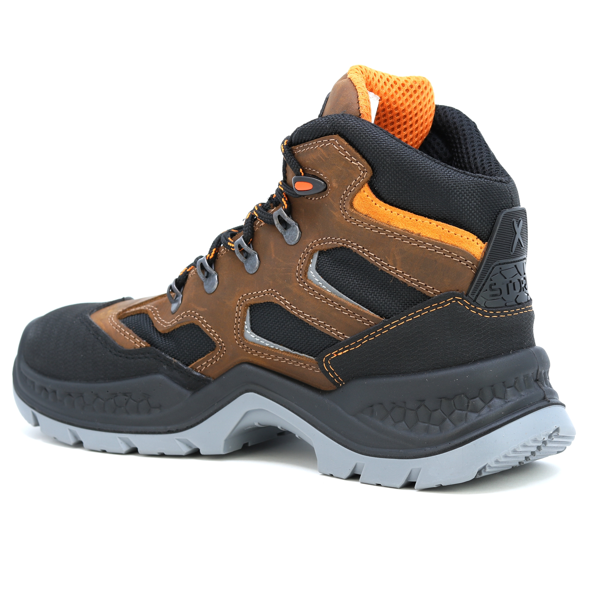Kožené pracovní boty italské značky Exena se stupněm ochrany S3 jsou navrženy tak, aby vyhověly nejpřísnějším požadavkům kladeným na pracovní obuv. Špička obuvi obsahuje kompozitovou tužinku s kevlarovou stélkou pro účinnou ochranu proti mechanickému nárazu. Výhodou kompozitové tužinky je vlastnost, která zabraňuje přehřívání v letních měsících a zároveň vede k udržení tepelného komfortu při chladných dnech. Svršek boty je vyroben z kvalitní lícové usně. Vnitřek obuvi je opatřen prodyšnou textilií, která umožňuje noze volně dýchat při vysoké pracovní zátěži. Podrážka je vyrobena z antistatického a olejivzdorného materiálu. Pracovní obuv Exena udělá radost zákazníkům hledajícím u obuvi zejména kvalitu a pohodlí. EN ISO 20345 - BEZPEČNOSTNÍ OBUV.