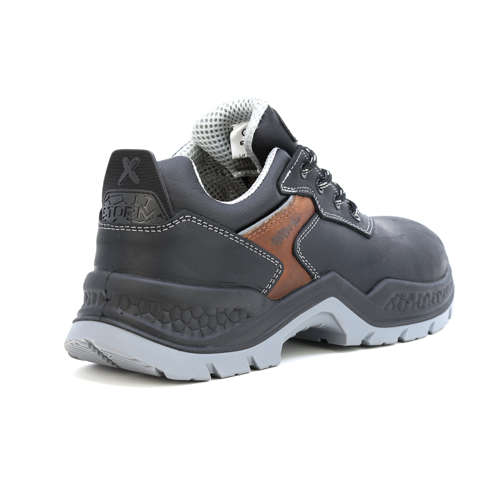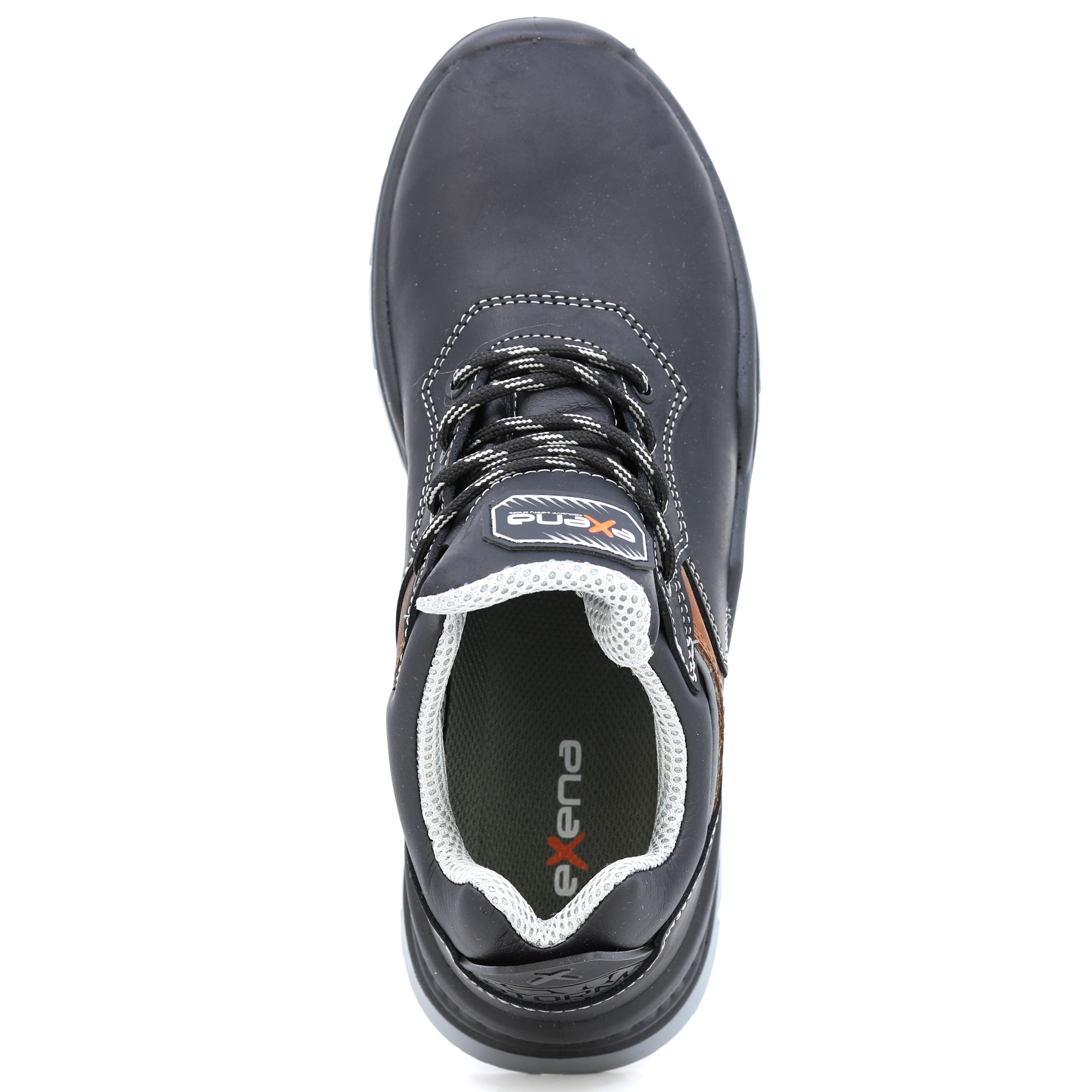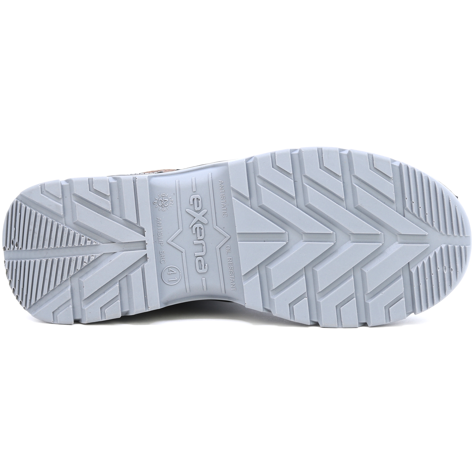 Kožené pracovní boty italské značky Exena se stupněm ochrany S3 jsou navrženy tak, aby vyhověly nejpřísnějším požadavkům kladeným na pracovní obuv. Špička obuvi obsahuje kompozitovou tužinku s kevlarovou stélkou pro účinnou ochranu proti mechanickému nárazu. Výhodou kompozitové tužinky je vlastnost, která zabraňuje přehřívání v letních měsících a zároveň vede k udržení tepelného komfortu při chladných dnech. Svršek boty je vyroben z kvalitní lícové usně. Vnitřek obuvi je opatřen prodyšnou textilií, která umožňuje noze volně dýchat při vysoké pracovní zátěži. Podrážka je vyrobena z antistatického a olejivzdorného materiálu. Pracovní obuv Exena udělá radost zákazníkům hledajícím u obuvi zejména kvalitu a pohodlí. Svršek: