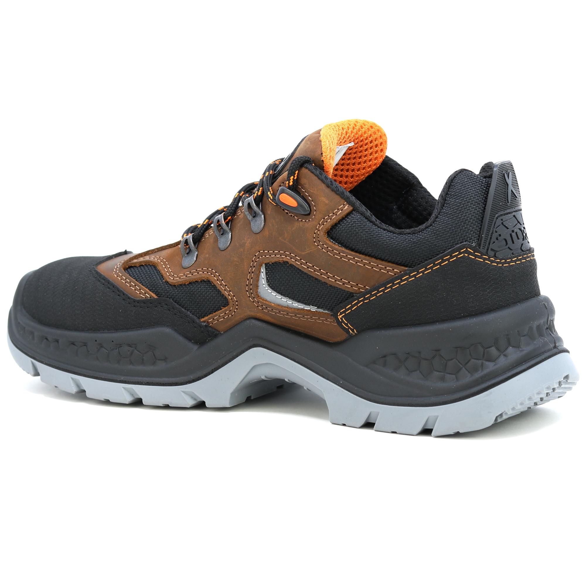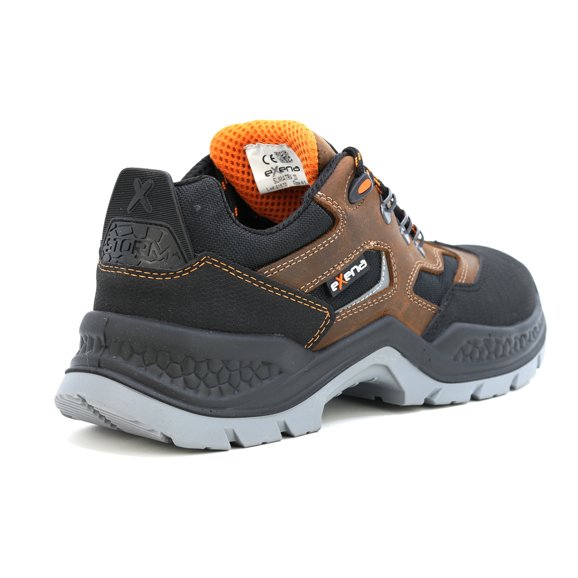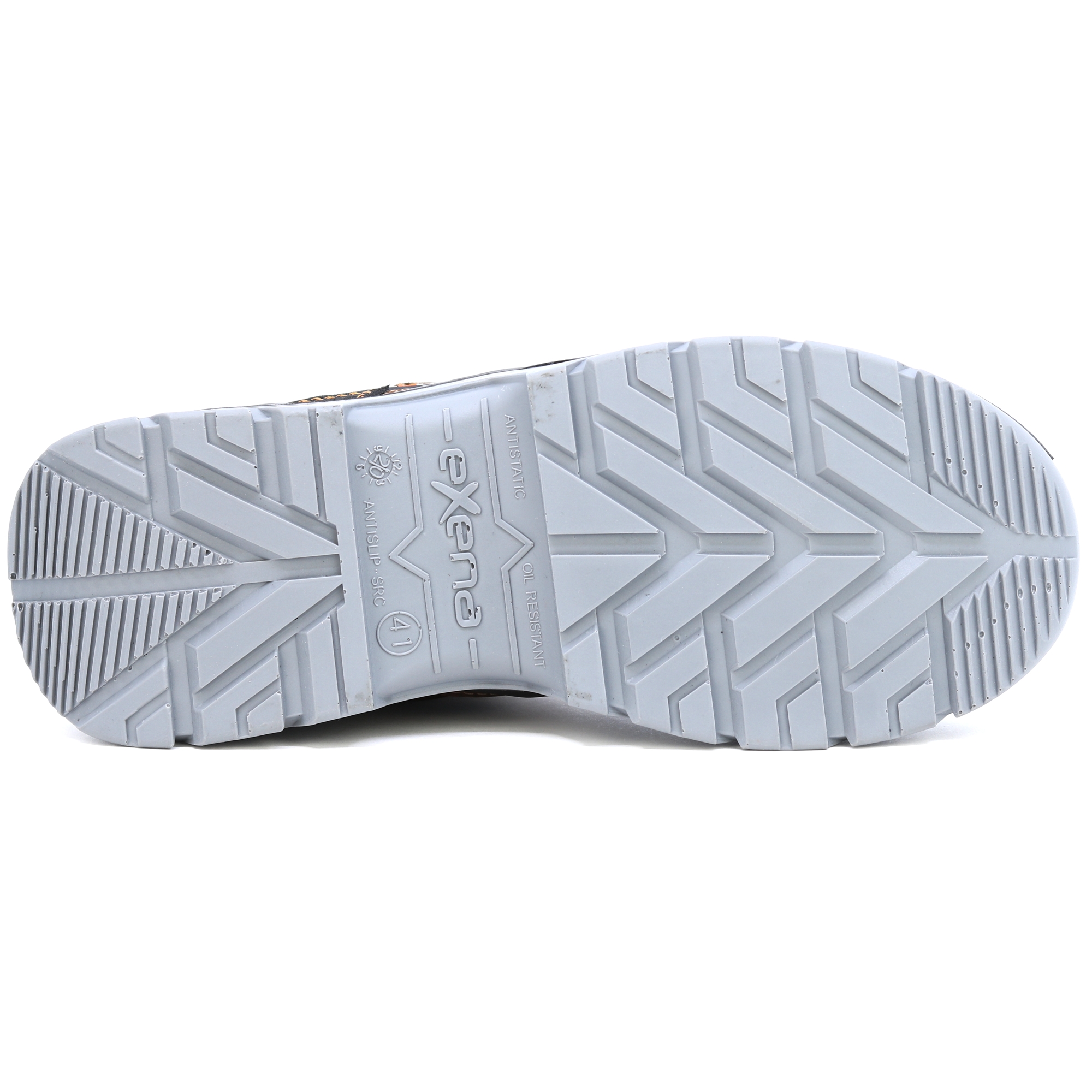 Kožené pracovní boty italské značky Exena se stupněm ochrany S3 jsou navrženy tak, aby vyhověly nejpřísnějším požadavkům kladeným na pracovní obuv. Špička obuvi obsahuje kompozitovou tužinku s kevlarovou stélkou pro účinnou ochranu proti mechanickému nárazu. Výhodou kompozitové tužinky je vlastnost, která zabraňuje přehřívání v letních měsících a zároveň vede k udržení tepelného komfortu při chladných dnech. Svršek boty je vyroben z kvalitní lícové usně. Vnitřek obuvi je opatřen prodyšnou textilií, která umožňuje noze volně dýchat při vysoké pracovní zátěži. Podrážka je vyrobena z antistatického a olejivzdorného materiálu. Pracovní obuv Exena udělá radost zákazníkům hledajícím u obuvi zejména kvalitu a pohodlí. EN ISO 20345 - BEZPEČNOSTNÍ OBUV