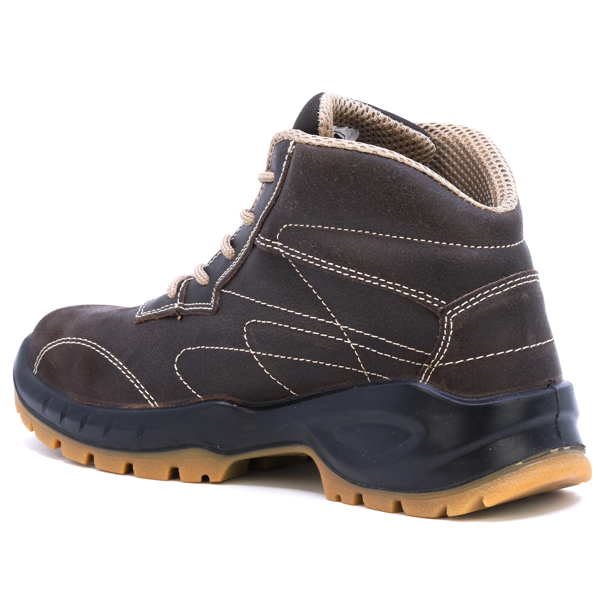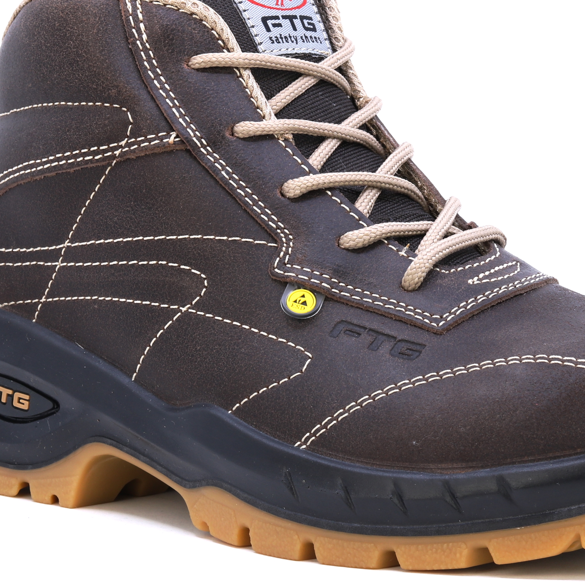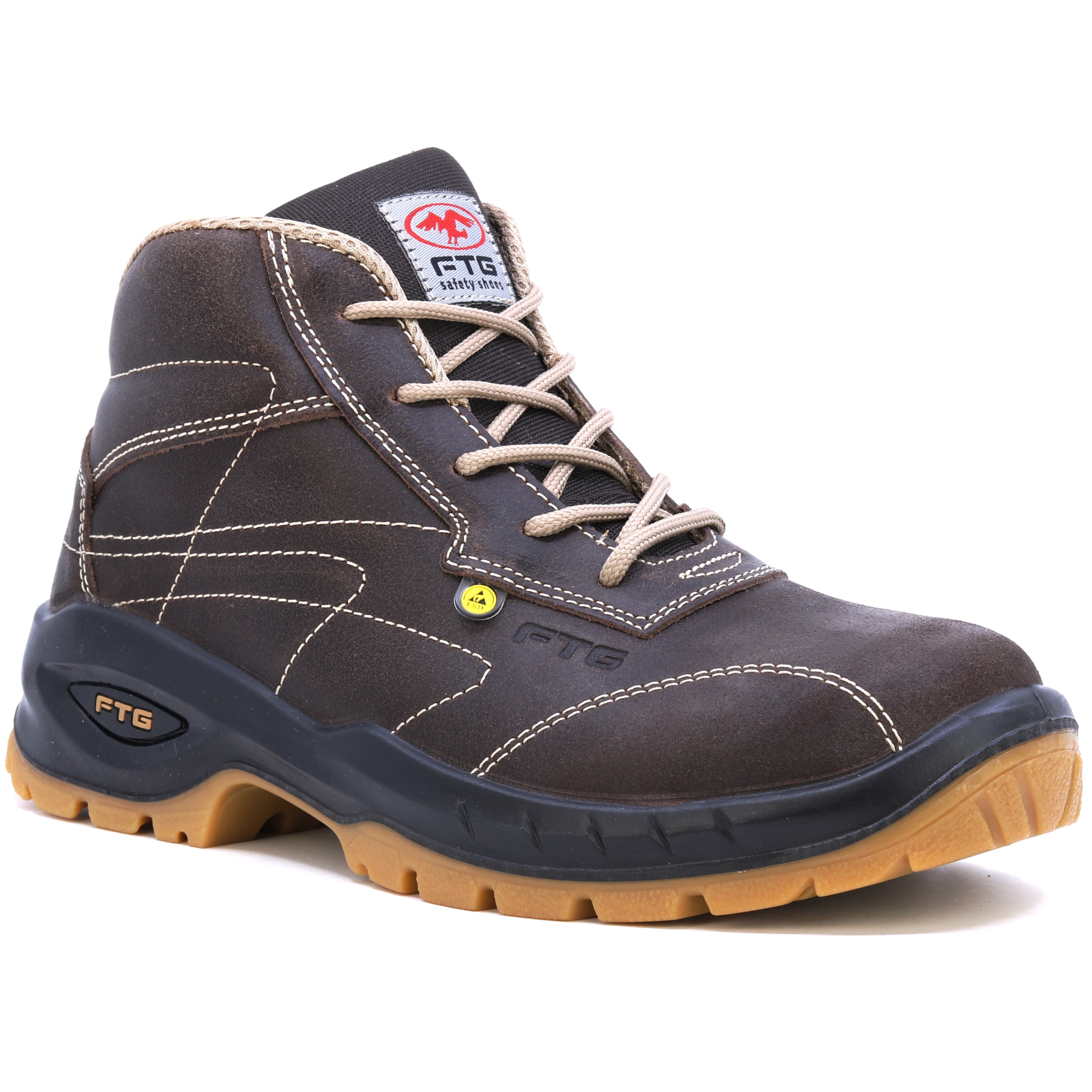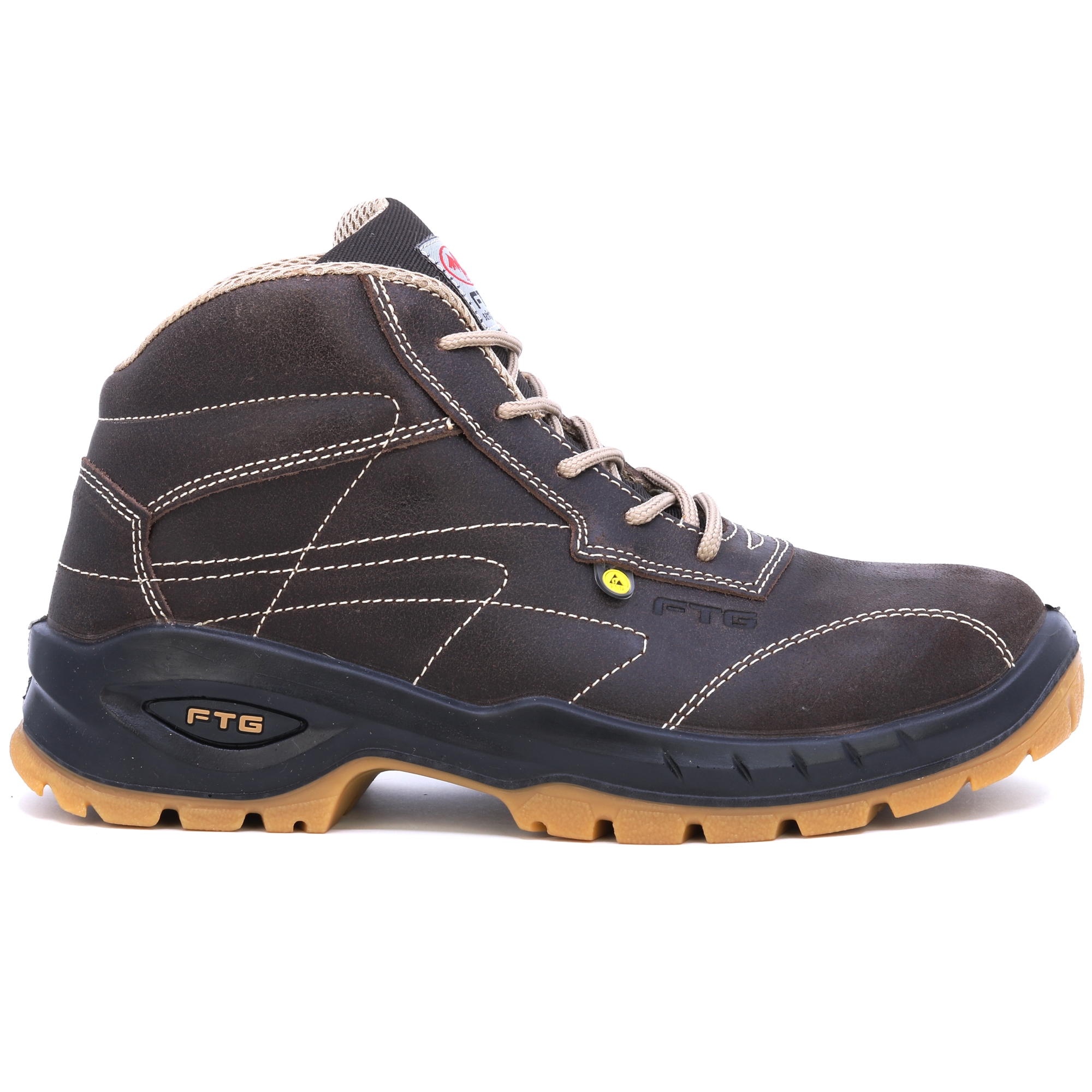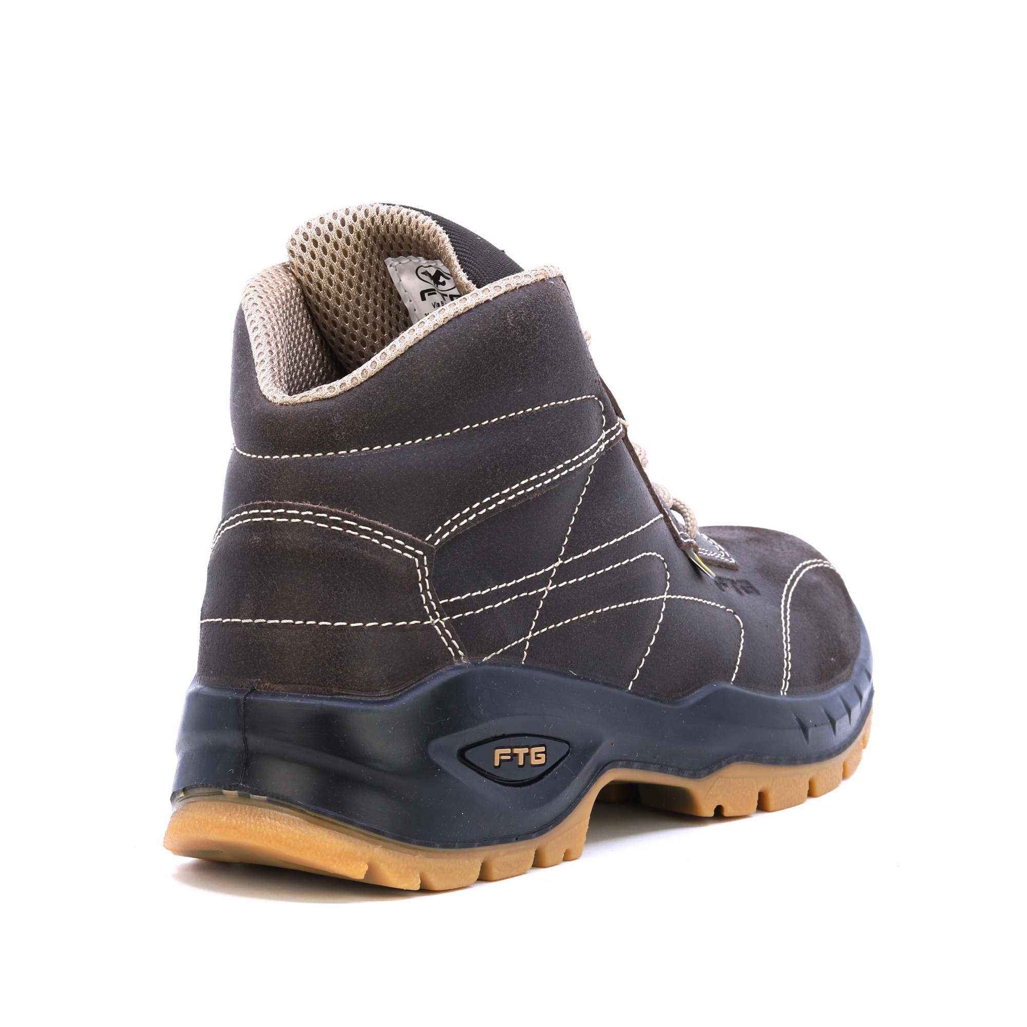 FTG Convair 2 Nubukbraune Stepp-Sicherheitsschuhe S3. HIGH-TEX-Einlegesohlen, Wabenfutter für besseren Schweißtransport, SOHLE Transluzides Polyurethan mit doppelter Dichte. Gute Wahl für anspruchsvolle Bedingungen.