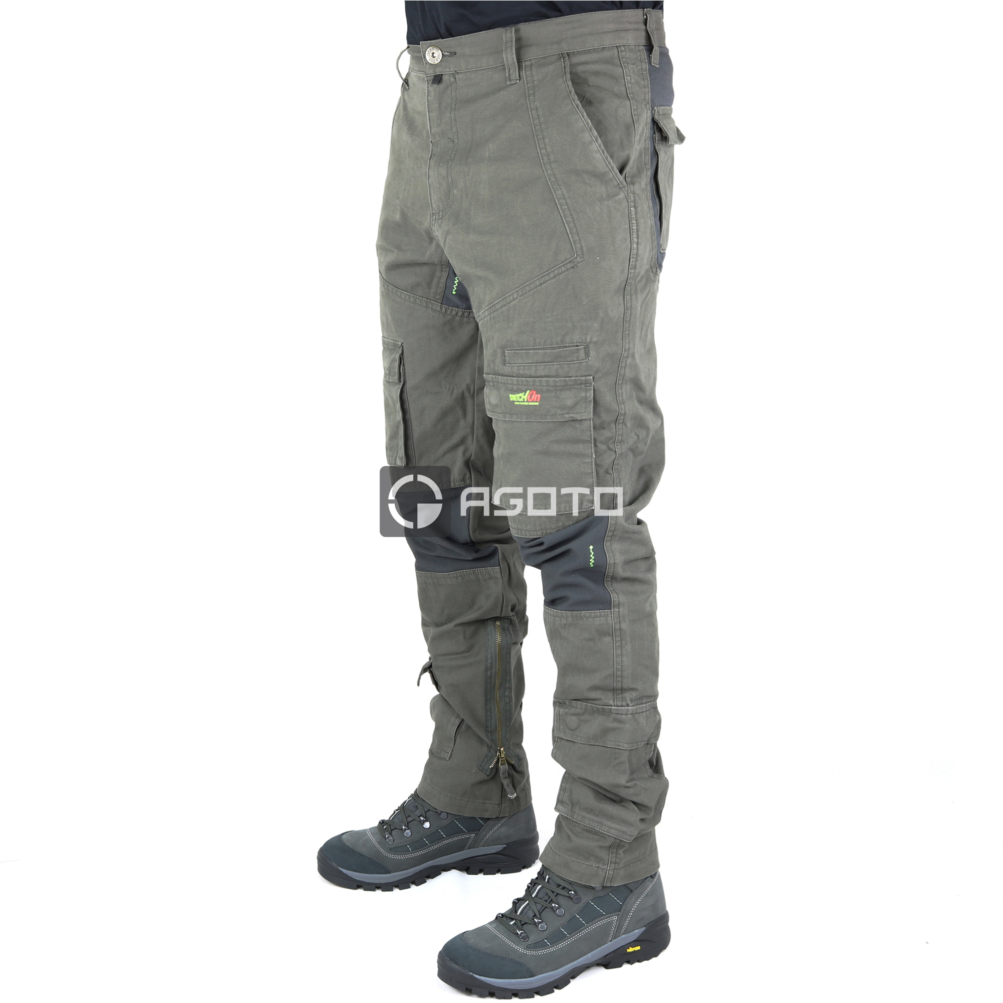 Multi-kapsa kalhoty 100% bavlněné plátno s textilní strečovou kombinací v místech, kde se nejvíce napínají, zajišťující vysoký komfort při nošení. Praktické upravování obvodu pasu pomocí gumy a knoflíků. Kalhoty jsou dodávány v krabici. Složení: 100% bavlněné plátno s elastickou tkaninou.