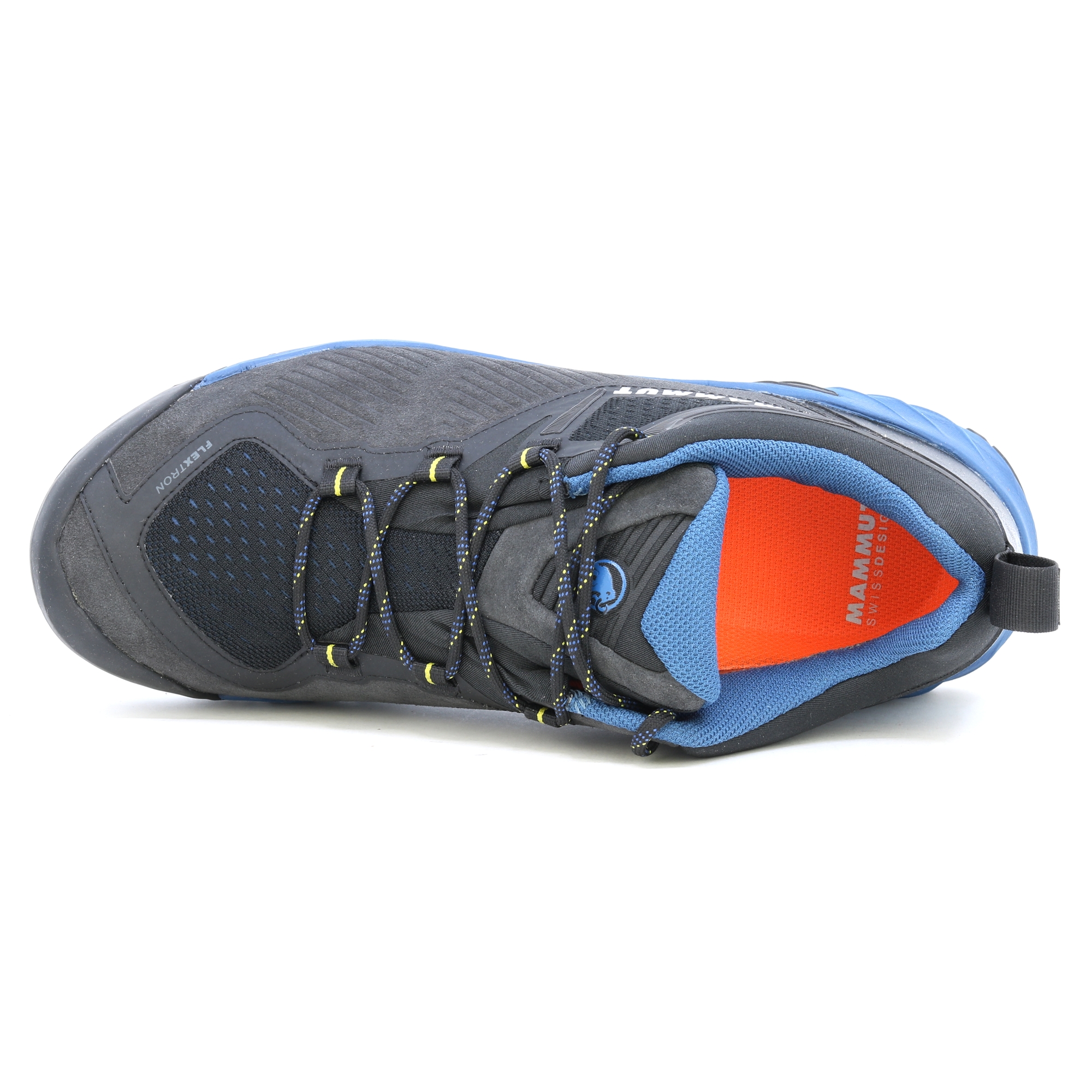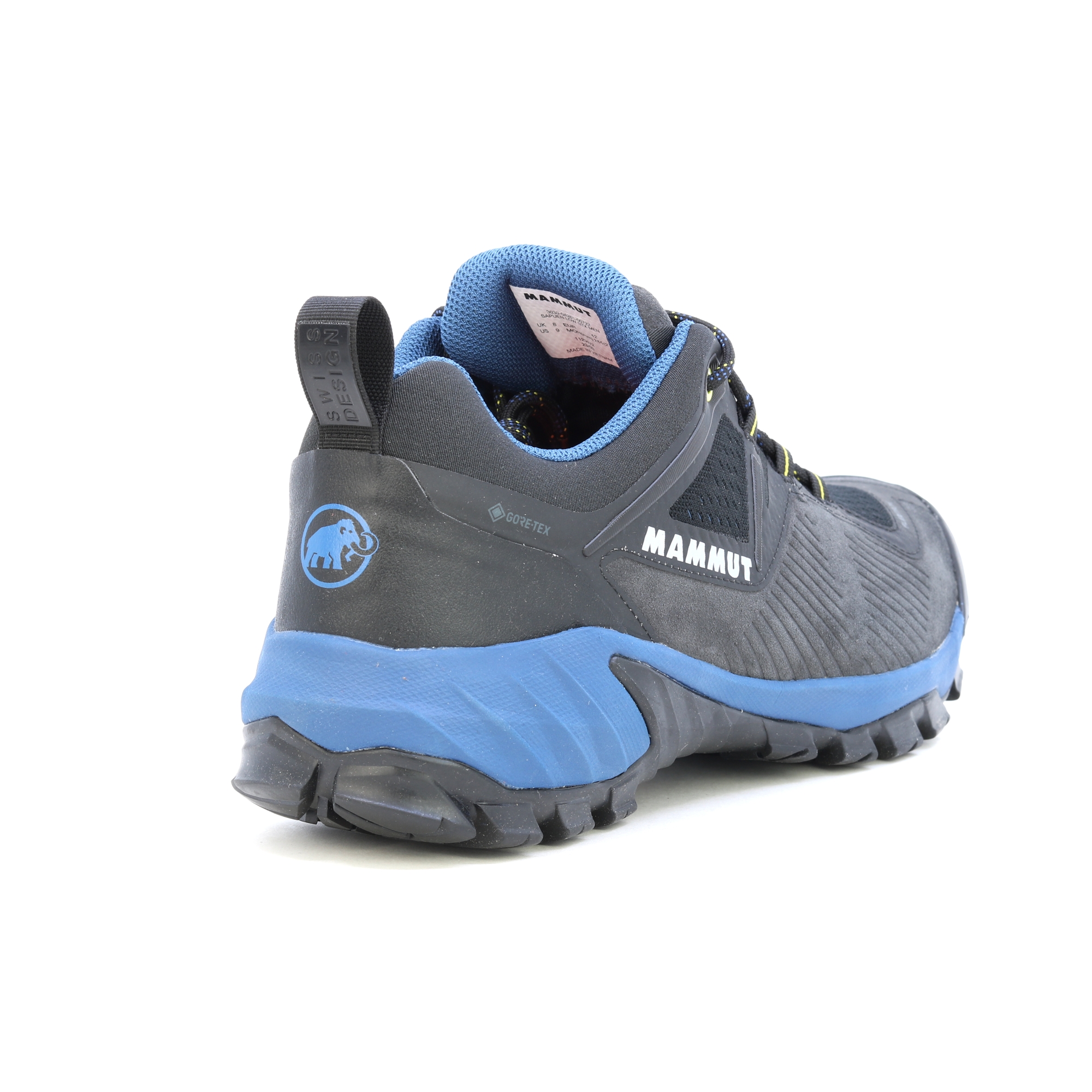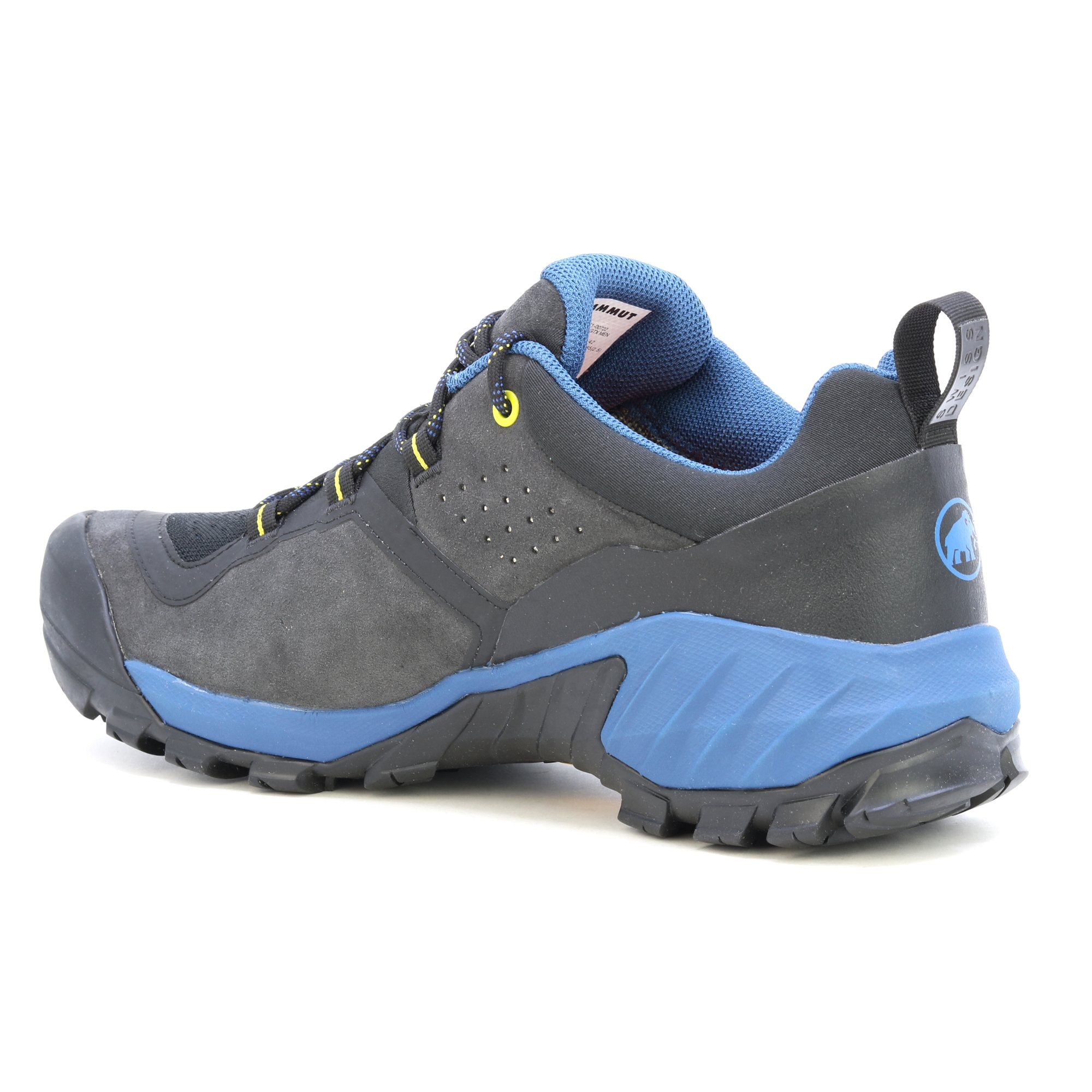 Der Mammut Sapuen Low GTX Trekkingschuh ist ein niedriges Modell, das den Anforderungen von Liebhabern mehrtägiger Expeditionen mit Rucksack gerecht wird. Die Schuhe sind mit einer GORE-TEX®-Membran ausgestattet, die für eine hohe Wasserdichtigkeit sorgt. Bei der Konstruktion der Stiefel kommen Lösungen wie Mammut Flextron® und Mammut Georganic® 3D zum Einsatz. Das hier vorgestellte Bergmodell verfügt über ein Obermaterial, das Velours, dehnbaren Stoff und strapazierfähiges Mesh kombiniert. Dadurch sind die Schuhe nicht nur langlebig und sehen toll aus, sondern bieten auch optimale Atmungsaktivität und passen sich dem Fuß perfekt an. Dank der GORE-TEX®-Membran bieten die Mammut Sapuen Low GTX Trekkingschuhe eine hohe Wasserdichtigkeit und gute Atmungsaktivität. Der Schutz vor Wasser wird zusätzlich durch die DWR-Imprägnierung unterstützt, die Wassertropfen abweist. Das Modell verfügt über eine dämpfende Zwischensohle und eine 3D-Memo-Foam-Einlegesohle, die sich der Fußform anpasst und für maximalen Komfort, Halt und Schutz vor Abrieb sorgt. Die Mammut Sapuen Low GTX Trekkingschuhe nutzen die Mammut Flextron®-Lösung, die die natürliche Bewegung beim Abrollen des Fußes unterstützt und eine effizientere Energienutzung beim Gehen ermöglicht. Wichtig ist auch die Mammut Georganic® 3D-Lösung, die für einen hohen Komfort beim Tragen von Schuhen sorgt. Alle Elemente, die mit dem Fuß in Kontakt kommen, sind anatomisch geformt, während die klassische Konstruktion der Zunge ein einfaches Anziehen ermöglicht. Das Modell verwendet eine griffige und äußerst abriebfeste Vibram®-Sohle