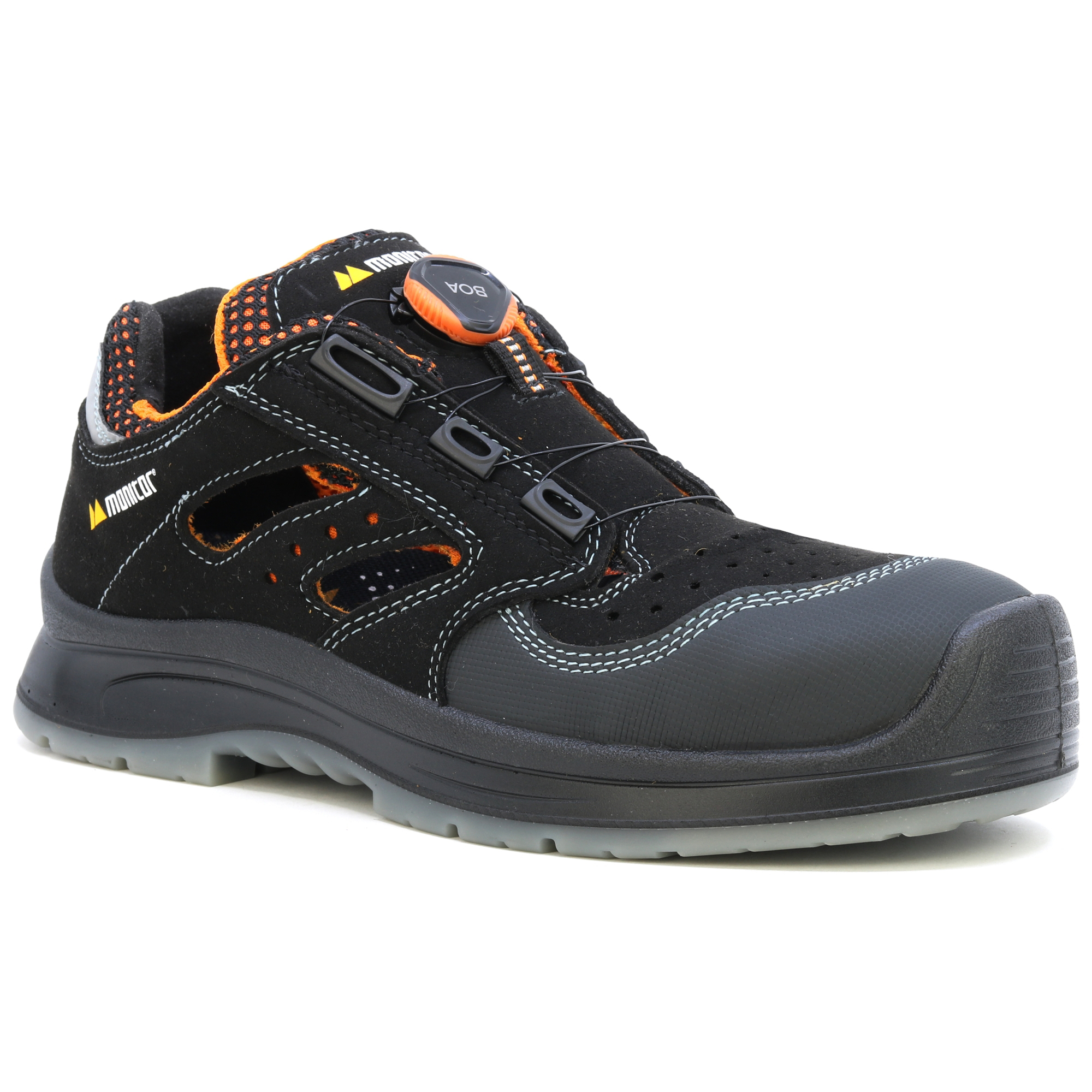 Monitor Aero aus der Premium-Serie Monitor Momentum. Verstärkte Spitze und Ferse. Die SRC-Klasse-Sohle besteht aus zweifach dichtem PU-Material mit einer Laufflächenstruktur, die für glatte Industrieböden und Bauarbeiten mit hoher Belastung geeignet ist. Das Innere ist mit einem weichen Super-Lex-Futter ausgestattet, das Feuchtigkeit absorbiert und die Schuhe noch komfortabler für den Träger macht. Die Fit-Tech-Einlegesohle bietet zusätzliche Dämpfung und Feuchtigkeitsabsorption. Die Schuhe sind mit dem BOA-System für schnelles und bequemes Anziehen ausgestattet.