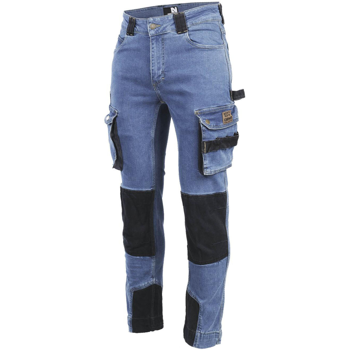 Die Arbeitsjeans Nine Worths Neo bestehen aus einem strapazierfähigen Material mit einem Hauptstoff aus 98 % Baumwolle und 2 % Elasthan (300 g/m2), ergänzt durch 600D Oxford-Verstärkungen (65 % Baumwolle, 35 % Polyester, 280 g/m2). Kniebereich, Taschen und Unterteile. Die Hose hat einen hohen hinteren Bund für besseren Schutz, Dreifachnähte für maximale Festigkeit und acht praktische Taschen (einschließlich Taschen für Kleinteile, Maßband und Werkzeug). Außerdem verfügt sie über Schlaufen zum Aufhängen von Maßbändern und Werkzeugen sowie eine verstellbare Beinlänge, was sie zur idealen Arbeitskleidung für anspruchsvolle Bedingungen macht.