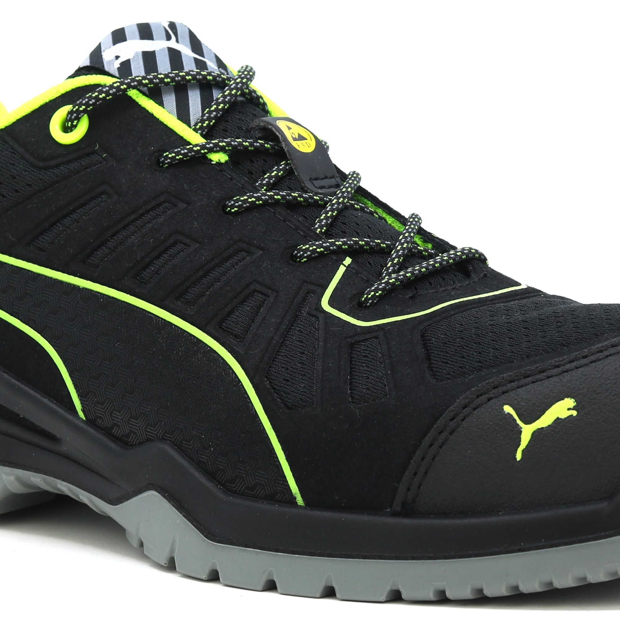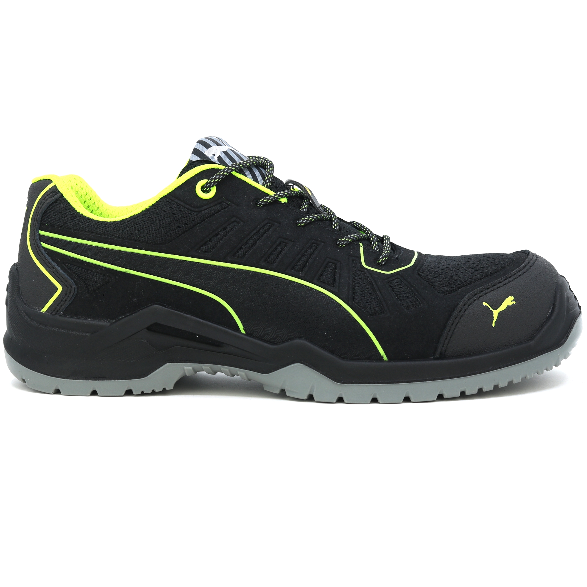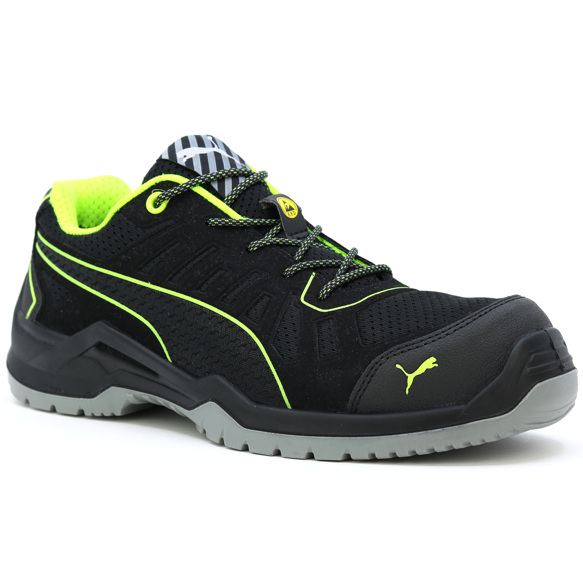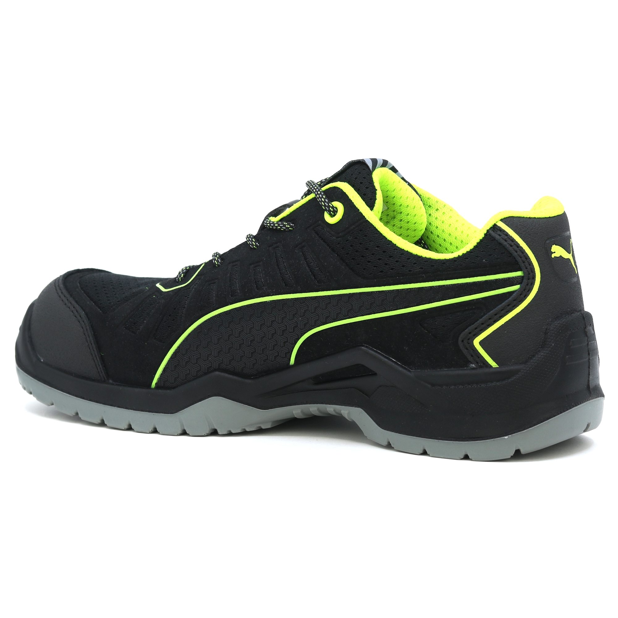 Die metallfreien Puma FUSE TC Arbeitsschuhe der TECHNICS LINE Serie zeichnen sich durch hohe Flexibilität und eine auffallende Leichtbauweise aus. Dies wird durch die Architektur der naturalFLEXMOTION®-Sohle erreicht. Es kombiniert das „Natural Running“-Konzept mit neuester Technologie für Sicherheitsschuhe. Der Schaft des S1P Sicherheitsschuhs mit ESD-Eigenschaften wurde mit Unterstützung der FUSE.TEC®-Technologie gefertigt. Auf diese Weise werden die Verstärkungselemente nahtlos mit dem textilen Grundmaterial verschweißt. Heiß begehrte Bereiche wie Flexzonen kommen daher ganz ohne Nähte aus. Die Schuhe werden flexibler, langlebiger und passen perfekt. Die Evercushion® BA Einlegesohle aus offenporigem Schaumstoff leitet Schweiß vom Fuß weg und sorgt zusammen mit dem atmungsaktiven BreathActive Funktionsfutter für ein angenehmes Klima den ganzen Tag. Das speziell entwickelte Sohlenprofil garantiert somit bestmöglichen Grip, insbesondere auf glatten Industrieböden