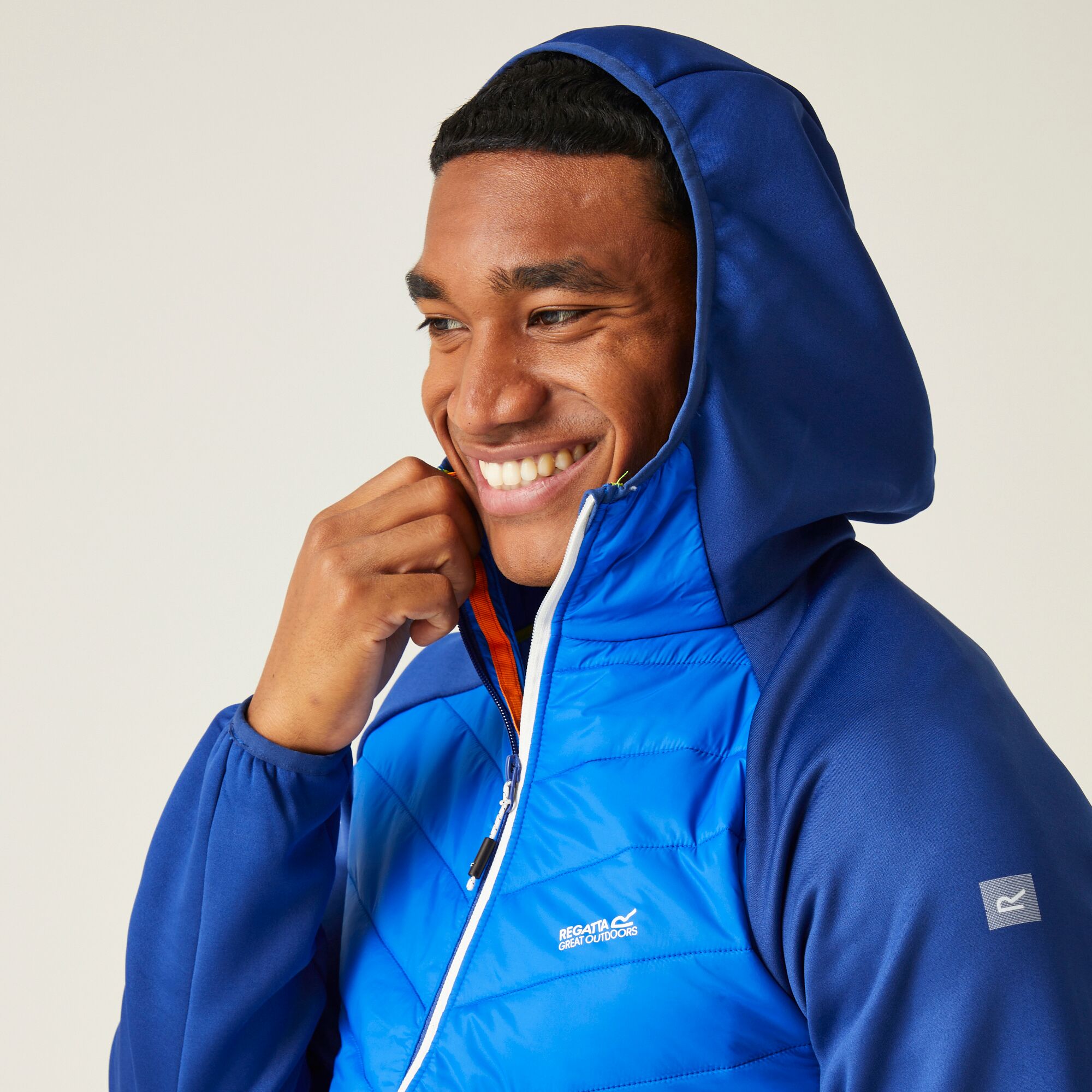 Die Herrenjacke Regatta Andreson VIII Hybrid in blauer Ausführung aus der Men’s Outdoor Active Kollektion ist die ideale Wahl für den Einsatz in der Stadt ebenso wie für Outdoor-Aktivitäten. Ärmel, Seitenpartien und Kapuze bestehen aus elastischem Extol-Stretch-Material, das uneingeschränkte Bewegungsfreiheit und hohen Tragekomfort bietet. Dank der Warmloft-Technologie sorgt die Jacke auch bei kühlem und unbeständigem Wetter für angenehme Wärme, während die wasserabweisende DWR-Ausrüstung zuverlässigen Schutz vor Nässe und Regen bietet. Die Thermo-Guard-Isolierung verhindert effektiv das Eindringen kalter Luft und hält den Körper auch bei anspruchsvollen Aktivitäten angenehm warm. Diese blaue Hybridjacke vereint Funktionalität, modernes Design und zuverlässigen Wetterschutz und ist damit ein vielseitiger Begleiter für jeden Tag.