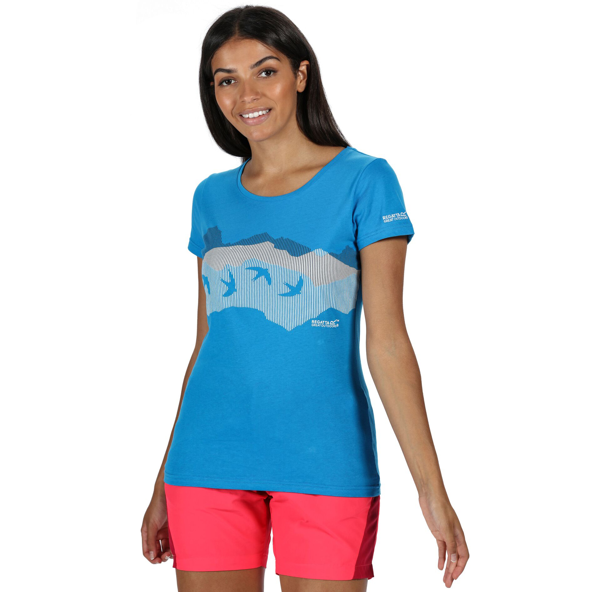 Dámské tričko s krátkým rukávem Regatta Breezed. Technologie Coolweave s chladícím účinkem. Bavlněná vlákna mají zcela přirozený chladicí účinek přímo na kůži. Potisk na přední straně. Materiál: 100% bavlna.