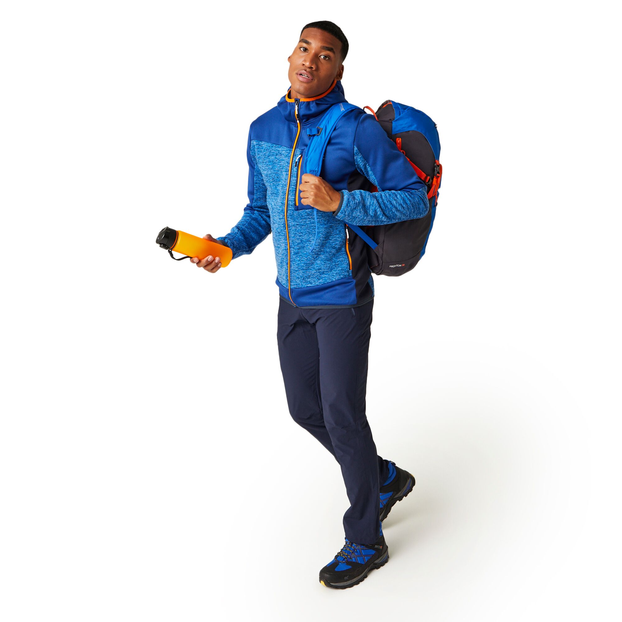 Der Regatta Herren-Fleece-Hoodie Cadford VI von Regatta verfügt über einen stilvollen melierten Strick und flexible Stretcheinsätze und ist somit die ideale Mittelschicht für unterwegs. Dank des warmen und bequemen Fleece ist es ideal für Spaziergänge und Ausflüge in die Natur. Der melierte Strickeffekt verleiht ihm Stil. In kälteren Klimazonen können Sie dieses Fleece ohne voluminöse Teile unter einer Jacke tragen. Elastische Einfassungen an Bündchen, Kapuze und Saum verhindern das Eindringen von Witterungseinflüssen. Materialzusammensetzung: 85 % Polyester, 13 % Viskose/Viskose, 2 % Elasthan