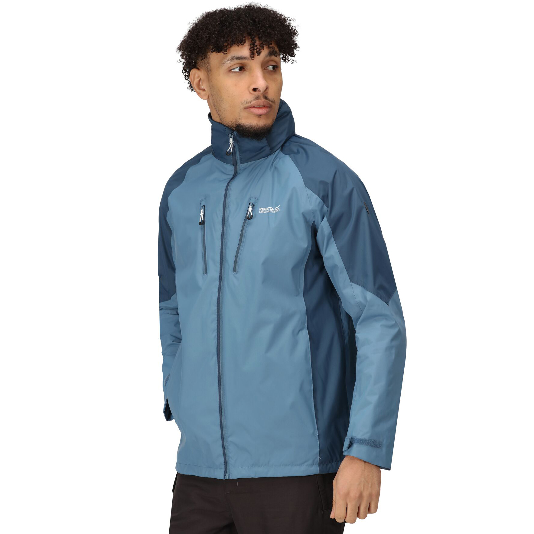 Die leichte Herrenjacke REGATTA CALDERDALE ist wasserdicht, atmungsaktiv und winddicht dank des verwendeten ISOTEX 5000-Materials. Die Jacke ist vollständig geöffnet und verfügt über eine integrierte Kapuze im Kragen. Die Kapuze hat einen Schirm, lässt sich leicht verstellen und je nach Wetterlage in den Kragen zurückrollen. Die Ärmel lassen sich per Klettverschluss verstellen, der untere Saum ist ebenfalls verstellbar. Die Jacke verfügt über zwei Haupttaschen mit Reißverschluss, zwei Brusttaschen und eine Innentasche. Die Innenseite der Jacke ist mit einem Mesh-Gewebe ausgestattet, das eine bessere Zirkulation der Körperfeuchtigkeit ermöglicht. Ein ideales leichtes Modell für anspruchslose Wanderungen oder Stadtbummel. Material ISOTEX 5000 (wasserdicht 5000 mm/cm2, Atmungsaktivität 5000 g/m2/24h), integrierte Kapuze, verstellbare Kapuze mit Schirm, Ärmel- und Saumregulierung, 2 Haupttaschen, 2 Brusttaschen, 1 Innentasche, Netzfutter.