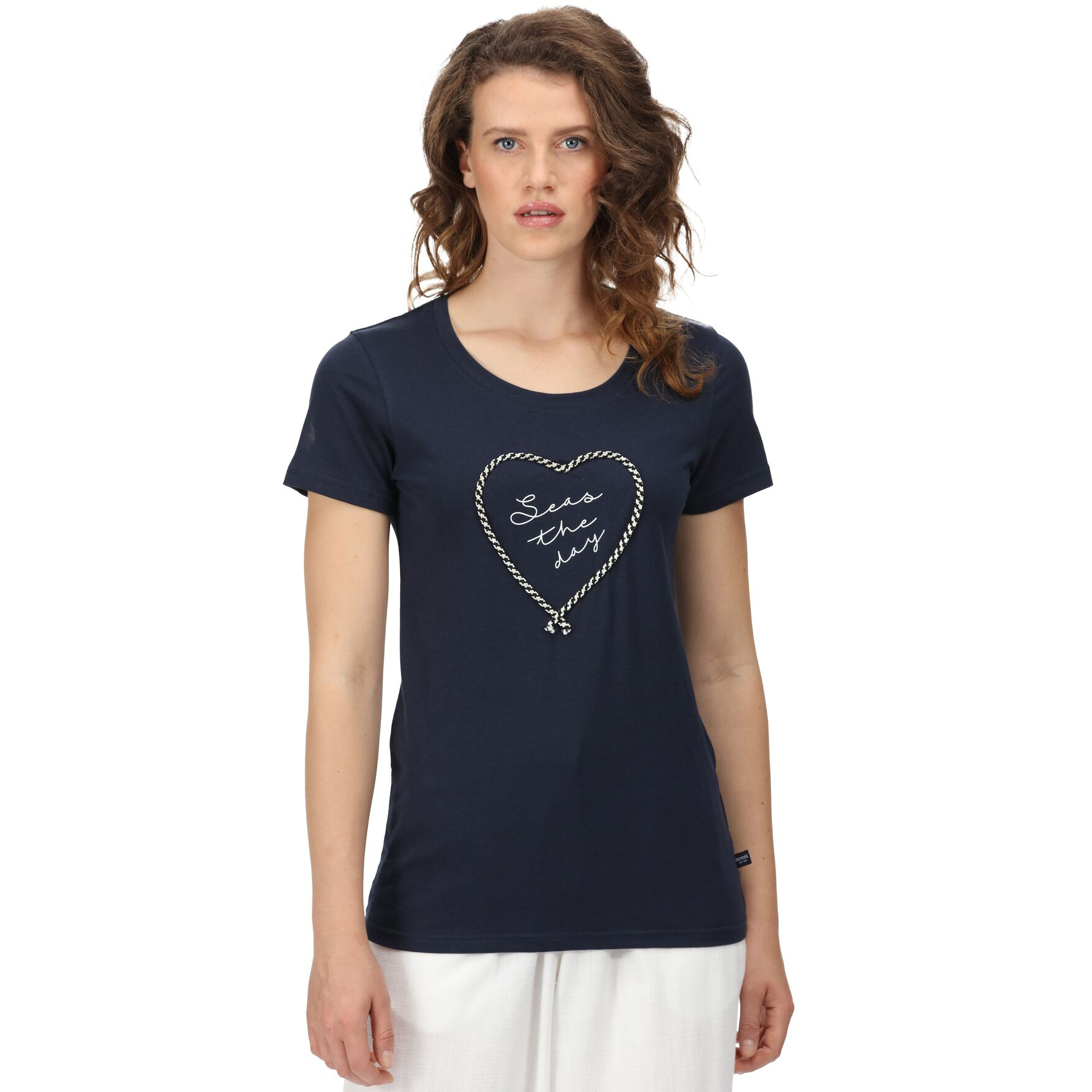 Regatta Filandra VI Damen Kurzarm-T-Shirt. Coolweave-Technologie mit kühlendem Effekt. Baumwollfasern haben einen völlig natürlichen Kühleffekt direkt auf der Haut. Druck auf der Vorderseite. Material: 100 % Baumwolle.