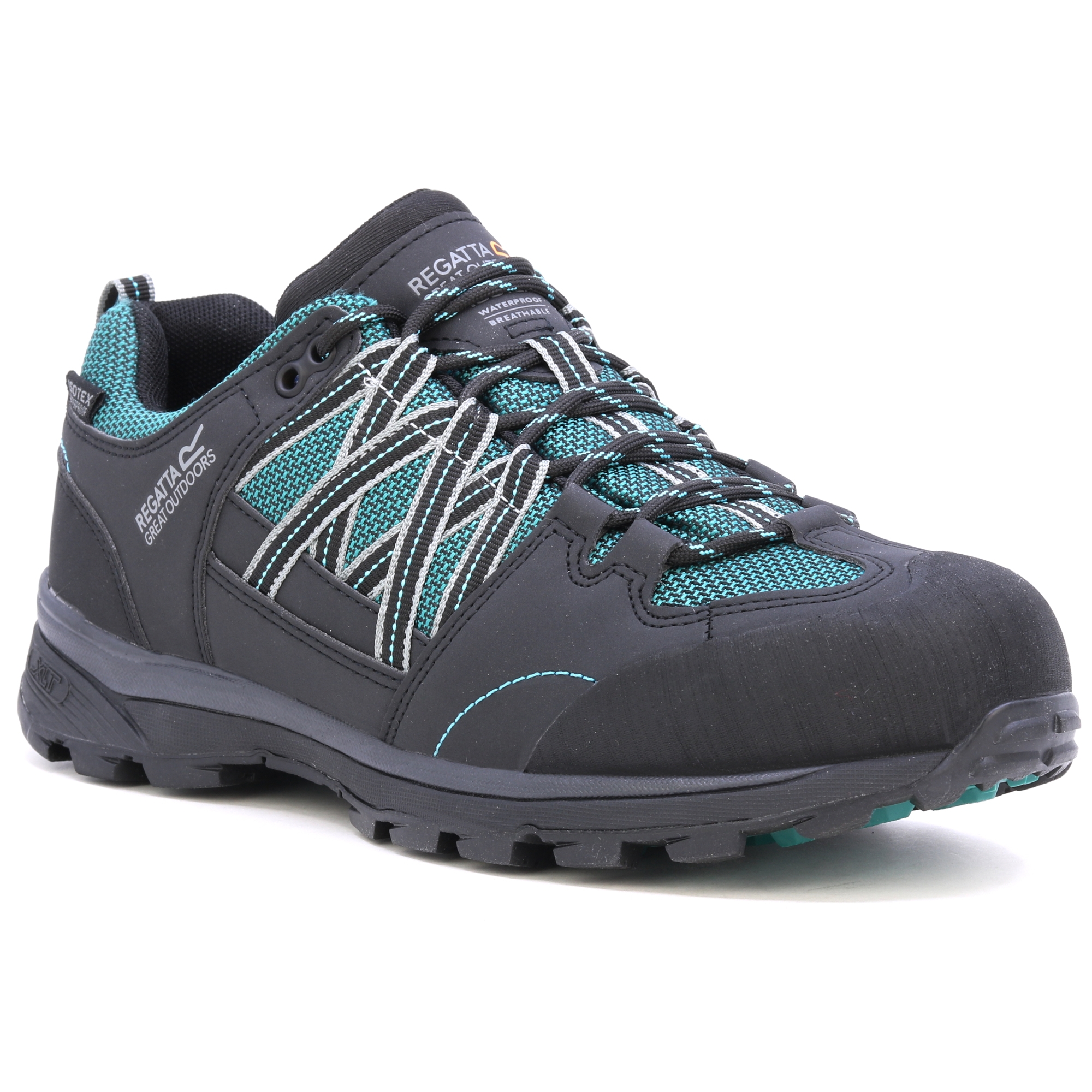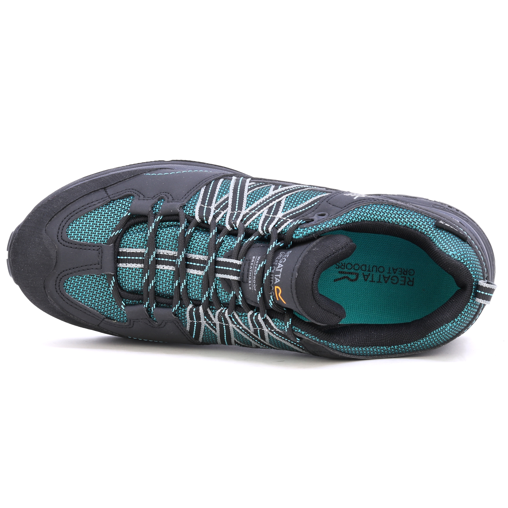 Die niedrigen Samaris-Wanderschuhe von Regatta bestehen aus einem Ausdauergitter mit zusätzlichem Platz um die Zehen herum, um natürliche Bewegungen beim Klettern und in unebenem Gelände zu ermöglichen. Die Hydropel-Technologie leitet Wasser und Schlamm effektiv ab, während die wasserdichte, atmungsaktive Isotex-Membran die Füße trocken hält. XLT-Sohle mit zuverlässiger, wetterbeständiger Leistung für dauerhaften Komfort in den Bergen. Die XLT-Sohlentechnologie spart Gewicht und bietet hervorragende Traktion und Stoßdämpfung auf und neben dem Trail.