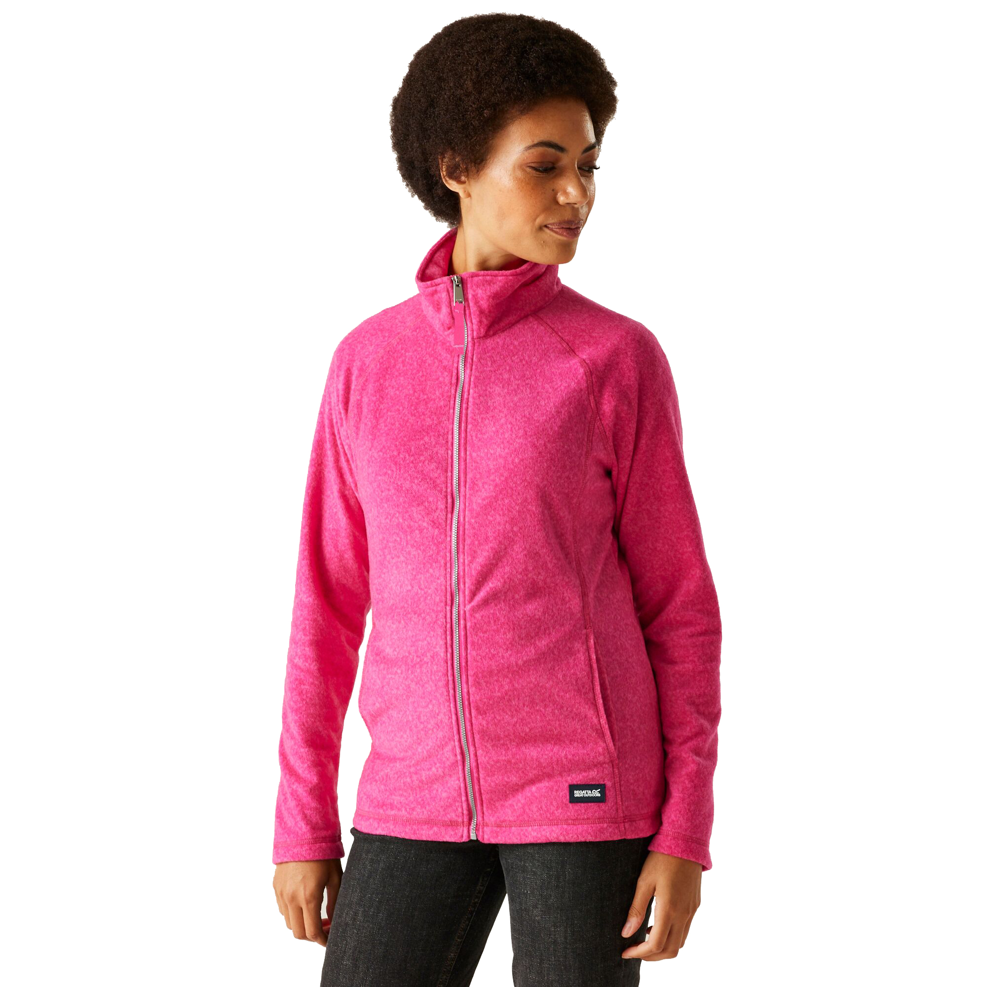 Die Damen-Outdoorjacke Regatta RWA646/H38 Mayse FullZip in Rosa ist die perfekte Wahl für Frauen, die eine bequeme, warme und vielseitige Schicht für den Alltag und aktive Outdoor-Aktivitäten suchen. Das angenehme Material sorgt für optimalen Wärmekomfort, während der durchgehende Reißverschluss eine einfache Temperaturregulierung und praktisches An- und Ausziehen ermöglicht. Dank des sportlichen Schnitts lässt sich die Jacke gut mit anderer Kleidung kombinieren und eignet sich sowohl für Wanderungen und Reisen als auch für den Einsatz in der Stadt. Das moderne Design wird durch ein dezentes Regatta-Logo abgerundet, das die Qualität und Zuverlässigkeit der Marke unterstreicht.