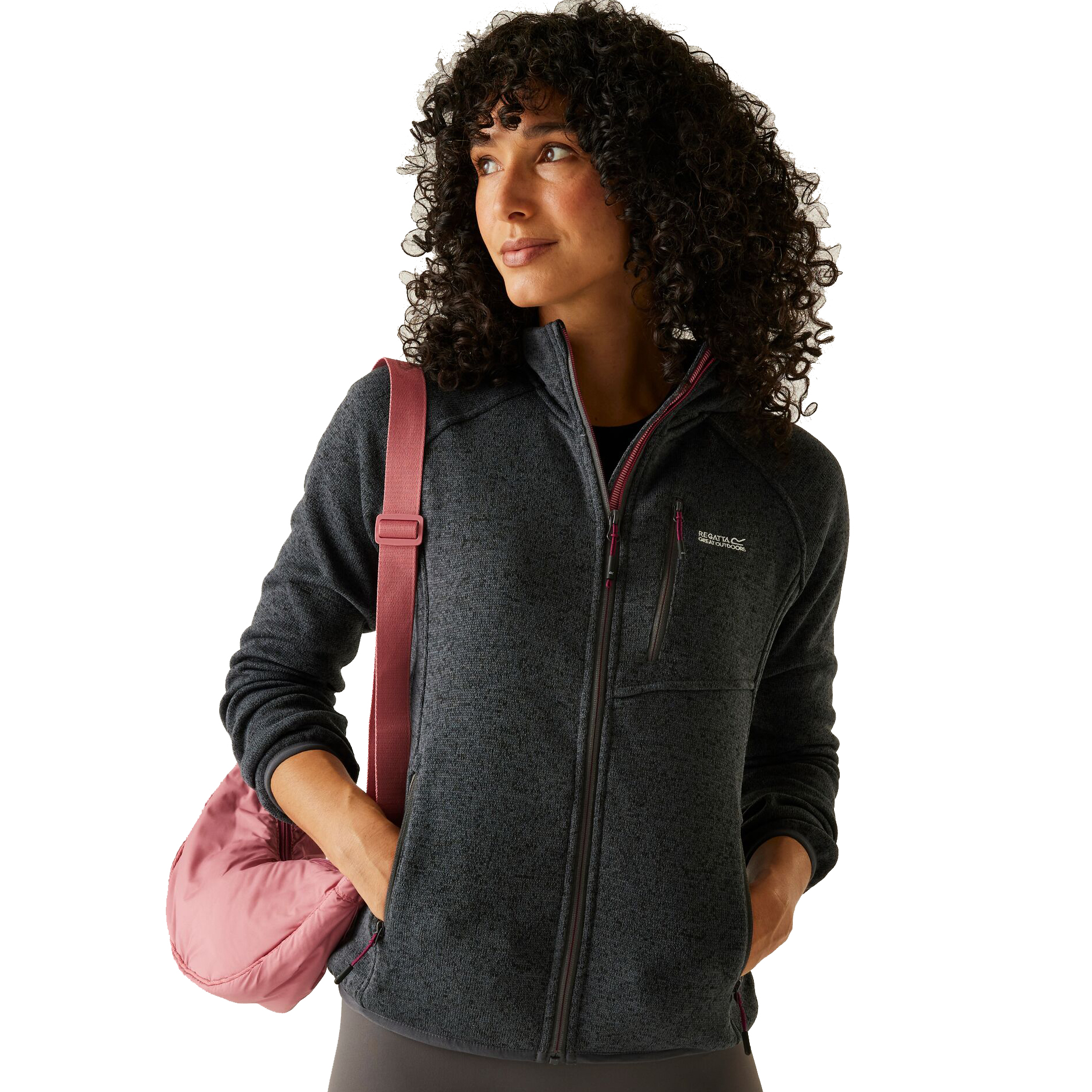 Die Regatta Newhill Damen-Fleecejacke mit Kapuze ist die perfekte Wahl für aktive Frauen, die draußen unterwegs sind und dabei nicht auf Komfort und Wärme verzichten möchten. Das melierte Strickfleece sorgt für einen modernen Look und hält angenehm warm – ideal für kühlere Tage. Der durchgehende Reißverschluss ermöglicht ein einfaches An- und Ausziehen sowie eine gute Temperaturregulierung, während die verstellbare Kapuze optimalen Schutz vor Wind und Kälte bei Wanderungen, Spaziergängen oder im Alltag bietet.