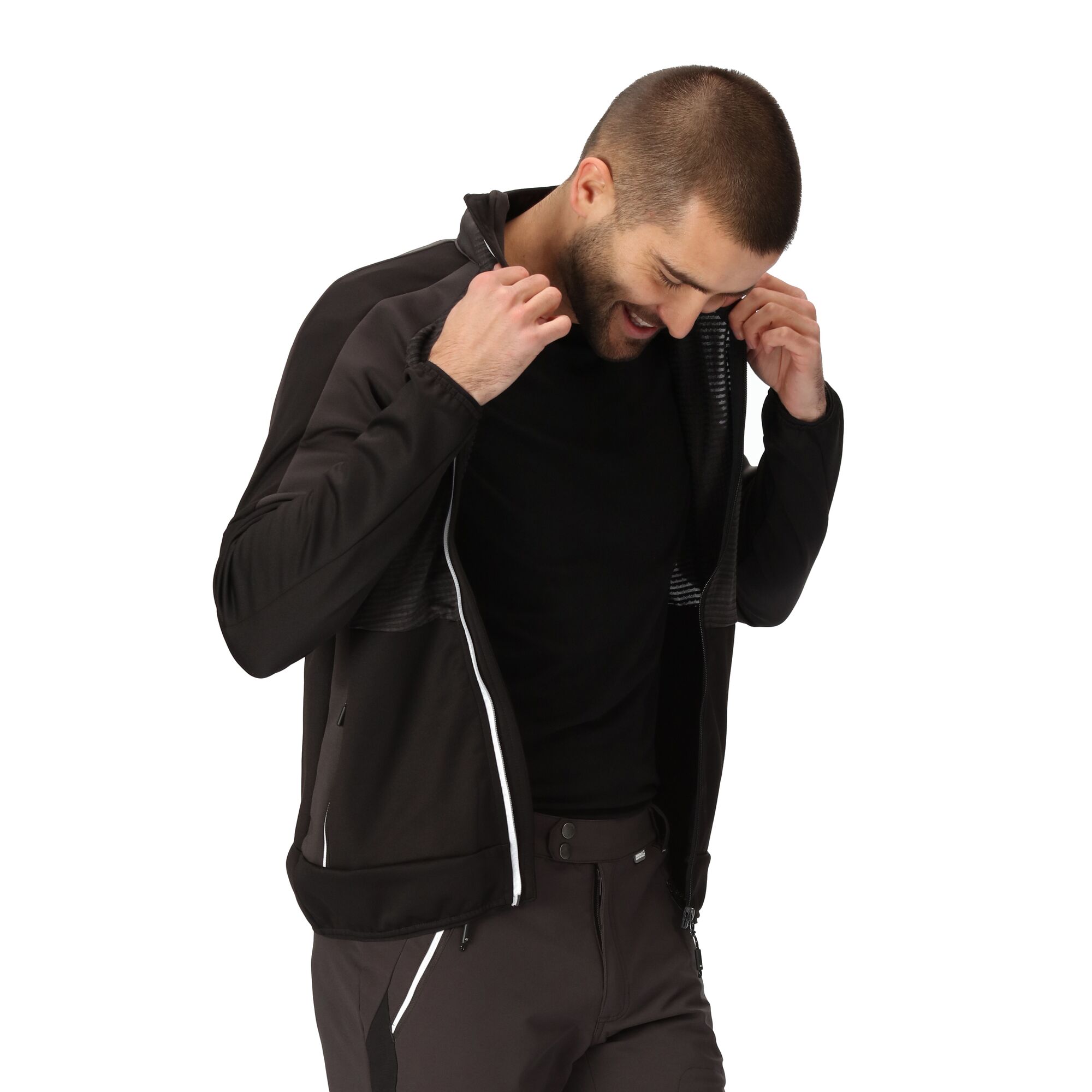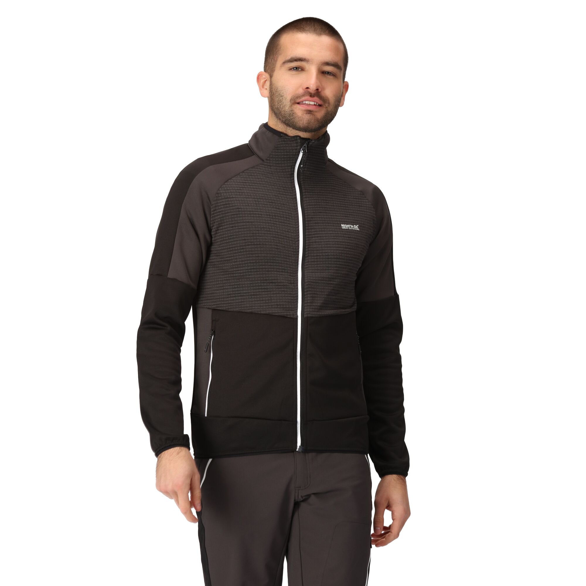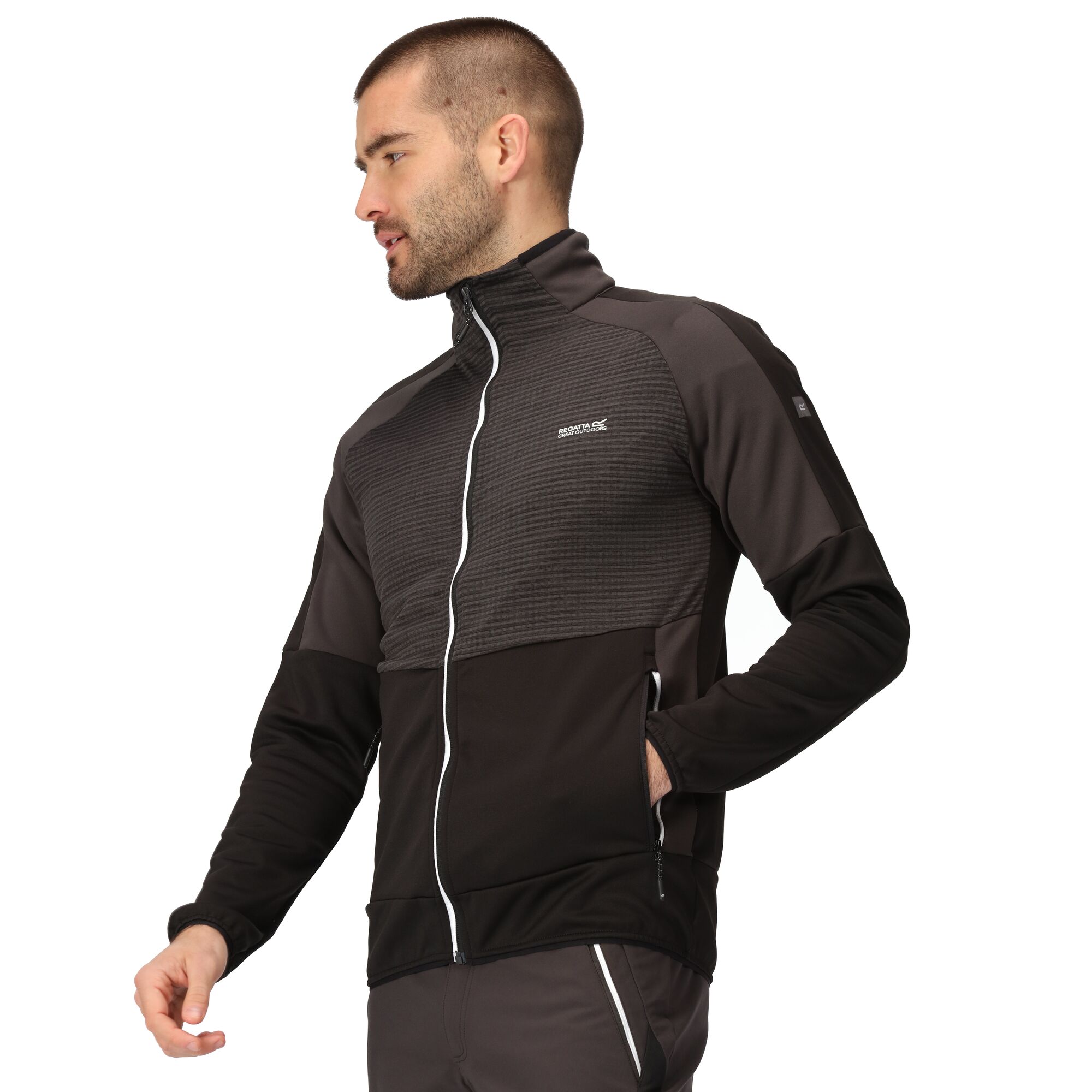 Die Herrenjacke Yare VII der Marke Regatta ist aus hochwertigem und funktionellem Extol Stretch-Gewebe gefertigt. Es ist atmungsaktiv, leicht, winddicht und schnell trocknend. Dies ist eine Softshelljacke mit zwei Haupttaschen und einer Brusttasche, alle mit Reißverschlüssen. Besonders bei kaltem Wetter werden Sie die Daumenlöcher in den Ärmeln zu schätzen wissen. Extol Stretch-Stoff – atmungsaktiv, leicht, winddicht und schnell trocknend, 2 Seitentaschen und 1 Brusttasche, Daumenlöcher in den Ärmeln, elastische Teile an Hals, Bündchen und Saum.