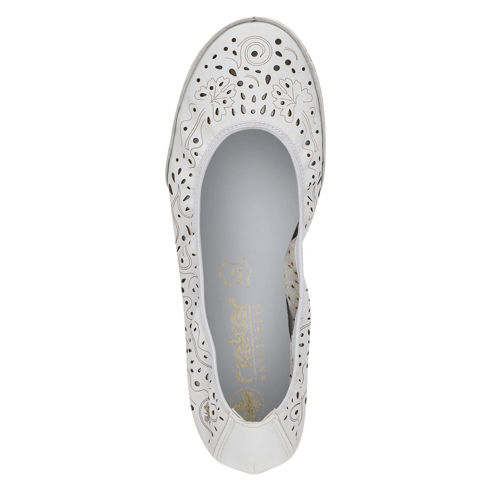 Die weißen Damen Leder-Ballerinas RIEKER 41460-80 sind die ideale Wahl für Frauen, die einen leichten, bequemen und vielseitigen Schuh für den Alltag in der Frühjahrs- und Sommersaison suchen. Das hochwertige Leder-Obermaterial passt sich optimal der Fußform an, sorgt für angenehmen Tragekomfort und verleiht dem Modell eine zeitlose, elegante Optik, die sich problemlos zu Kleidern, Röcken oder Hosen kombinieren lässt. Die leichte Konstruktion unterstützt ein angenehmes Tragegefühl über viele Stunden hinweg, während die weiche Innensohle den Komfort erhöht und die Fußermüdung reduziert. Die flexible Laufsohle ermöglicht ein natürliches Abrollen und verbessert die Stabilität beim Gehen. Dieses Modell vereint feminine Eleganz, hochwertige Verarbeitung und den bewährten Komfort von RIEKER.