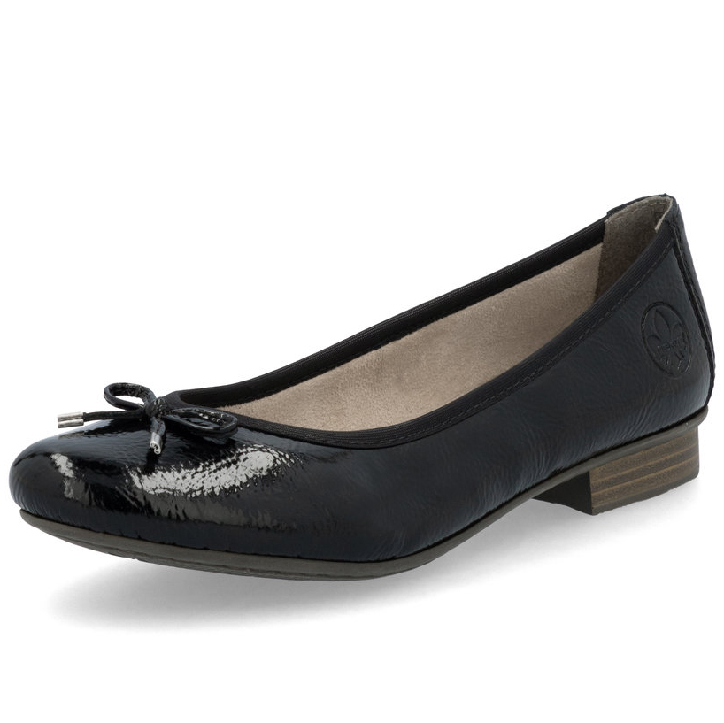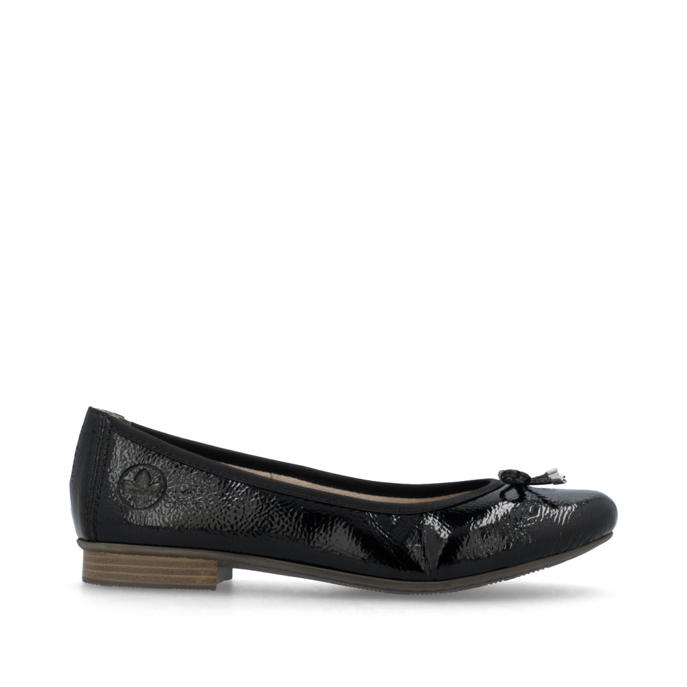 Möchten Sie Schuhe, in denen Sie laufen wie auf Wolken und die gleichzeitig ein auffälliges Element Ihres Looks sind? Dann haben Sie genau die richtigen gefunden. Glänzende Ballerinas mit niedrigem Absatz, verziert mit einer Schleife auf dem Rist und dem eingravierten Markenlogo an der Ferse. Sie haben eine glatte Oberfläche, eine runde Spitze, einen Rand entlang des oberen Schuhbereichs und eine Naht im Fersenbereich. Die weiche Lederinnensohle sorgt für Komfort bei jedem Schritt. Elegante Ballerinas passen perfekt zu Röcken, Hosen und Jeans.
