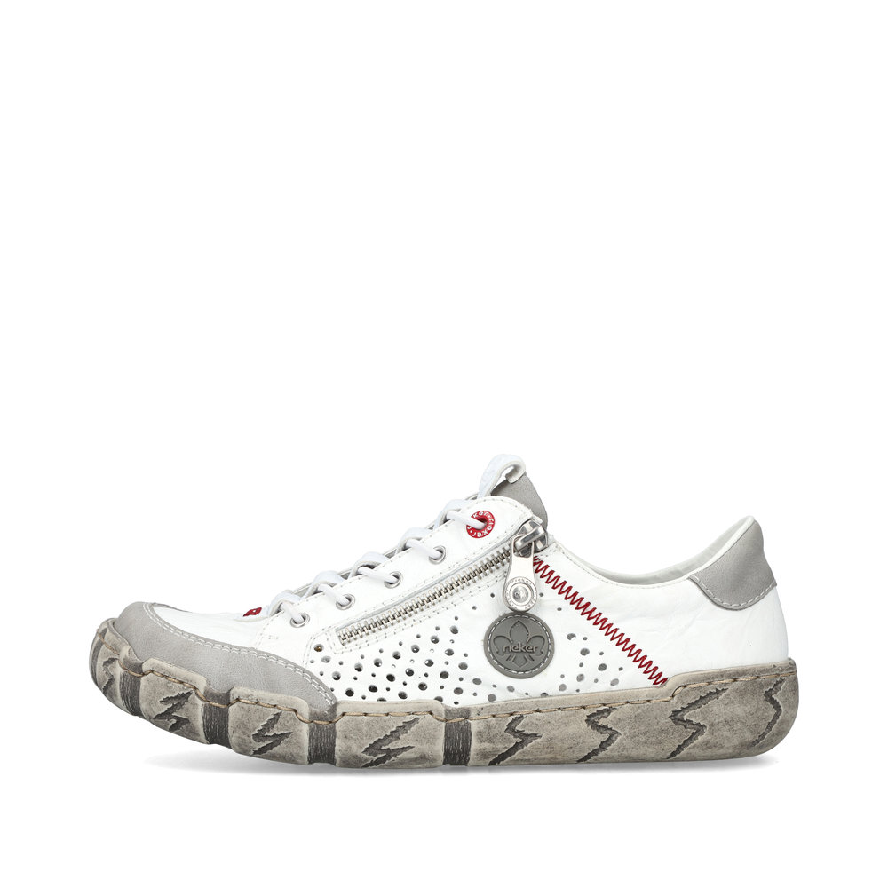 Komfortabler geht es nicht! Diese Rieker-Schuhe werden Sie gar nicht mehr ausziehen wollen. Dank der praktischen Kombination aus elastischer Schnürung und Reißverschluss lassen sie sich schnell und mühelos anziehen. Die leichte, flexible Sohle mit Antistress-Technologie dämpft Stöße hervorragend und passt sich den natürlichen Bewegungen des Fußes an, während die Leder-Innensohle für langanhaltenden Tragekomfort sorgt. Ob für lange Spaziergänge oder den Alltag – dieses Modell ist die perfekte Wahl für stilbewusste Frauen, die keine Kompromisse beim Komfort eingehen möchten.