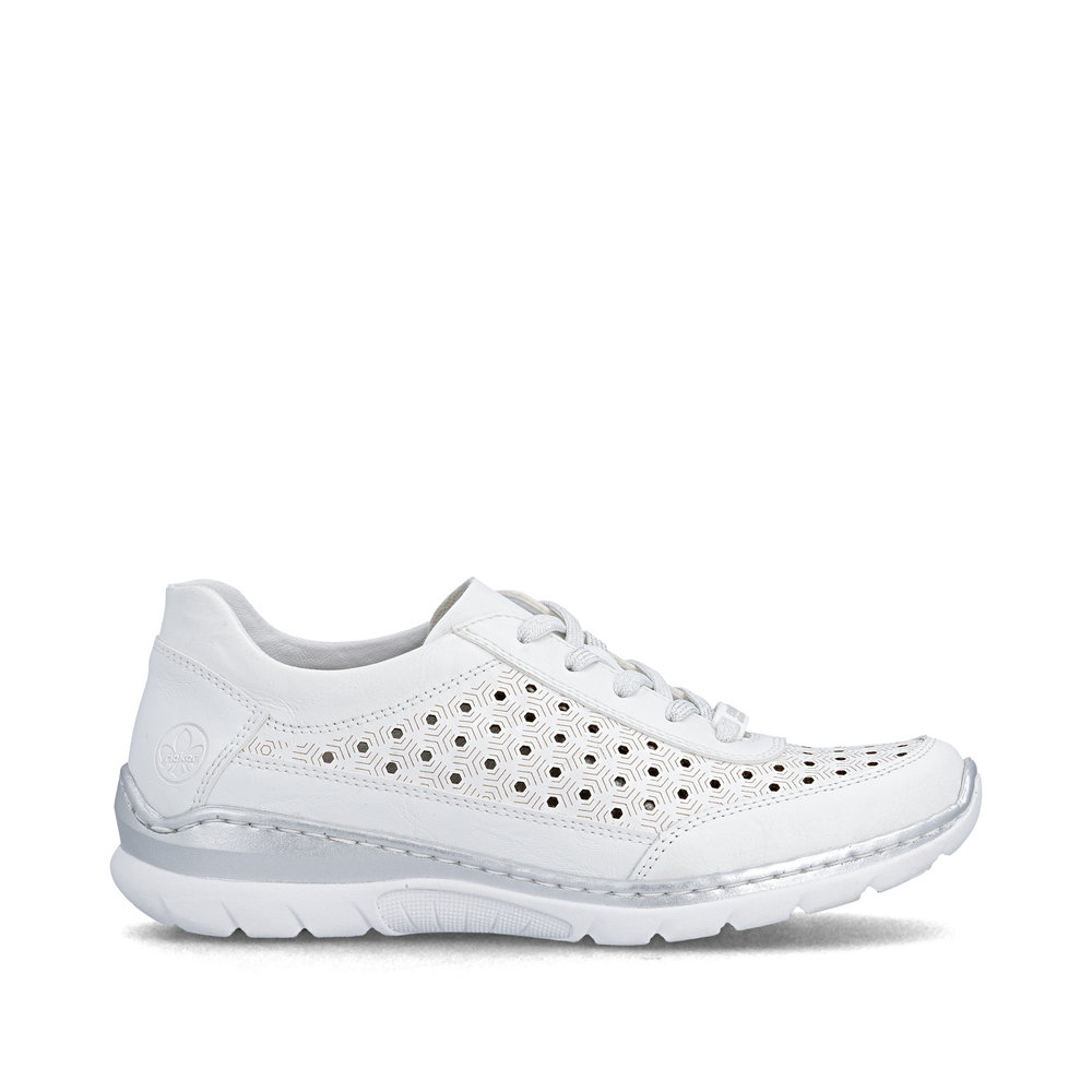 RIEKER L3217-80 weiße Damen-Ledersneaker, atmungsaktiv, Antistress-Sohle