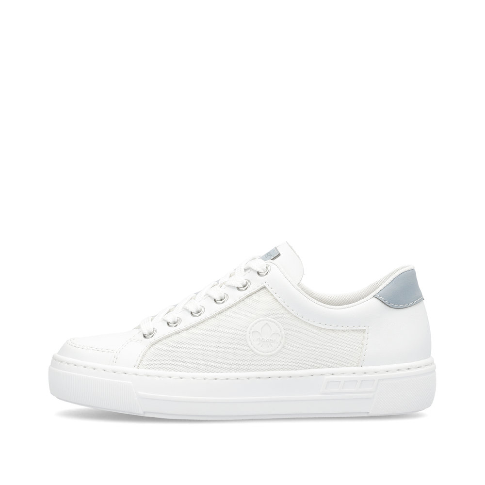 Diese weißen Damen-Sneaker vereinen schlichtes Design mit maximalem Komfort für den Alltag. Ein stilvolles Zierelement an der Ferse und ein blaues Markenlogo auf dem Spann verleihen dem Schuh eine besondere Note. Dank der Schnürung lässt sich der Schuh individuell anpassen, sodass er perfekt am Fuß sitzt. Das weiche Innenfutter und die hochwertige Lederdecksohle sorgen den ganzen Tag über für ein angenehmes Tragegefühl, ohne dass die Füße ermüden. Ob für einen Kinobesuch, eine Party oder einen entspannten Spaziergang – dieses Modell passt zu jeder Gelegenheit. Die leichte und flexible Konstruktion ermöglicht eine natürliche Bewegung und absorbiert effektiv Stöße beim Gehen.