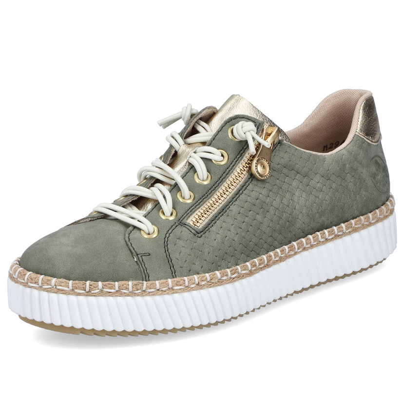 Stylische und bequeme grüne Damensneaker RIEKER M2940-52 sind die perfekte Wahl für den Alltag. Die leichte Konstruktion, die flexible Sohle und die weiche Innensohle sorgen für maximalen Komfort, auch bei ganztägiger Bewegung. Das elegante, minimalistische Design ermöglicht eine einfache Kombination mit verschiedenen Outfits, von leger bis sportlich. Die Sneaker sind aus robusten und pflegeleichten Materialien gefertigt, während die rutschfeste Sohle Sicherheit auf verschiedenen Oberflächen bietet. Der ideale Begleiter für Spaziergänge, Einkäufe oder Reisen – mit dem Modell RIEKER M2940-52 sehen Sie stilvoll aus und fühlen sich den ganzen Tag über bequem.