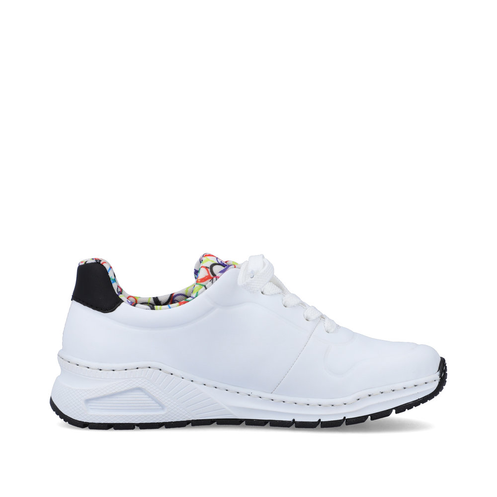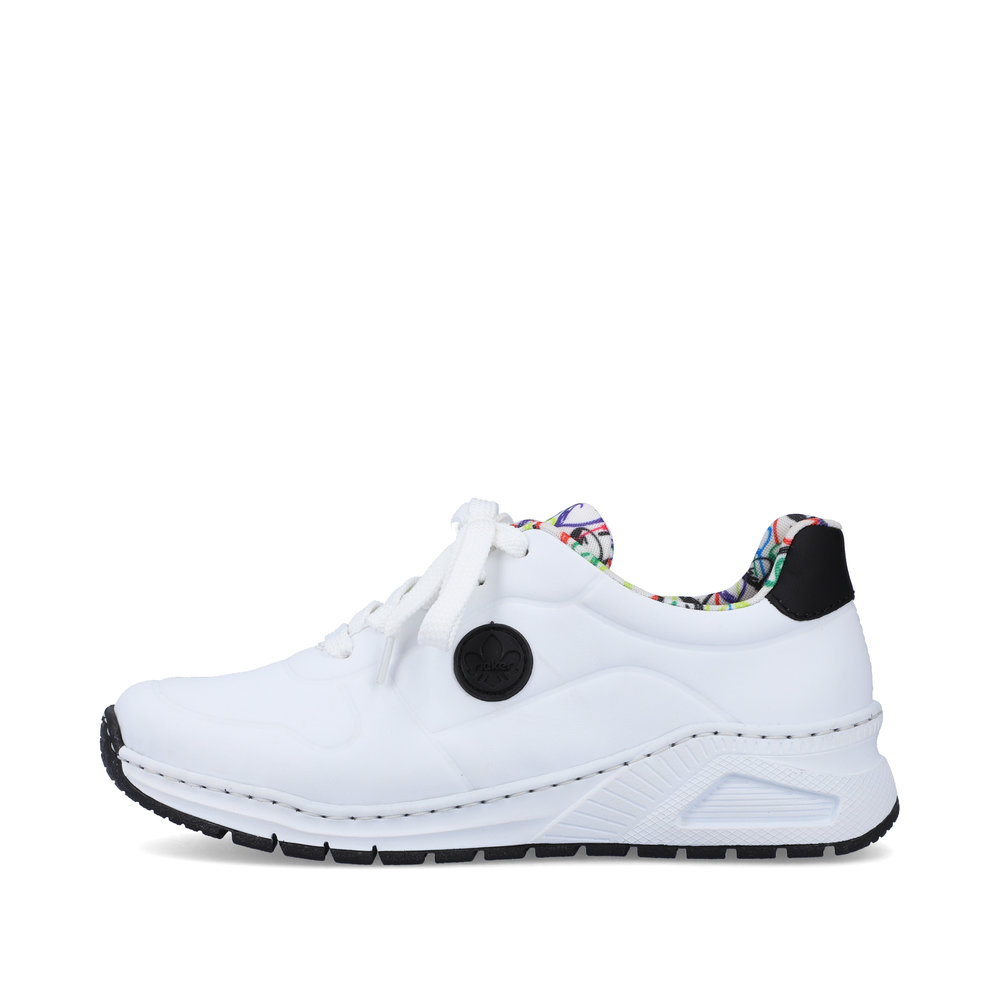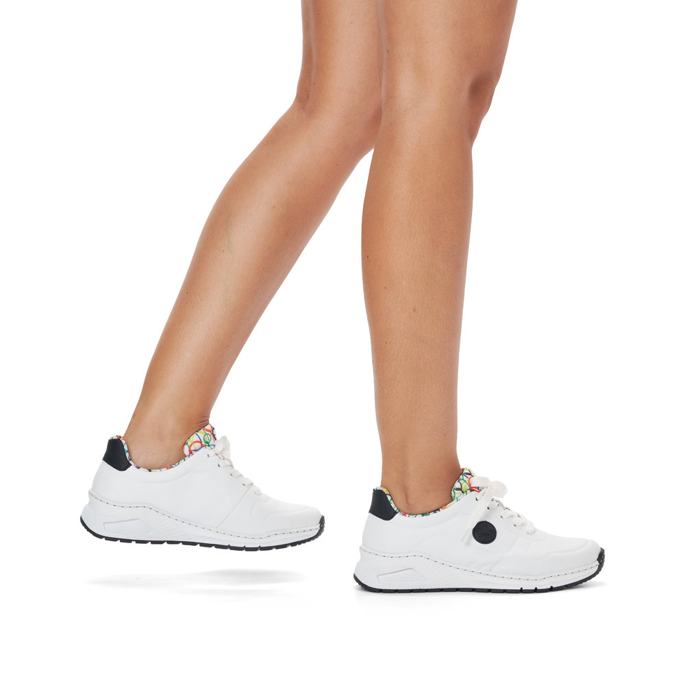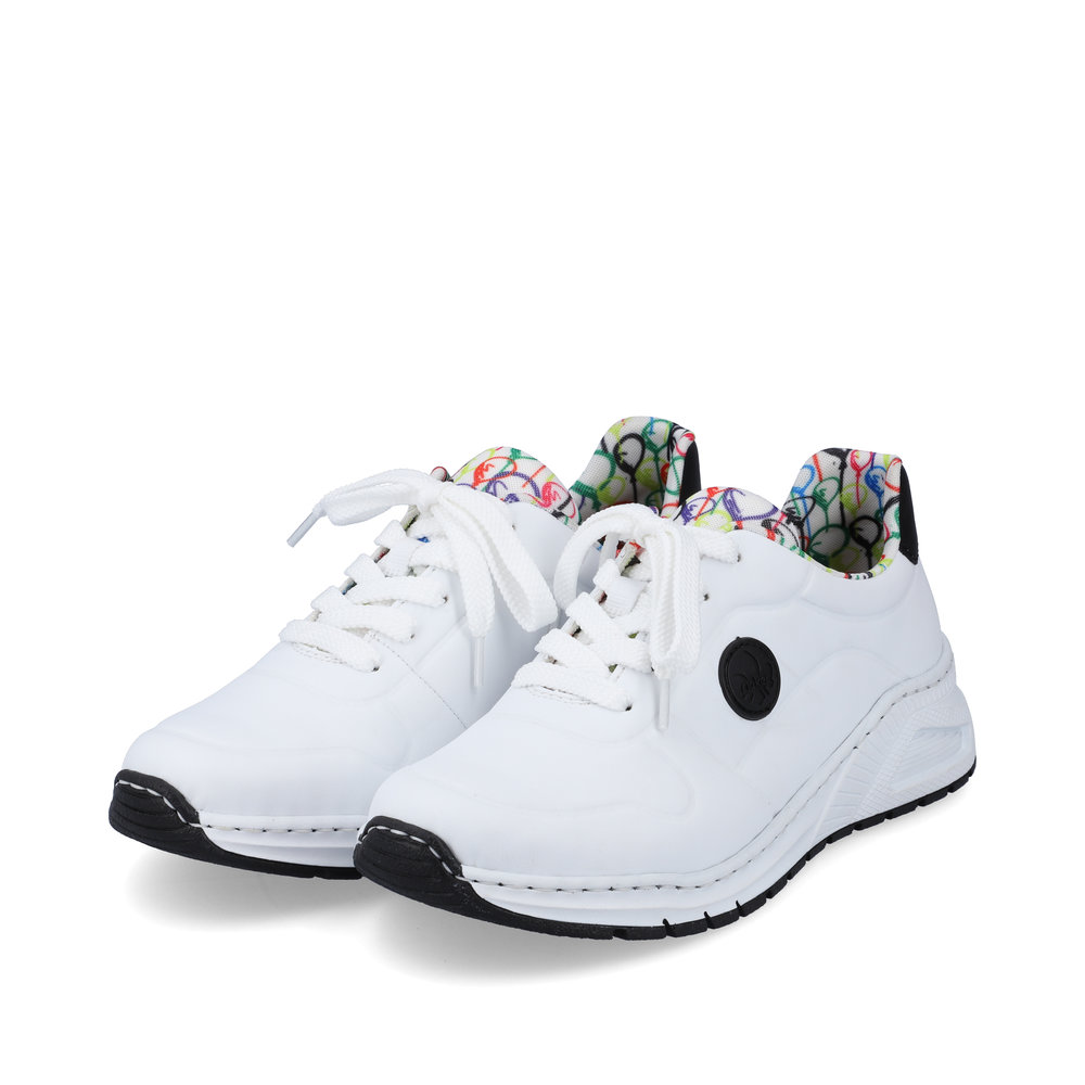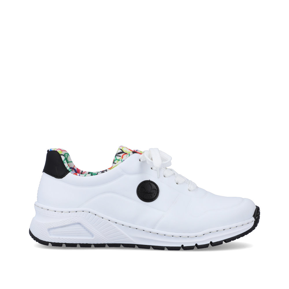 Diese einzigartigen Rieker-Sneaker verleihen Ihrem Outfit Frische und eine verspielte Note. Das weiße Obermaterial wird durch das schwarze Rieker-Logo an der Seite, ein schwarzes Detail an der Ferse und das luftige Ballonmuster auf dem Textilfutter und der Zunge zu einem echten Hingucker – inspiriert vom Jahrmarkt-Flair. Passend dazu finden Sie in unserem Sortiment auch einen schwarzen Rucksack mit Ballon-Design. Die klassische Schnürung sorgt für eine optimale Passform, während die herausnehmbare Memory-Foam-Einlegesohle und die Antistress-Sohle maximalen Komfort bieten. Ob beim Stadtbummel, im Kino oder bei einem Kaffee mit Freunden – mit diesen Sneakern setzen Sie modische Akzente