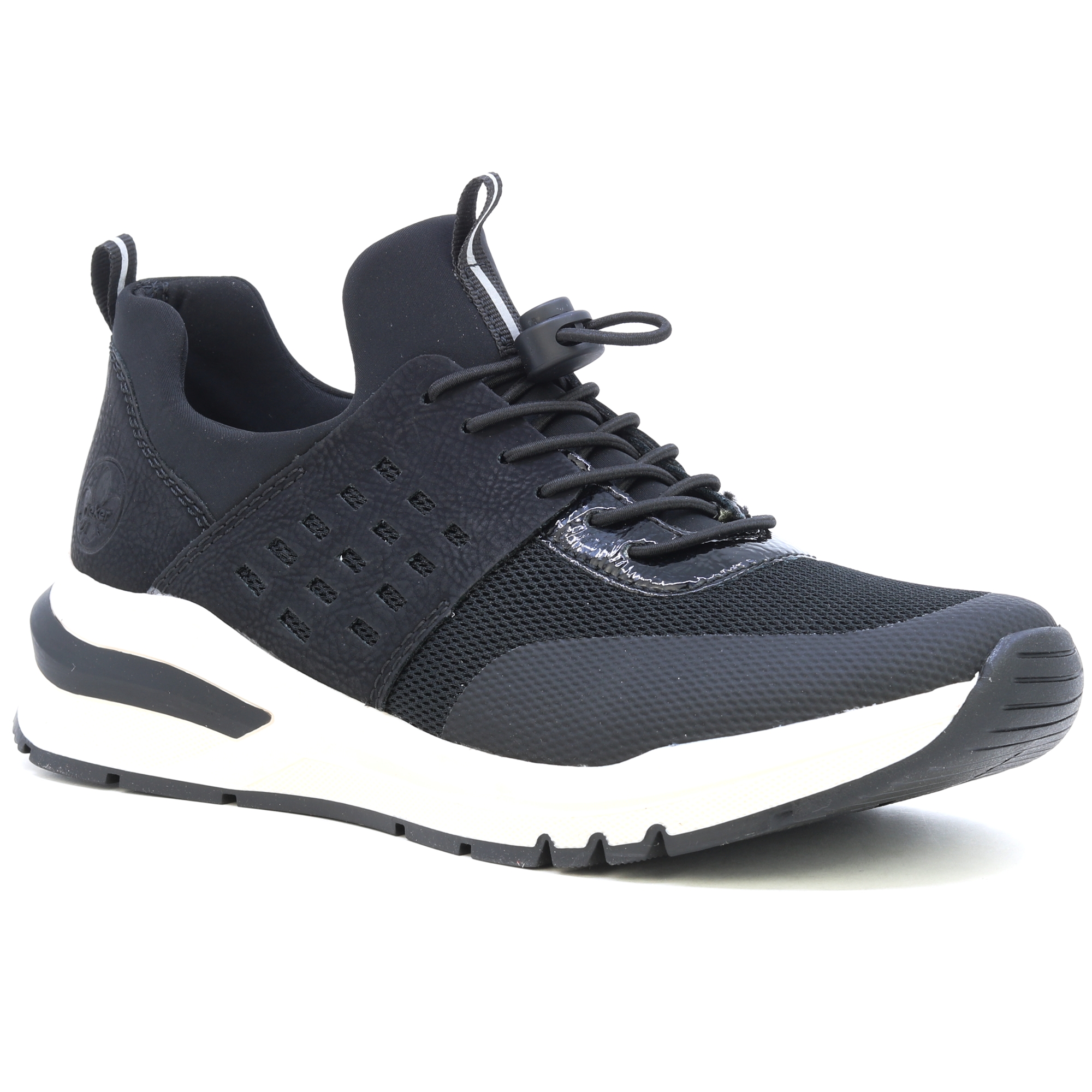 Die schwarzen Damen-Sneaker RIEKER M6651-00 stellen eine perfekte Kombination aus Eleganz und Komfort dar, die Sie im Alltag zu schätzen wissen. Die leichte Konstruktion und die flexible Sohle sorgen für Komfort auch bei längeren Bewegungen, während das moderne Design mit dezenten Details problemlos Ihr urbanes oder lässiges Outfit ergänzt. Hochwertige Materialien sorgen für Langlebigkeit und einfache Pflege, die weiche Innensohle für maximalen Komfort und die rutschfeste Sohle für Sicherheit auf verschiedenen Untergründen. Diese Sneaker sind eine tolle Wahl für alle Gelegenheiten, bei denen Sie einen stilvollen Look mit praktischem Komfort kombinieren möchten.