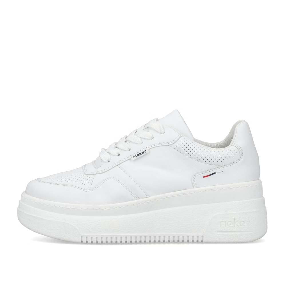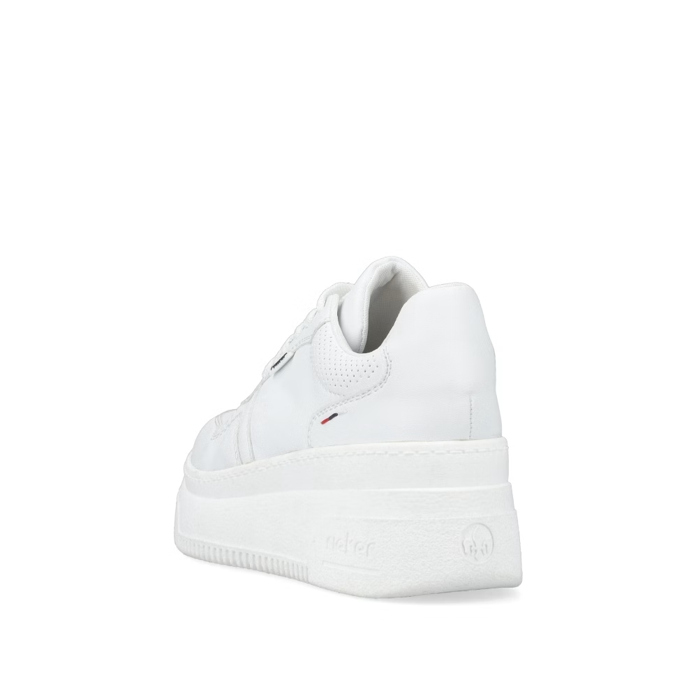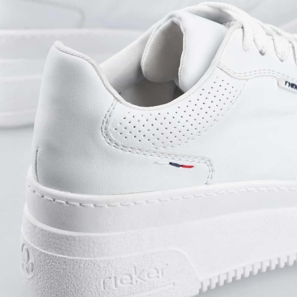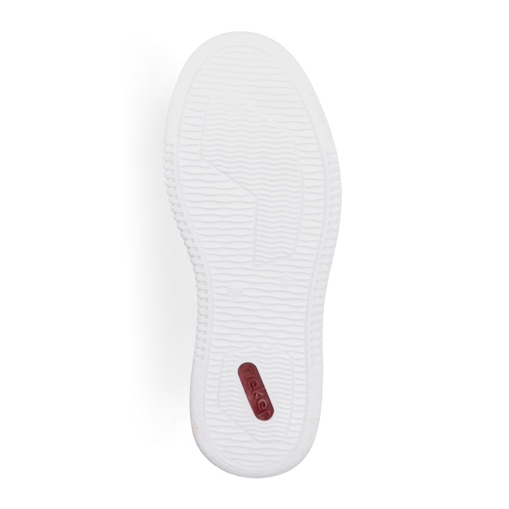 Die Damen-Sneaker RIEKER M7811-80 in elegantem Weiß sind eine ideale Wahl für Frauen, die modernen Stil mit Komfort verbinden möchten. Diese Sneaker zeichnen sich durch ihr minimalistisches Design mit feinen Details aus, die den Schuhen eine besondere Note verleihen und sich leicht mit verschiedenen Outfits kombinieren lassen, egal ob sportlich oder lässig. Das Obermaterial besteht aus hochwertigem Synthetikmaterial, das pflegeleicht ist und für Leichtigkeit beim Tragen sorgt. Die Sohle ist flexibel und stoßdämpfend, was für ein angenehmes Laufgefühl und bei längerem Tragen sorgt. Die Sneakers RIEKER M7811-80 bieten stilvollen Komfort für den täglichen Gebrauch.