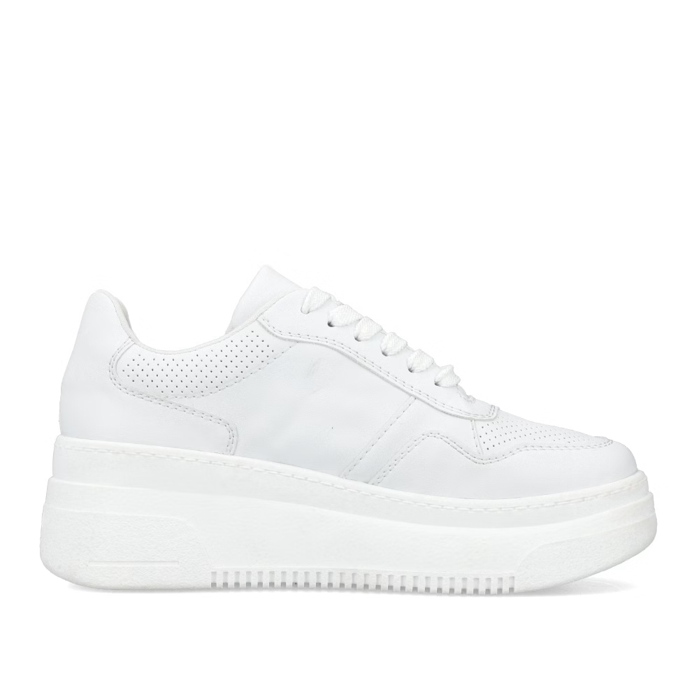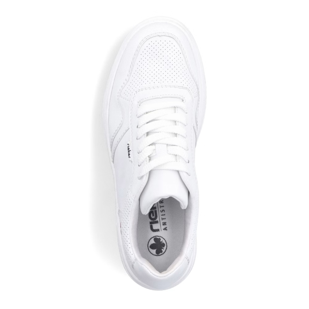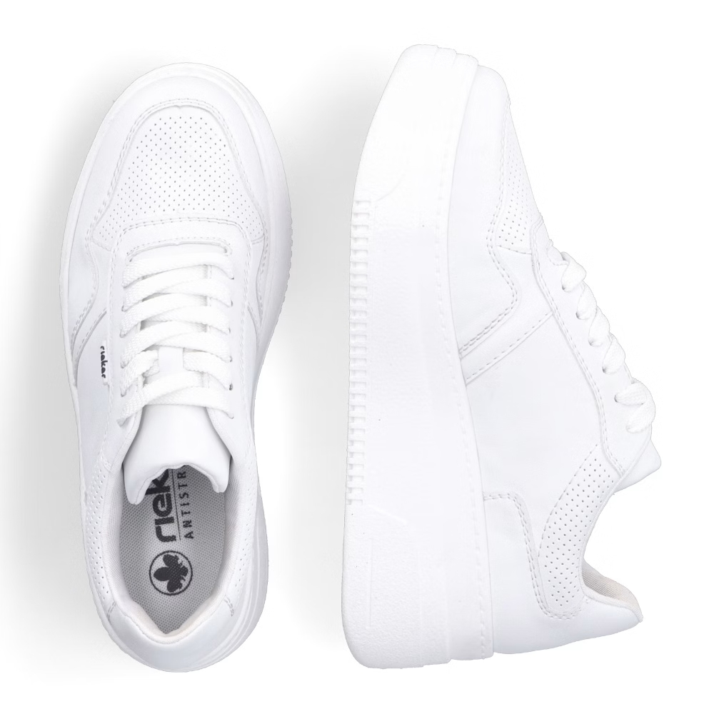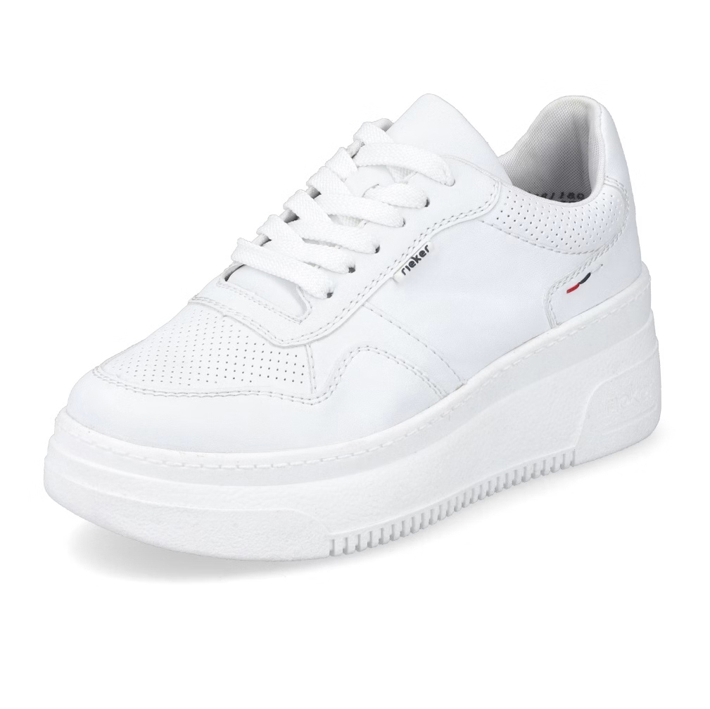 Die Damen-Sneaker RIEKER M7811-80 in elegantem Weiß sind eine ideale Wahl für Frauen, die modernen Stil mit Komfort verbinden möchten. Diese Sneaker zeichnen sich durch ihr minimalistisches Design mit feinen Details aus, die den Schuhen eine besondere Note verleihen und sich leicht mit verschiedenen Outfits kombinieren lassen, egal ob sportlich oder lässig. Das Obermaterial besteht aus hochwertigem Synthetikmaterial, das pflegeleicht ist und für Leichtigkeit beim Tragen sorgt. Die Sohle ist flexibel und stoßdämpfend, was für ein angenehmes Laufgefühl und bei längerem Tragen sorgt. Die Sneakers RIEKER M7811-80 bieten stilvollen Komfort für den täglichen Gebrauch.