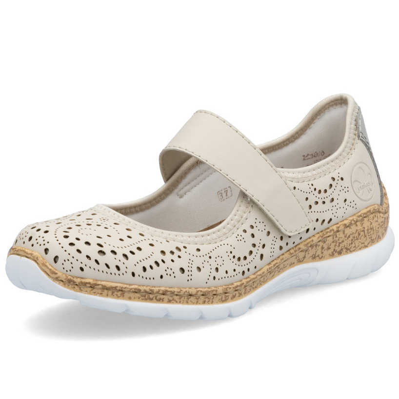 Gönnen Sie Ihren Füßen maximalen Komfort in diesen stilvollen RIEKER Ballerinas, die Eleganz mit Funktionalität verbinden. Das beige Obermaterial mit dezenter Perforation sorgt nicht nur für eine edle Optik, sondern auch für optimale Atmungsaktivität. Der praktische Klettverschluss über dem Spann ermöglicht ein einfaches Anziehen und eine individuelle Anpassung. Die weiche, herausnehmbare Innensohle garantiert ganztägigen Komfort, während die flexible, erhöhte Sohle Stöße effektiv dämpft und zusätzliche Stabilität bietet. Dieses Modell ist die perfekte Wahl für Frauen, die auf der Suche nach stilvollem, bequemem und praktischem Schuhwerk für den Alltag sind.