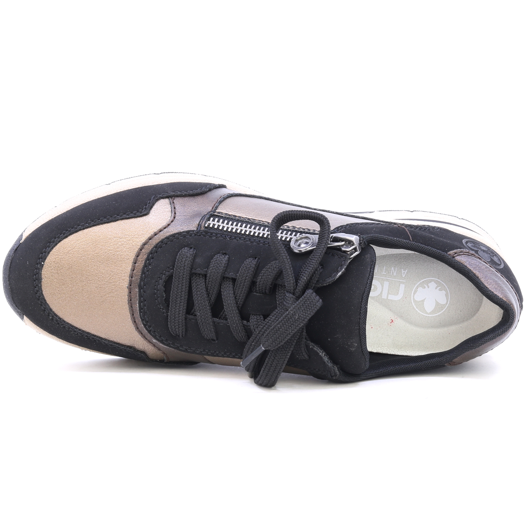 Das Design der Marke RIEKER zeichnet sich durch eine originelle Farb- und Materialkombination aus, die den Schuhen ein einzigartiges Aussehen verleiht. Das Fell am Spann verleiht den Schuhen ein einzigartiges Flair und ist ein interessantes Detail für Ihr Outfit. Die weiche, herausnehmbare Innensohle sorgt für ganztägigen Komfort und Halt, während die stilvolle Sohle nicht nur den modischen Eindruck verstärkt, sondern auch Stöße wirksam absorbiert, was den Gehkomfort verbessert und die Füße schützt. Die Kombination aus Schnürung und Reißverschluss ermöglicht ein einfaches Anziehen und Anpassen an Ihre Bedürfnisse. Aufgrund ihres Komforts und Stils sind diese Schuhe eine gute Wahl für den Alltag.