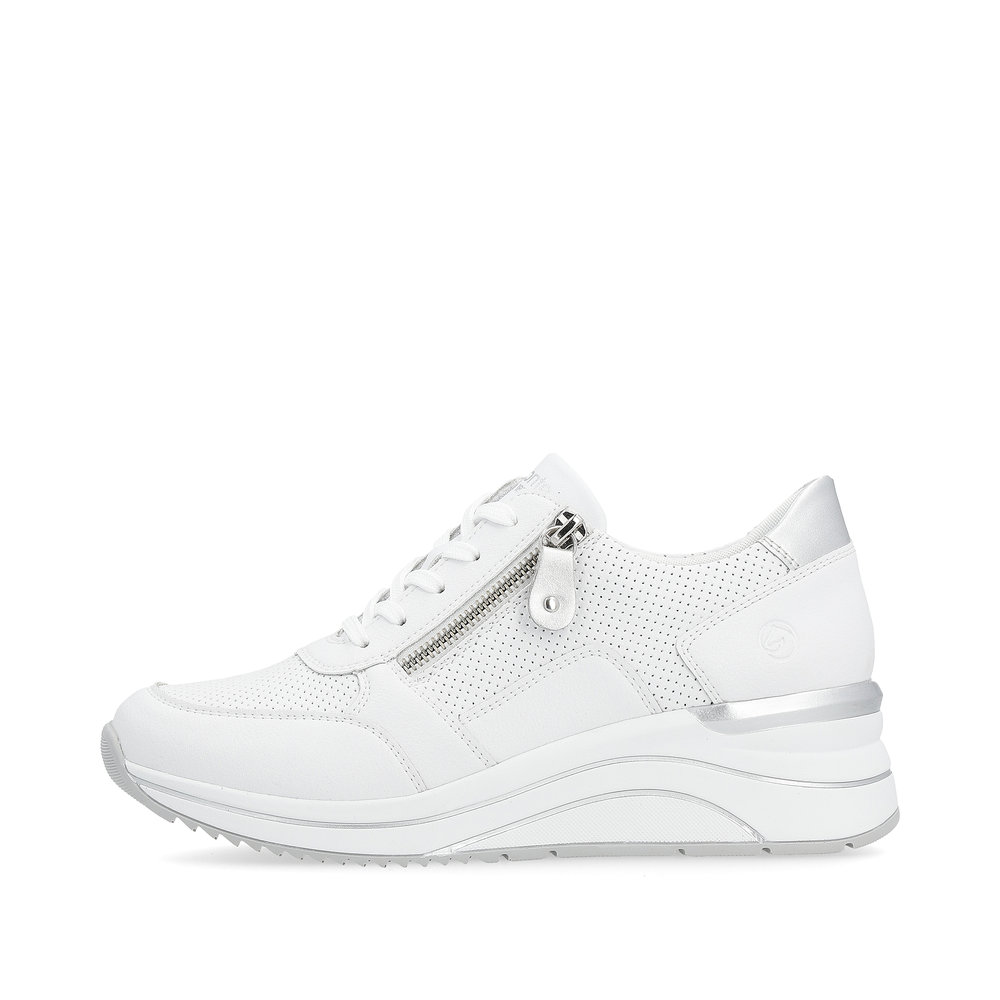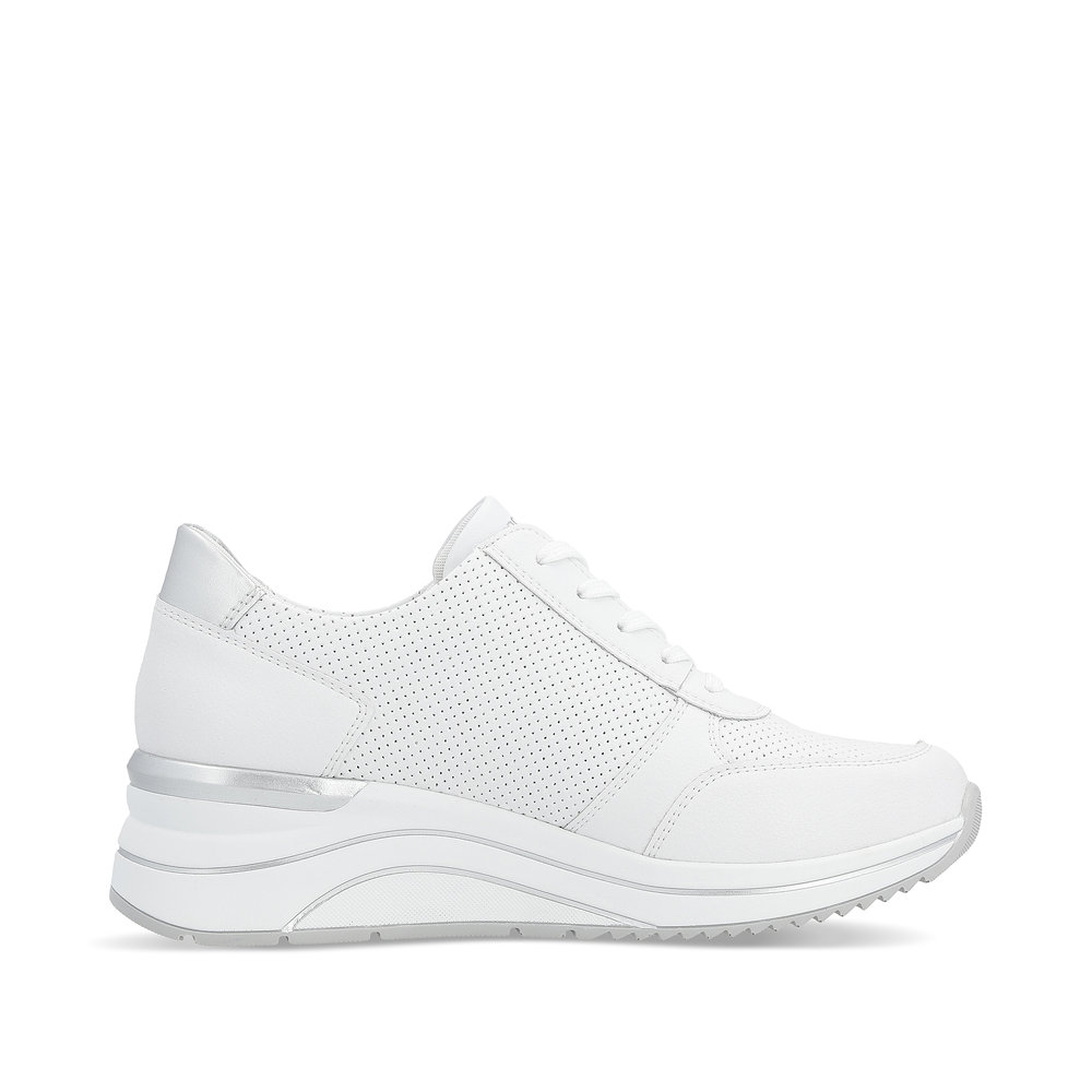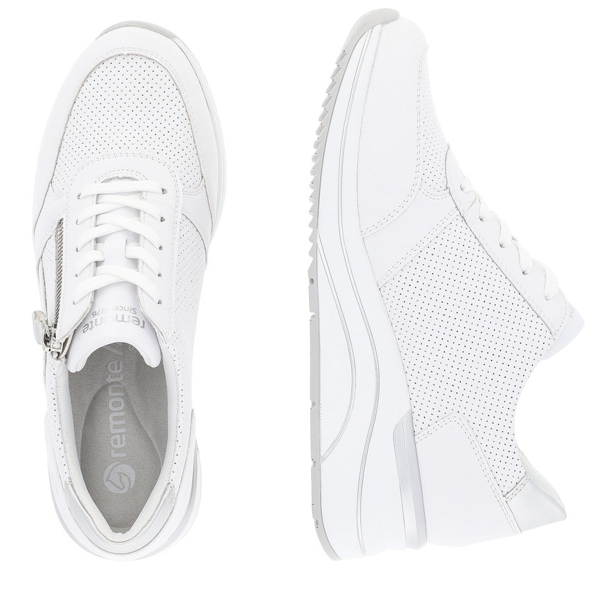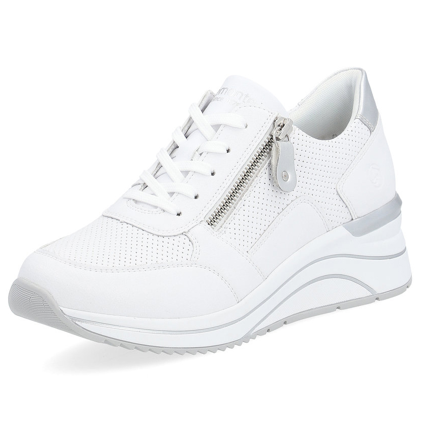 Das REMONTE-Schuhwerk ist die hochwertigere Linie der Marke RIEKER, die sich durch die hohe Qualität der verwendeten Materialien auszeichnet. Diese einzigartigen RIEKER-Sneakers verleihen jeder Frau durch ihr zeitloses Design und die hervorragend verarbeitete Sohle einen femininen Charme. Der Reißverschluss am Spann und die Schnürung ermöglichen ein einfaches Anziehen und eine individuelle Anpassung der Schuhe an Ihre Bedürfnisse. Dank der weichen, herausnehmbaren Einlegesohle und der höheren Sohle werden Sie sich den ganzen Tag über wie auf Wolken fühlen. Dieses Modell eignet sich perfekt für den Weg zur Arbeit oder für einen Stadtspaziergang, und der breitere Schnitt sorgt dafür, dass Ihre Füße ausreichend Platz haben.