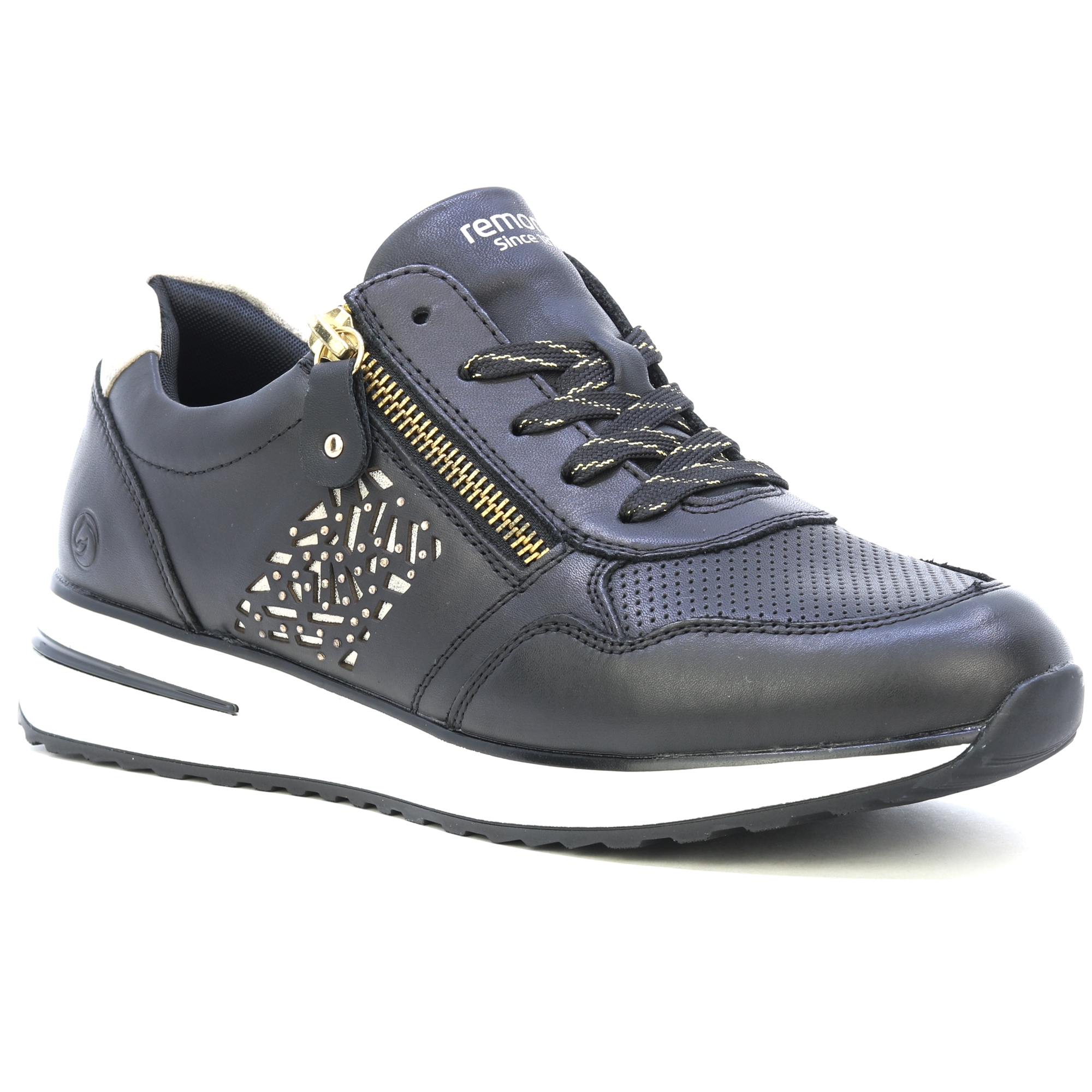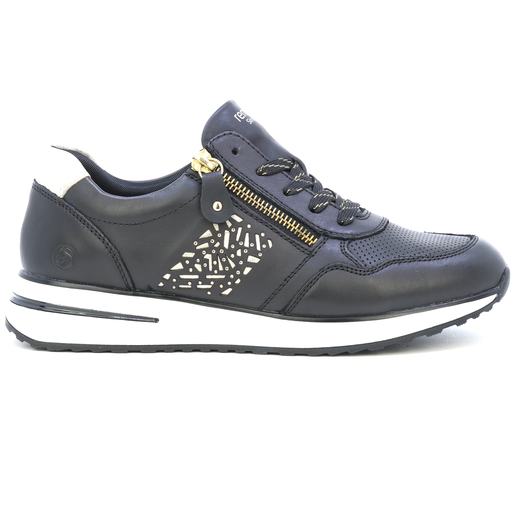 REMONTE-Schuhe - Dies ist eine höhere Linie der Marke RIEKER. Dieser Schuh zeichnet sich durch eine hervorragende Kombination von Obermaterialien aus. Diese schwarzen RIEKER-Schuhe sind ein toller Vertreter modischer Eleganz und Komfort. Mit einem eindrucksvollen Element im Seitenteil und einer dezenten Perforation im Vorderteil entsteht ein einzigartiges Designelement. Die Kombination aus Schnürung und Reißverschluss erleichtert das Anziehen und die Anpassung an den Fuß. Die weiche Innensohle, die herausnehmbar ist, sorgt für Komfort und passt sich der Fußform an. Dadurch können Sie die Schuhe individuell an Ihre Bedürfnisse anpassen. Diese unverwechselbaren Schuhe von RIEKER sind die ideale Wahl für Frauen, die eine Kombination aus unverwechselbarem Design und Komfort suchen. Technologie: