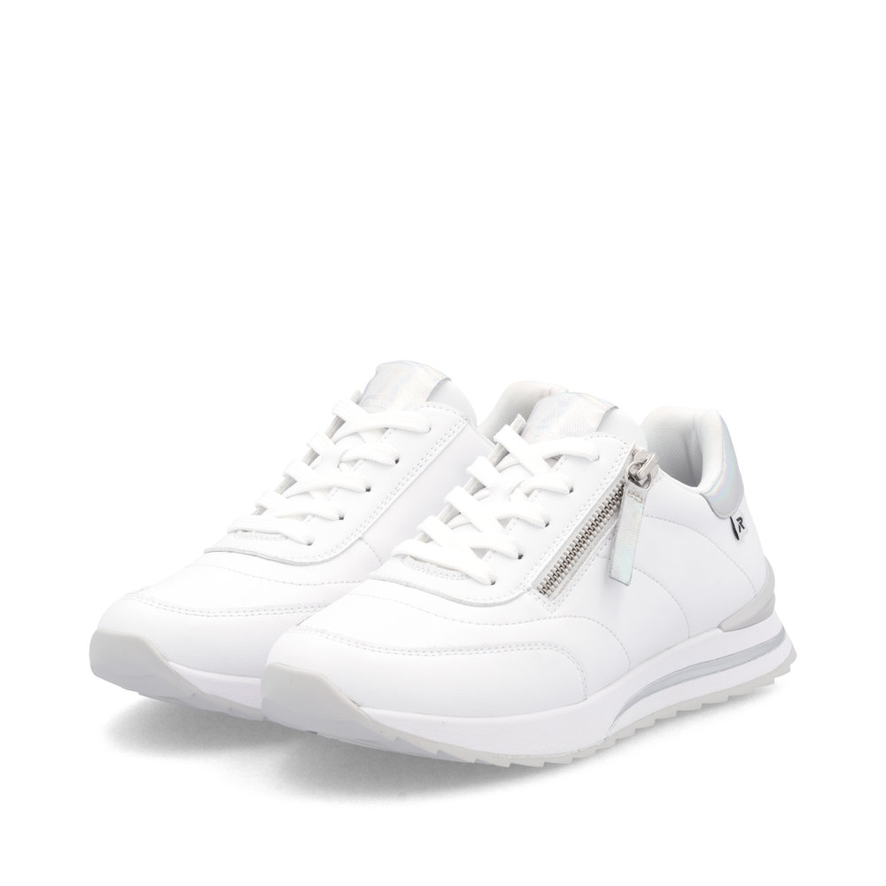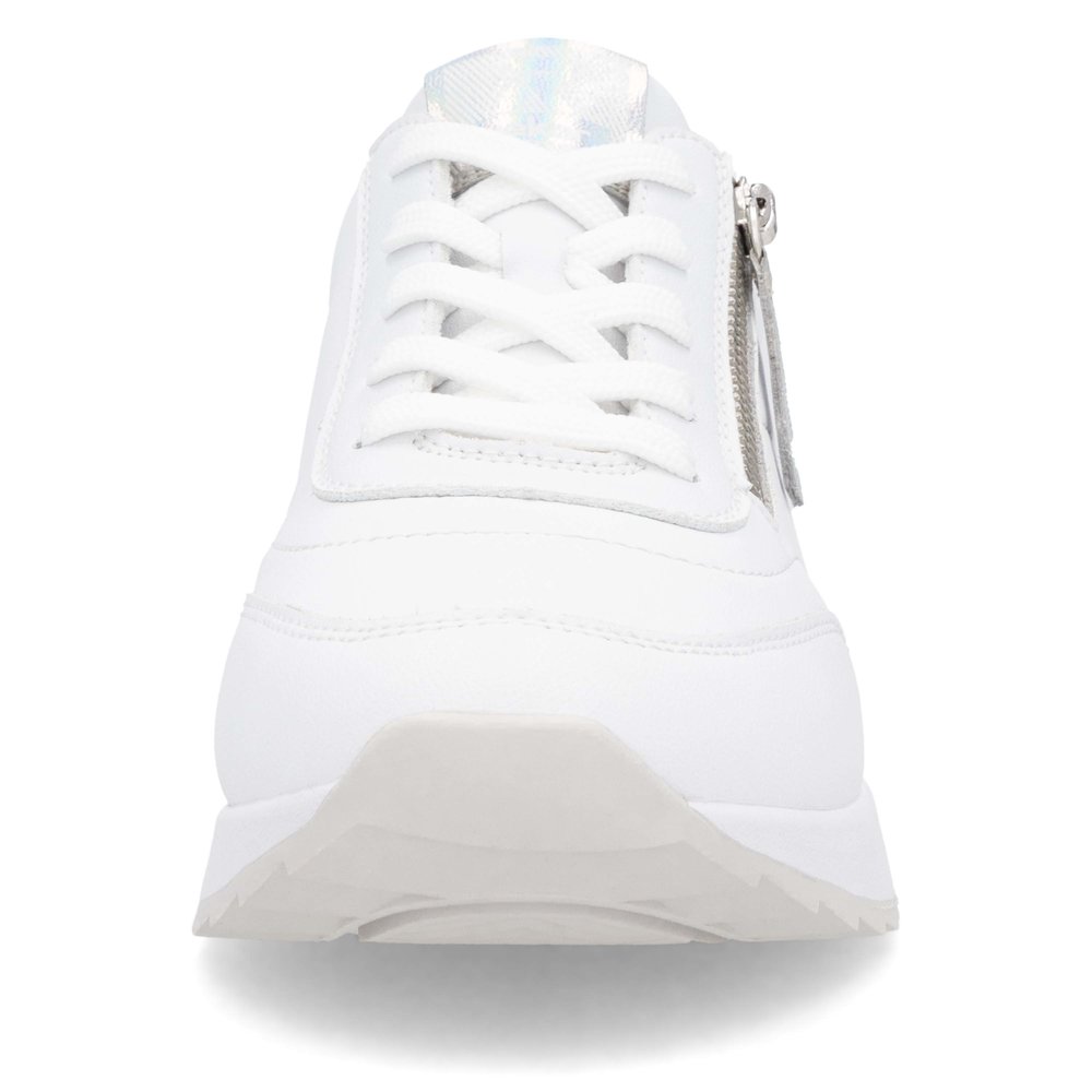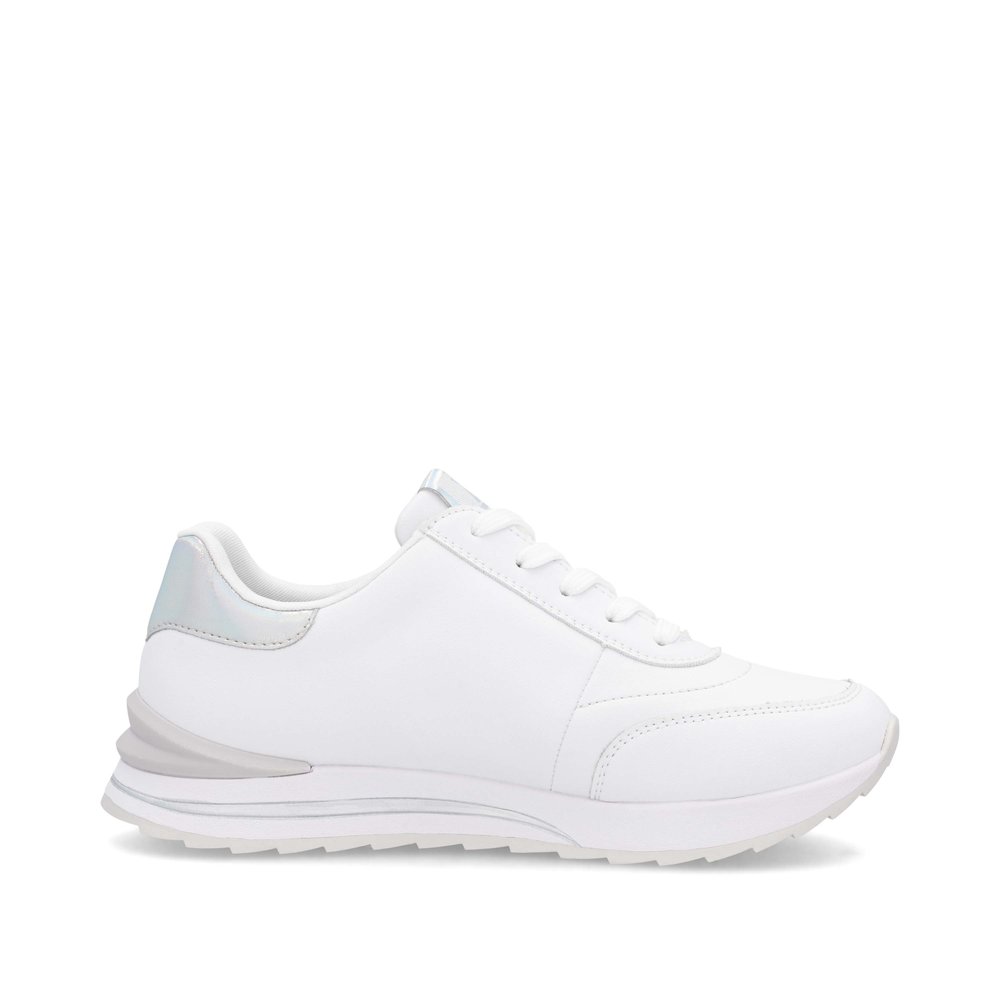 Genießen Sie sportlichen Stil mit den RIEKER Sneakern, die Sie auf den ersten Blick lieben werden. Das weiße Obermaterial ist mit dezenten glänzenden Details veredelt und verleiht dem Schuh eine moderne Optik. Dank der Schnürung lässt sich der Schuh perfekt an Ihre Fußform anpassen, während die herausnehmbare Einlegesohle optimalen Halt und ganztägigen Komfort bietet. Die erhöhte Sohle sorgt für Stabilität und ein angenehmes Laufgefühl, sodass diese Sneaker die ideale Wahl für den Alltag sind. Die Kombination aus Stil und Funktionalität mit der RIEKER Sport-Technologie macht jeden Schritt zu einem besonderen Erlebnis.