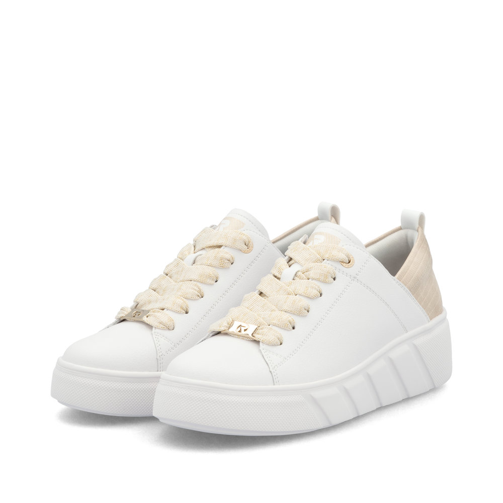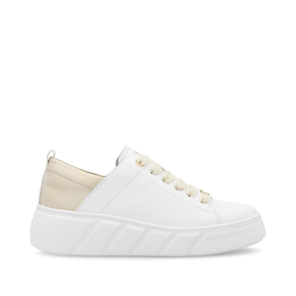 Genießen Sie den sportlichen Stil mit den Schuhen von RIEKER, die Schlichtheit mit modernem Design verbinden. Diese weißen Sneaker sind mit einem stilvollen Detail an der Ferse versehen, das ihnen einen einzigartigen Look und einen trendigen Charakter verleiht. Die robuste weiße Sohle ergänzt nicht nur das dynamische Design, sondern dämpft auch effektiv Stöße und sorgt für maximalen Komfort bei jedem Schritt. Die markante Schnürung bietet einen sicheren Halt, während die weiche, herausnehmbare Innensohle zusätzlichen Komfort bietet. Dieses Modell ist die perfekte Wahl für den Alltag und für alle, die eine stilvolle und gleichzeitig bequeme Schuhoption suchen. Die perfekte Kombination aus modernem Design und funktionalen Technologien macht diese RIEKER Sport Schuhe zu einem idealen Begleiter.