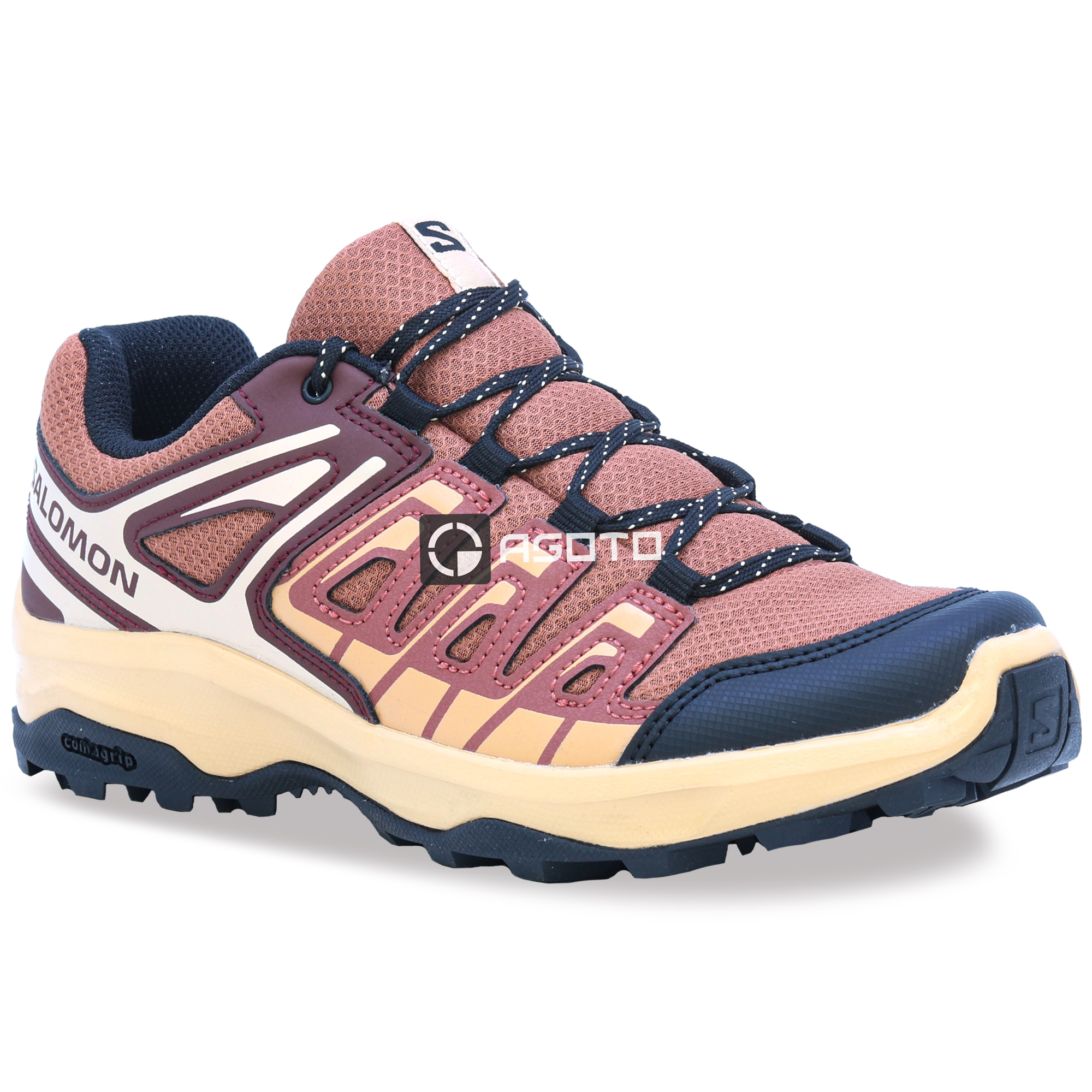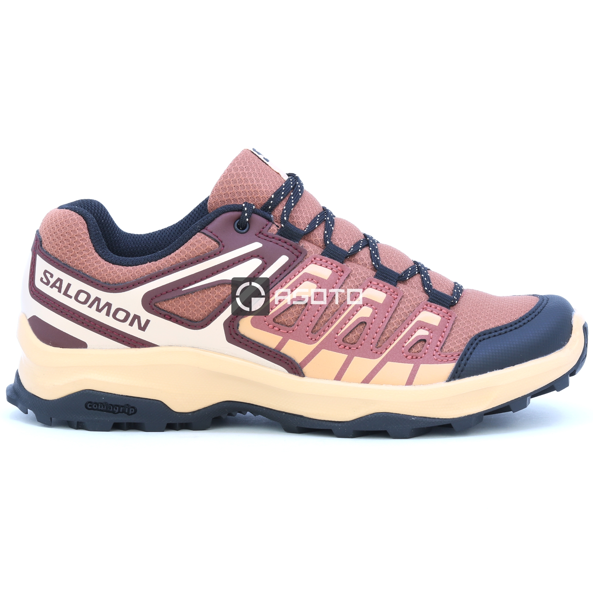 Die burgunderfarbenen Outdoor-Schuhe SALOMON Exterga für Damen sind für Abenteurer konzipiert, die Zuverlässigkeit und Leistung unter allen Bedingungen verlangen. Die Contagrip®-Außensohle bietet hervorragenden Halt und Stabilität auf unterschiedlichsten Oberflächen, von felsigen Pfaden bis hin zu schlammigen Waldwegen, sodass Sie sich auf jedem Terrain sicher bewegen können. Ergonomisches Design, hochwertige Materialien und robuste Konstruktion sorgen für lange Lebensdauer und Komfort. Das stilvolle burgunderfarbene Design verbindet einen modernen Look mit hoher Funktionalität und macht diese Schuhe zu einer idealen Wahl zum Wandern, Trekking oder für den Alltag in der Natur.