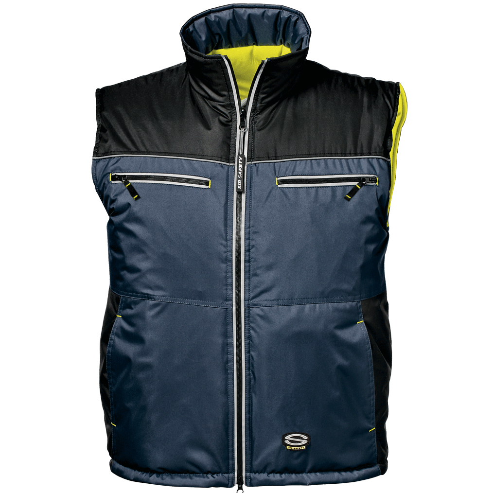 Wendeweste aus Pongé-Außenmaterial mit 140 g/m2 Polyesterfutter und 200 g/m2 Wattierung. Ausgestattet mit einem Zwei-Wege-Reißverschluss, Brusttaschen mit Reißverschluss und reflektierenden Paspeln auf der Brust. Auf der Rückseite befinden sich zwei Pattentaschen mit Klettverschluss, ein D-Ring und heißversiegelte Reflexstreifen an Schultern, Brust und Taille. Das Produkt wurde gemäß der Verordnung (EU) 2016/425 und ihren nachfolgenden Änderungen entwickelt und hergestellt. Entspricht EN ISO 20471 Klasse 2: enthält 0,50 m2 fluoreszierendes Material und 0,13 m2 reflektierendes Material.